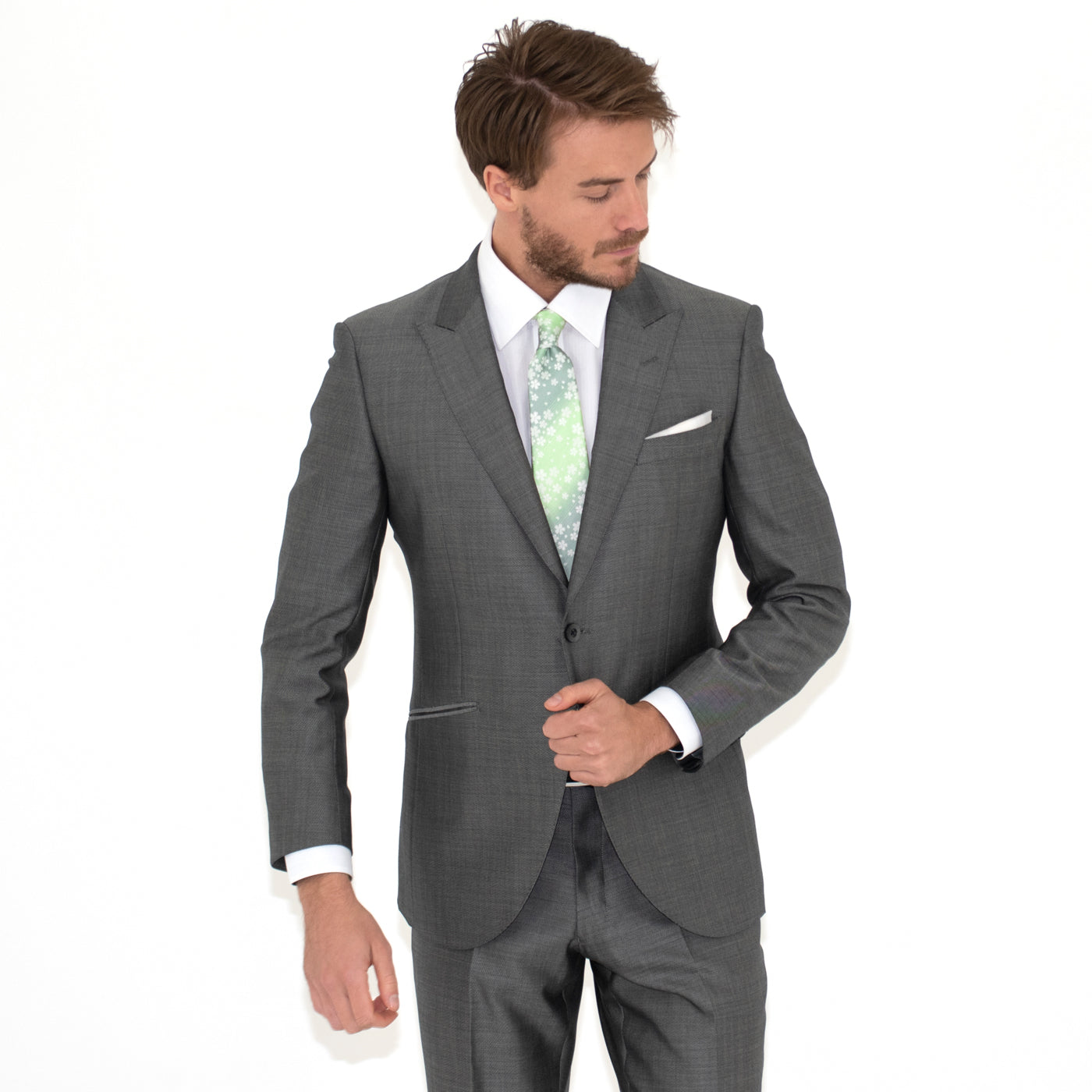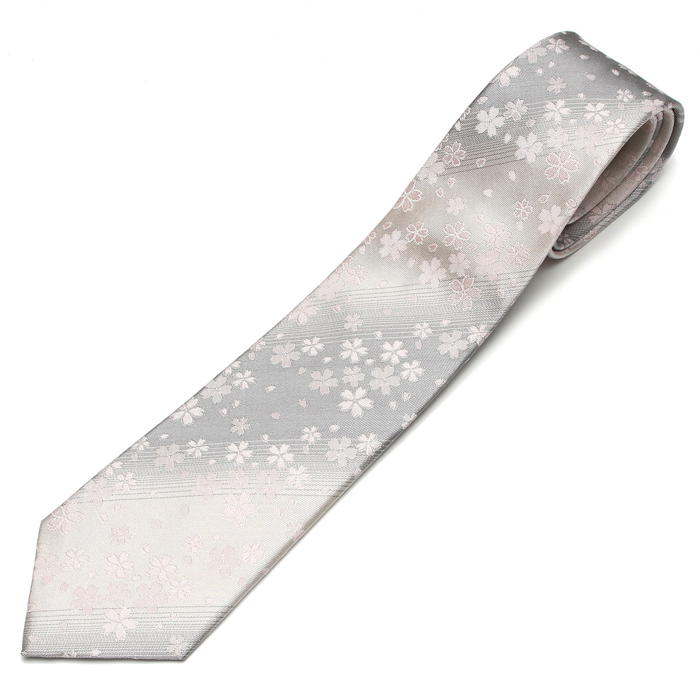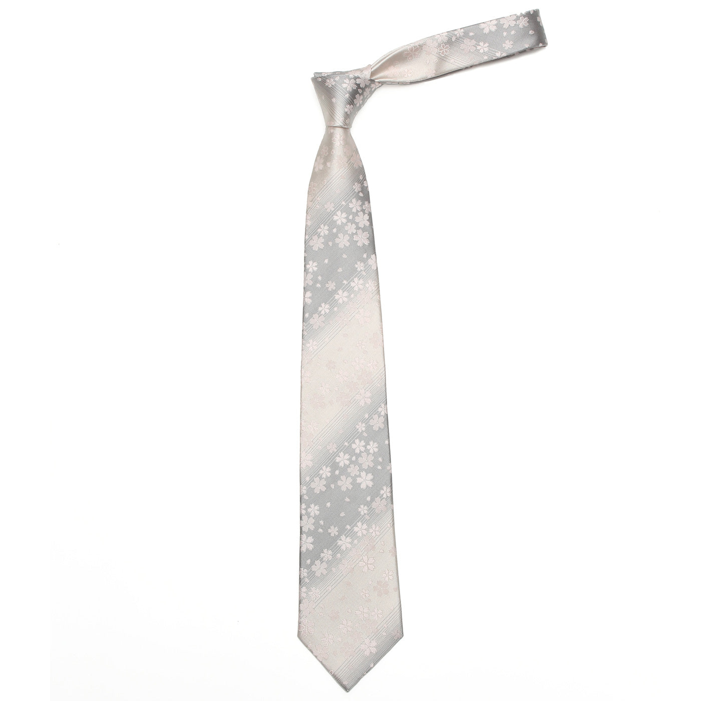 柔らかなグラデーションで描かれた花びらは、風に舞うようにも、水面に揺れるようにも見え、どこか儚くも優しい印象。 季節を問わず身につけられる、上品で洗練されたデザインです。