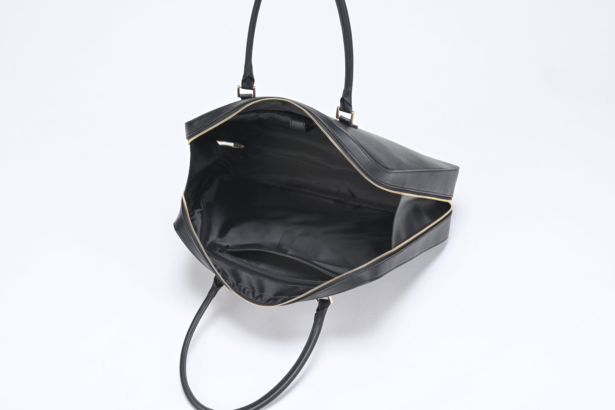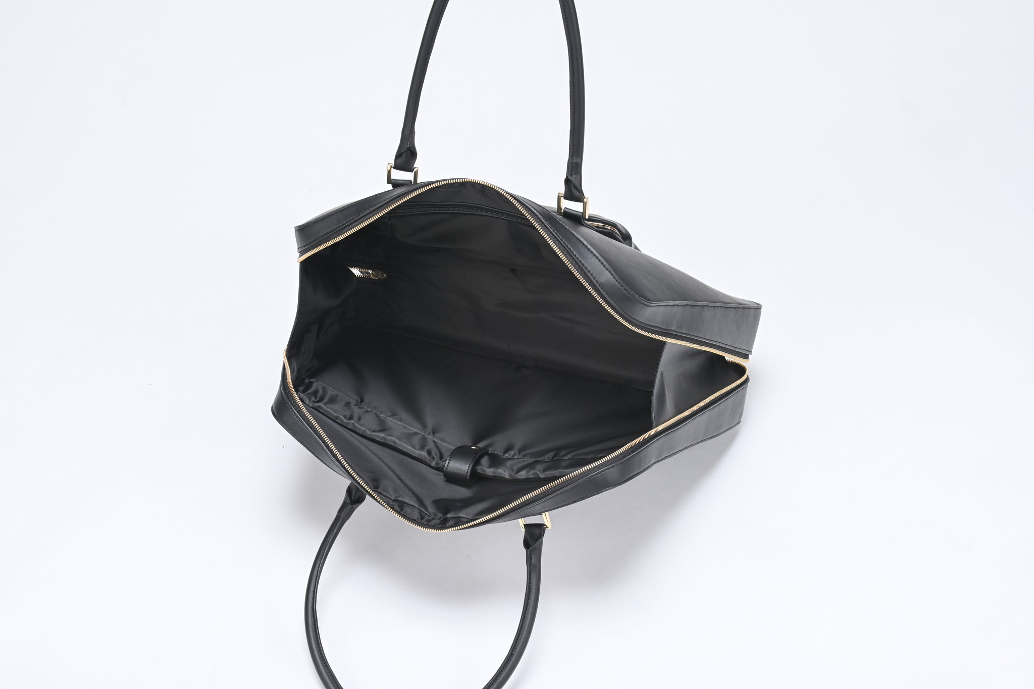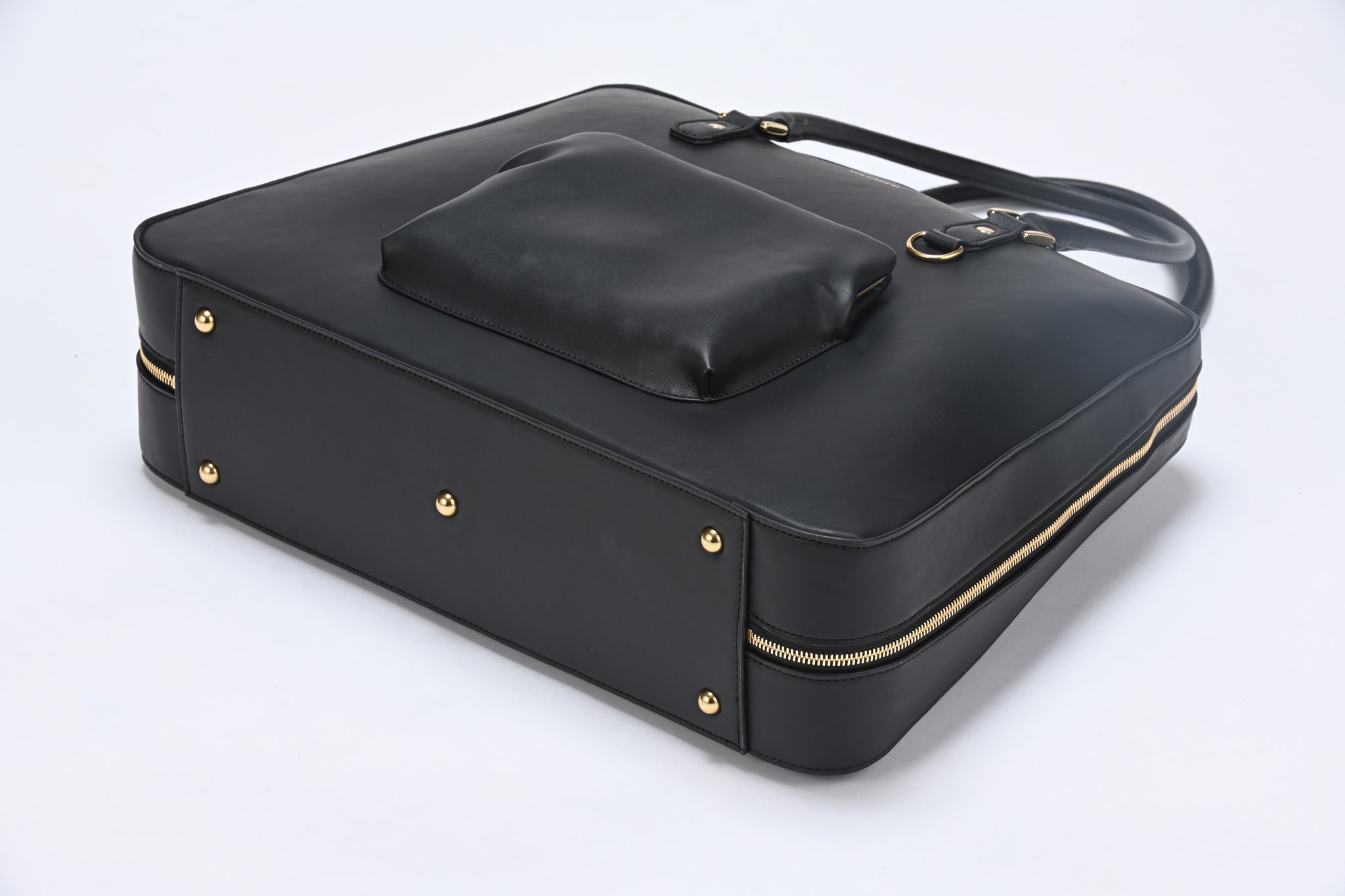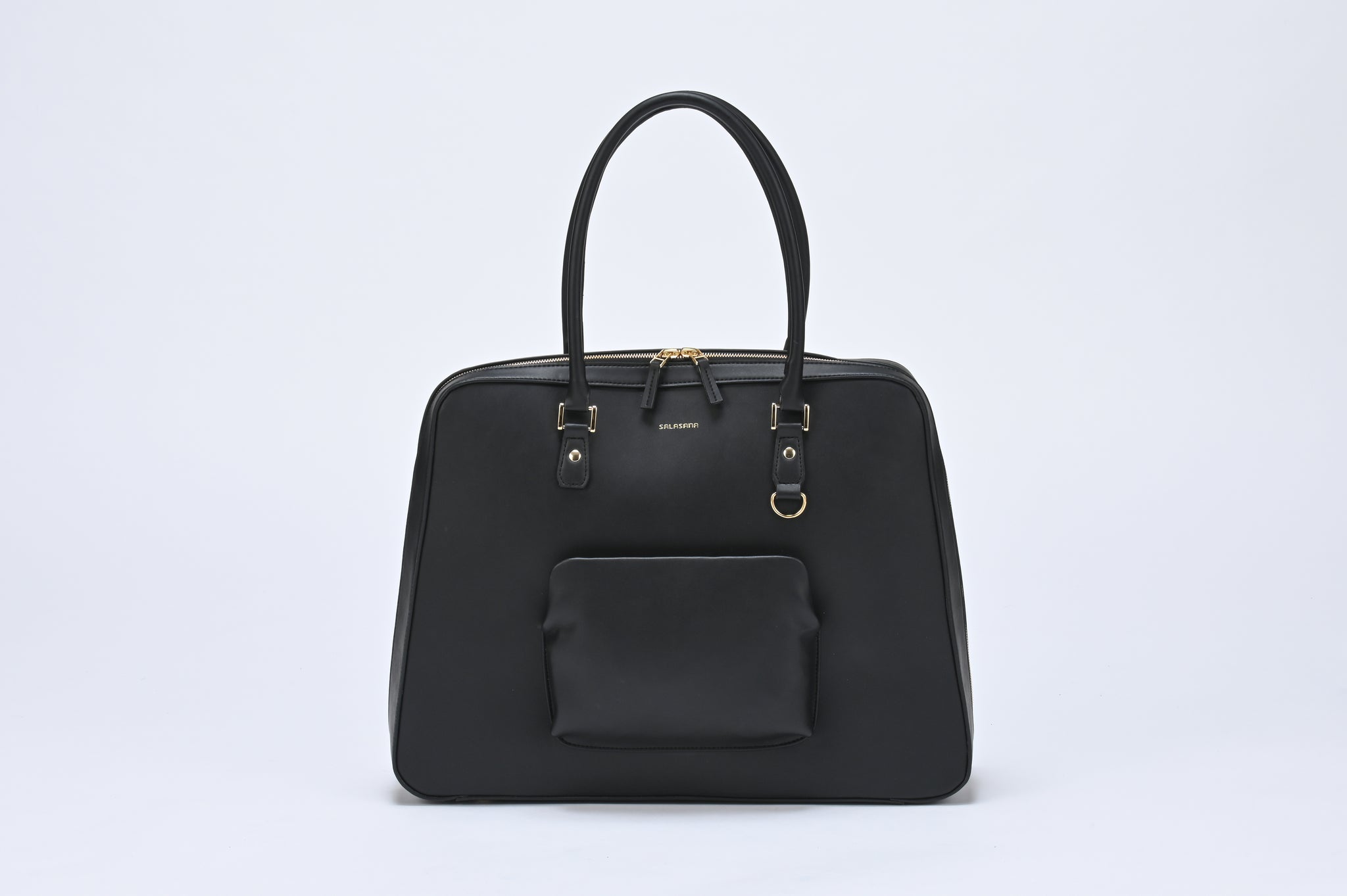 シンメトリックファスナーを使用し、両方向から滑らかに開閉できます。内側に設けられているクッション材の入った保護力のあるPCポケットは、16インチまでのノートPCを収納可能。 反対側にはジップポケットが付いているので、貴重品入れとして最適。前方にはスマートフォンや財布などの必需品を収納できる大きめのがま口(天溝口金)ポケットがあります。ボトム部分は底びょう付きでしっかり自立します。