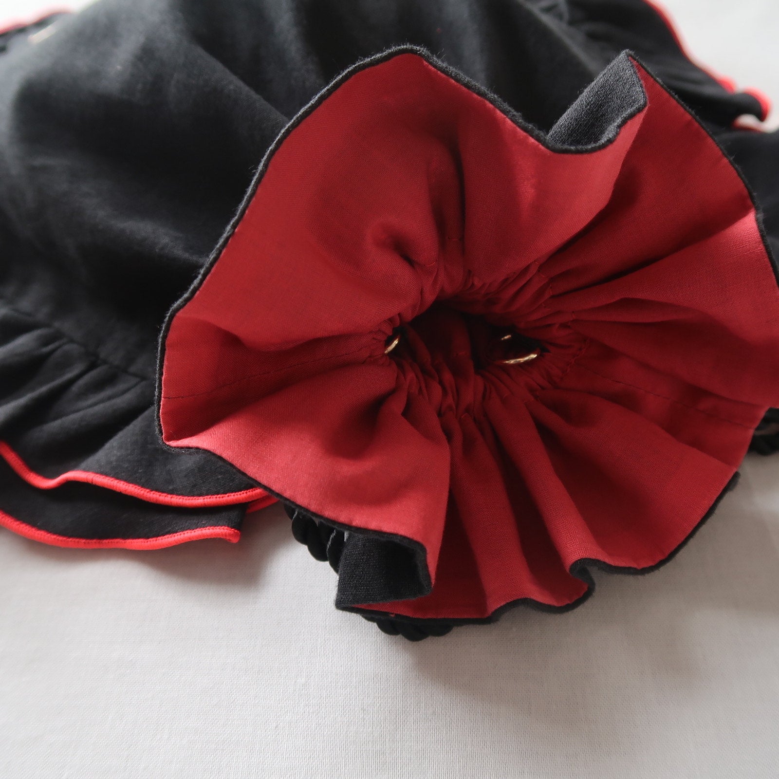 ・フリル部分は伸ばし整えて干してください。・乾燥機はお避け下さい。