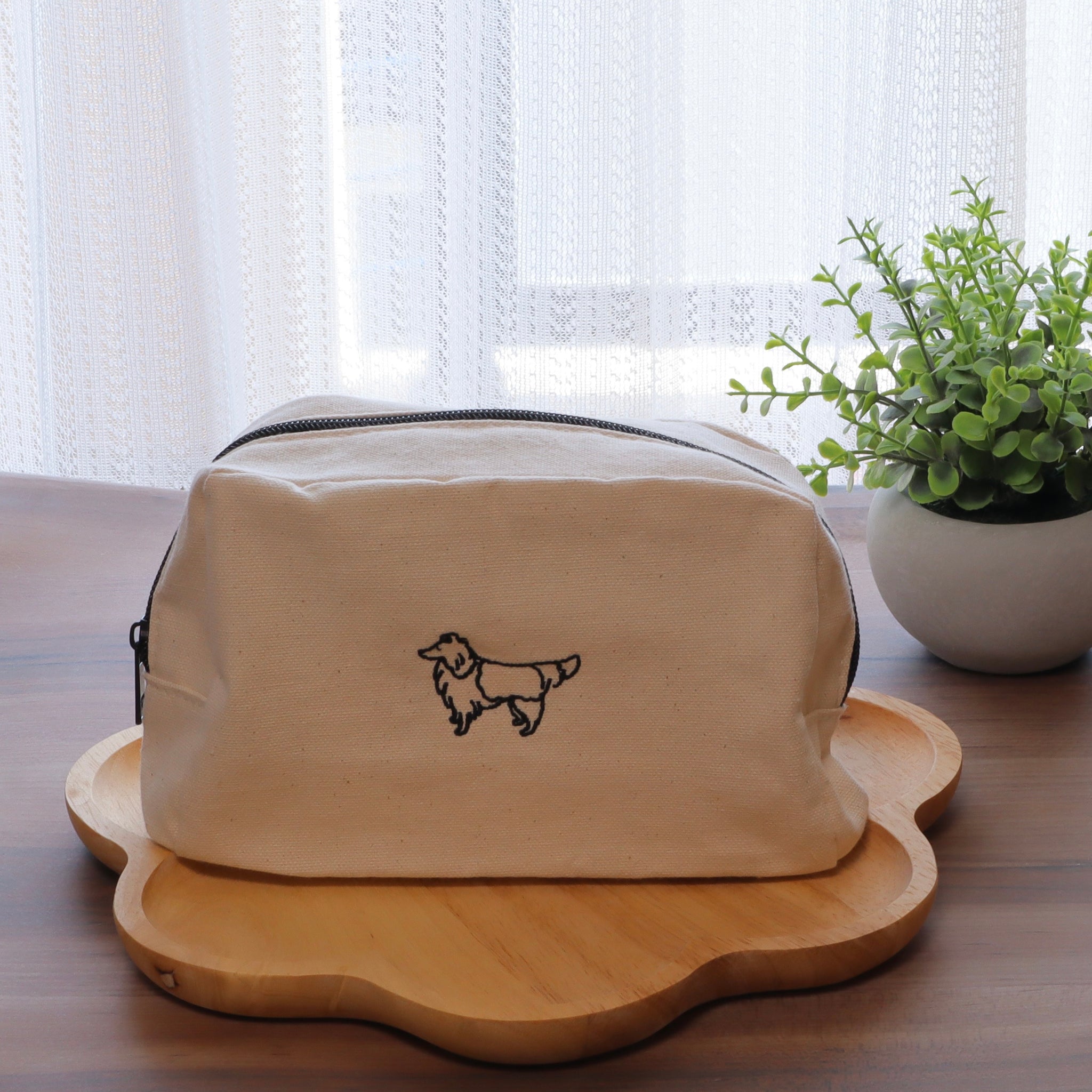 シンプルなシェルティの刺繍が施されたキャンバスポーチです。