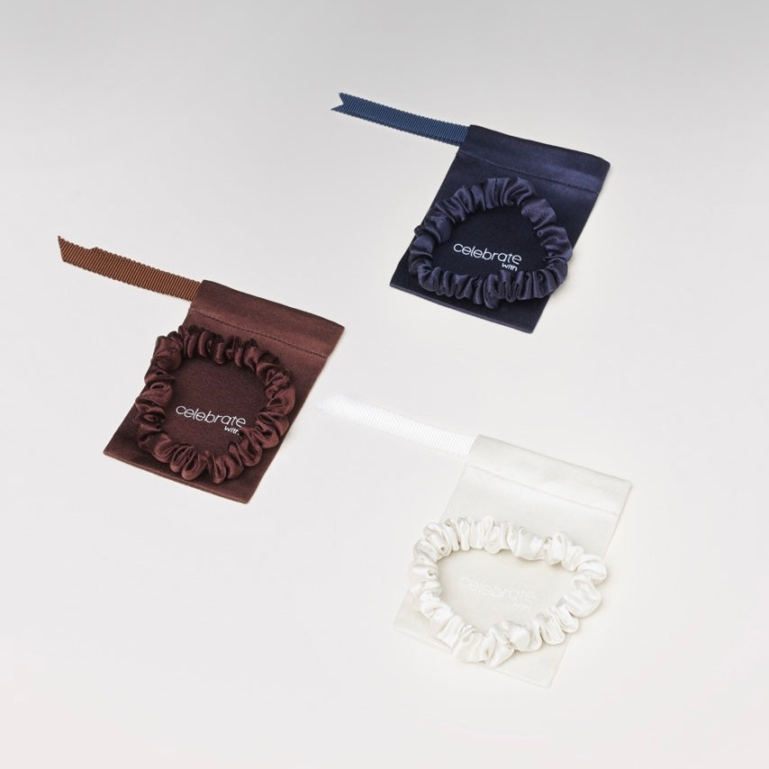 celebrate withのミニシュシュ「Glint」夜明けの光を映したような、透明感あふれるシャンパンホワイトの輝きが、心地よい眠りへと誘います。