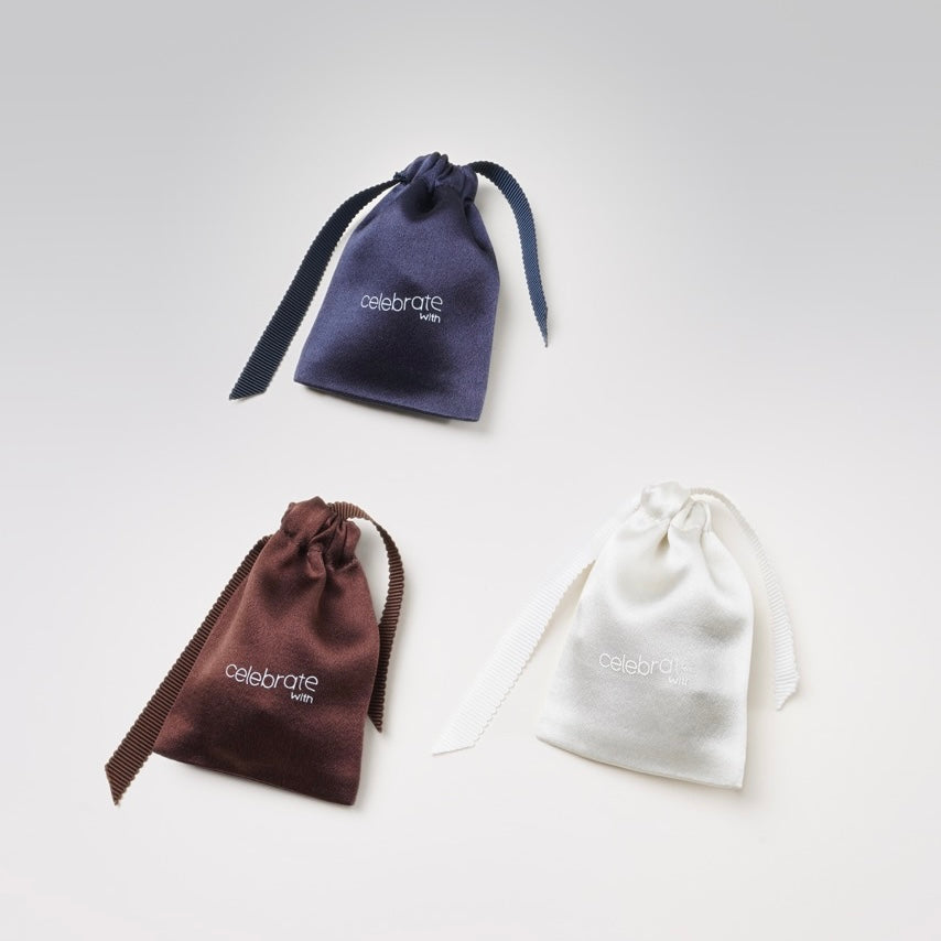同色のシルク巾着が付属します。ヘアアクセサリーやネックレス、ピアスなどの小物を収納でき、持ち運びにも便利です。