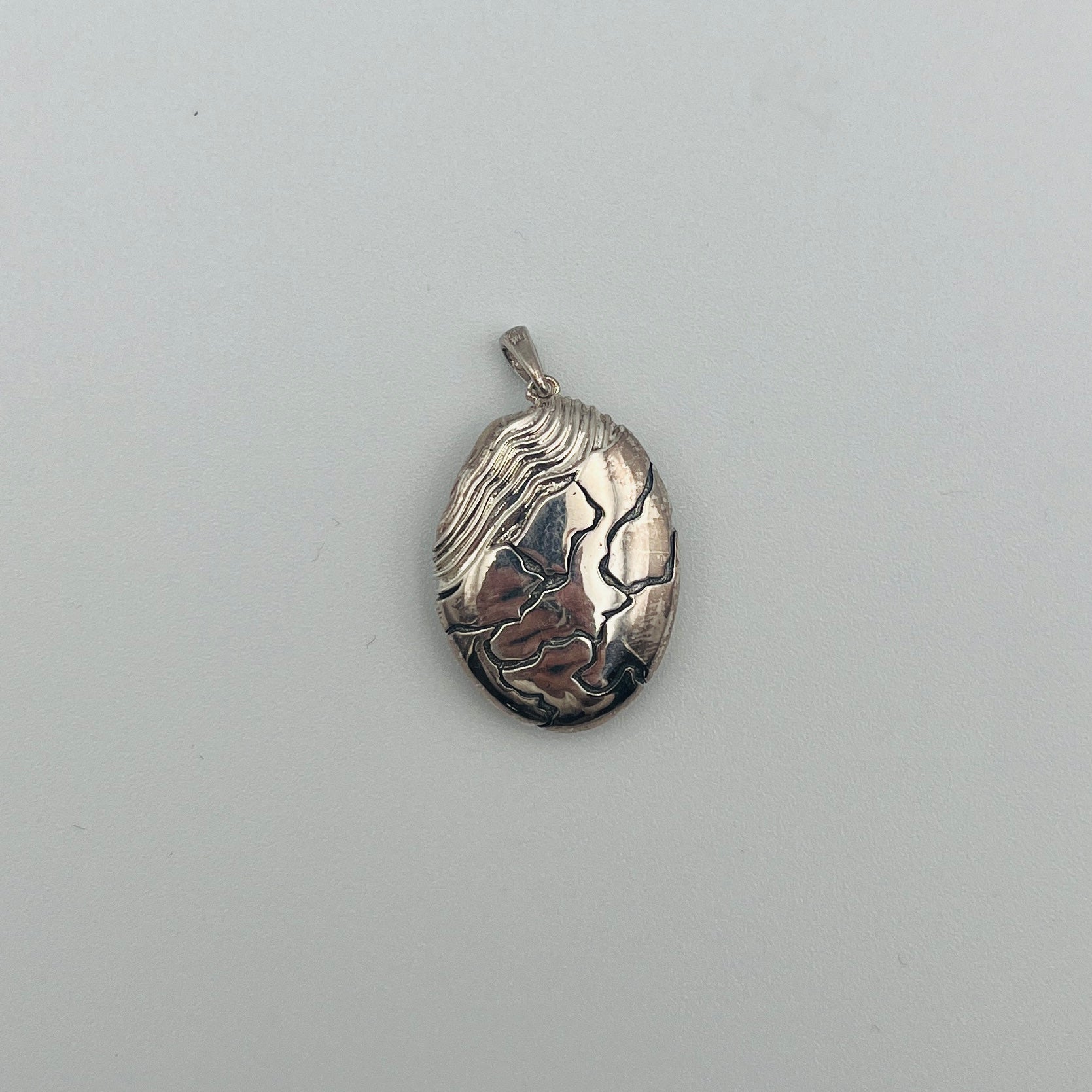ミャオ族に伝わる『創世神話』にインスパイアされた卵型のペンダント。