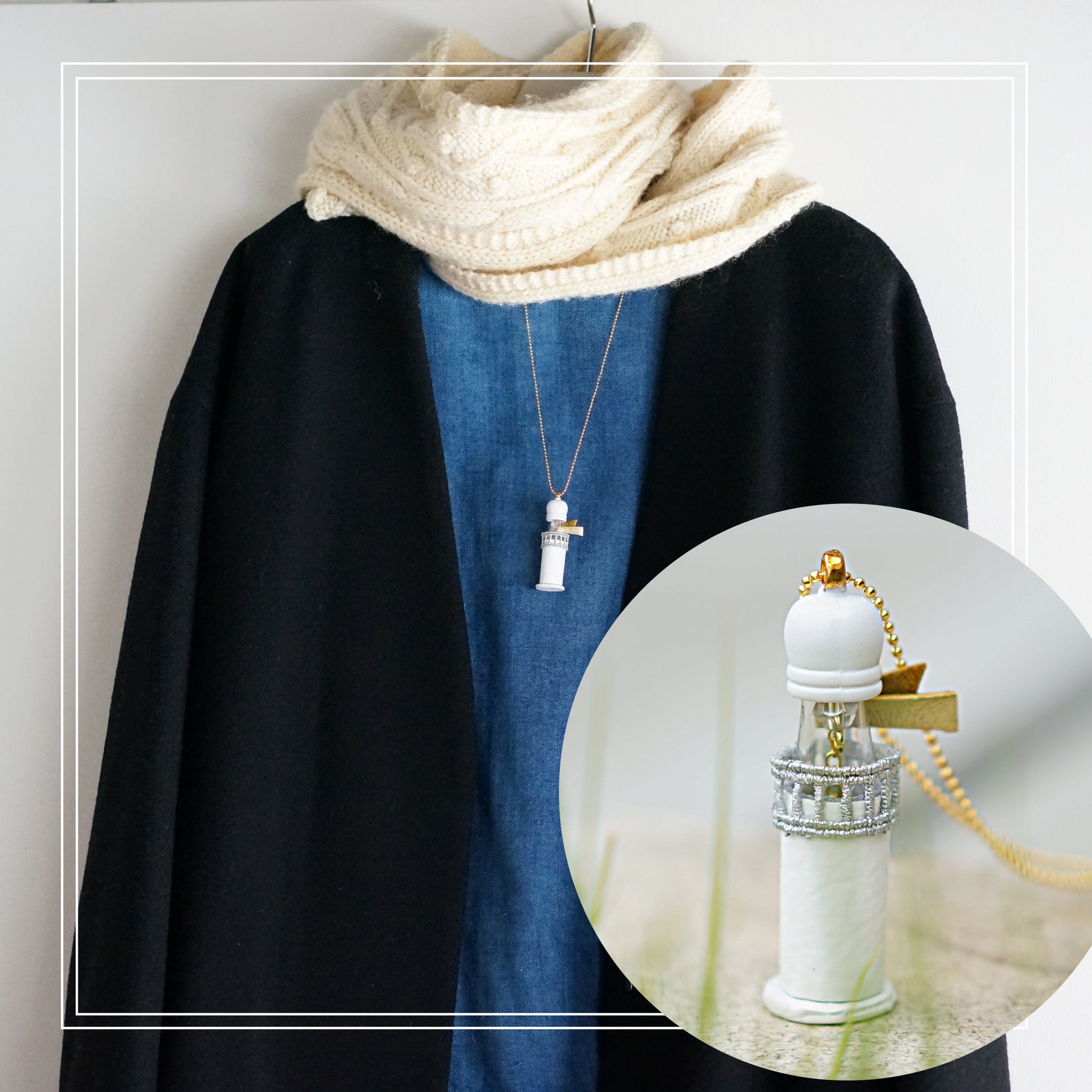 そんな灯台を、爽やかでカジュアルなアクセサリーに仕立てました。 大ぶりなペンダントは、シンプルなTシャツに合わせるだけでもマリンコーデが完成します。夏だけでなく、冬マリンにも。