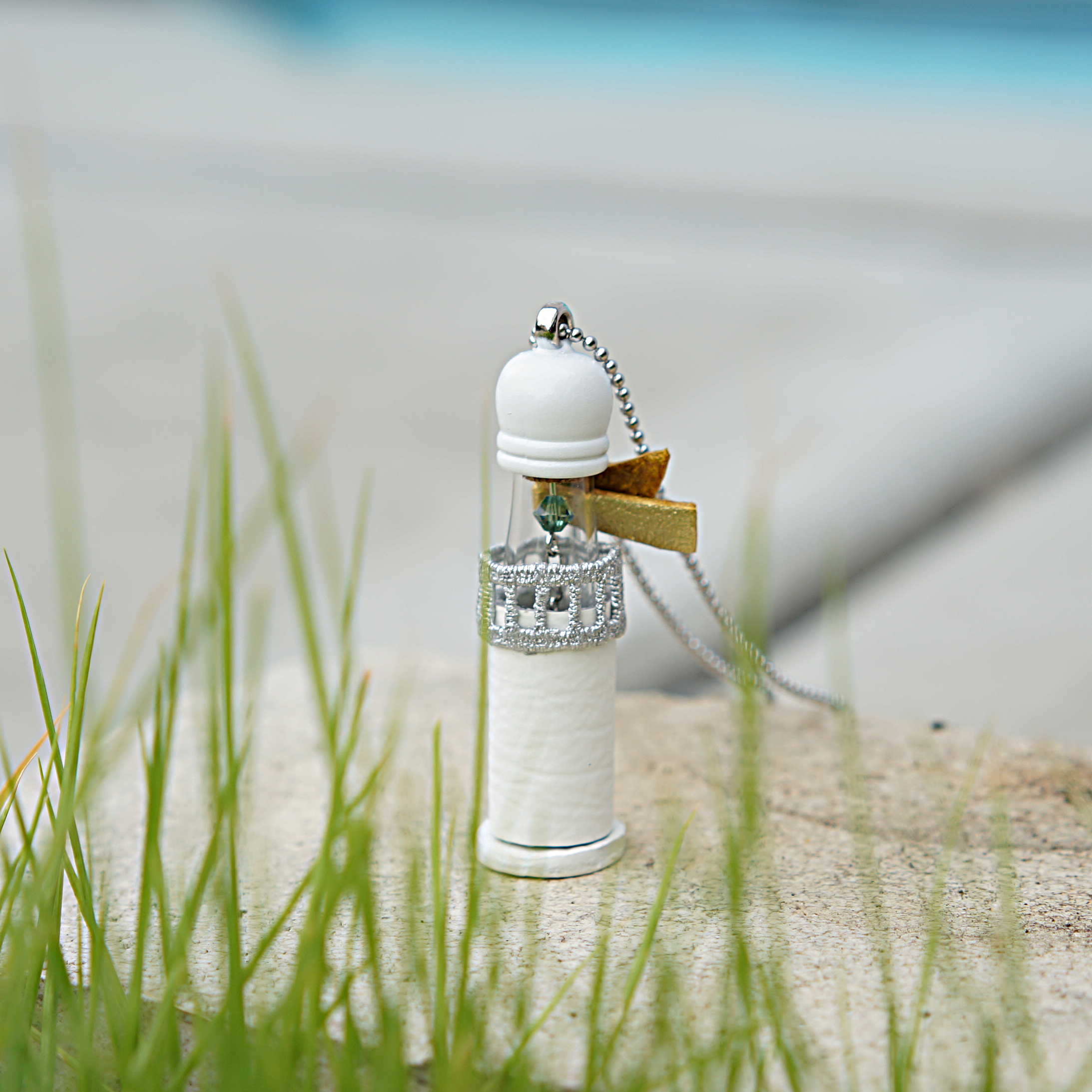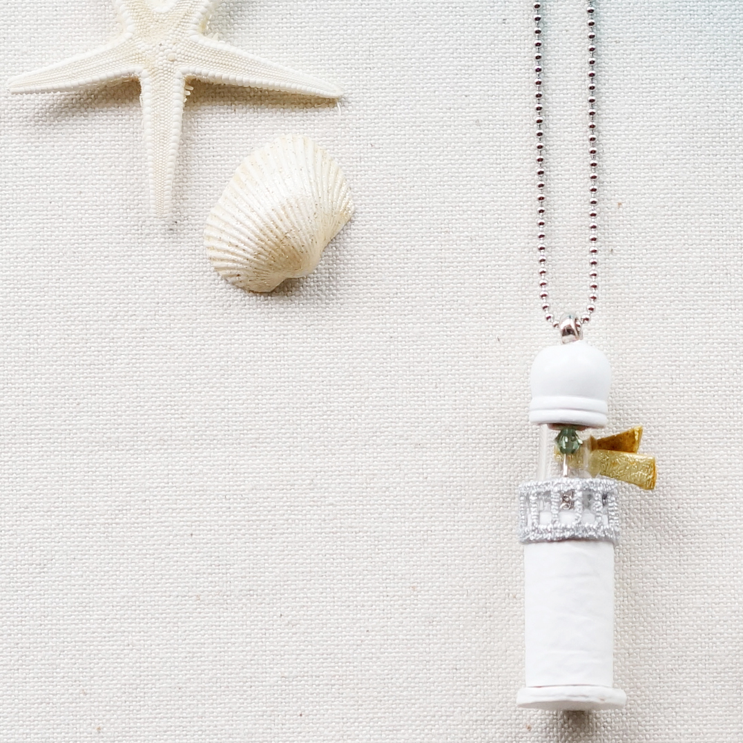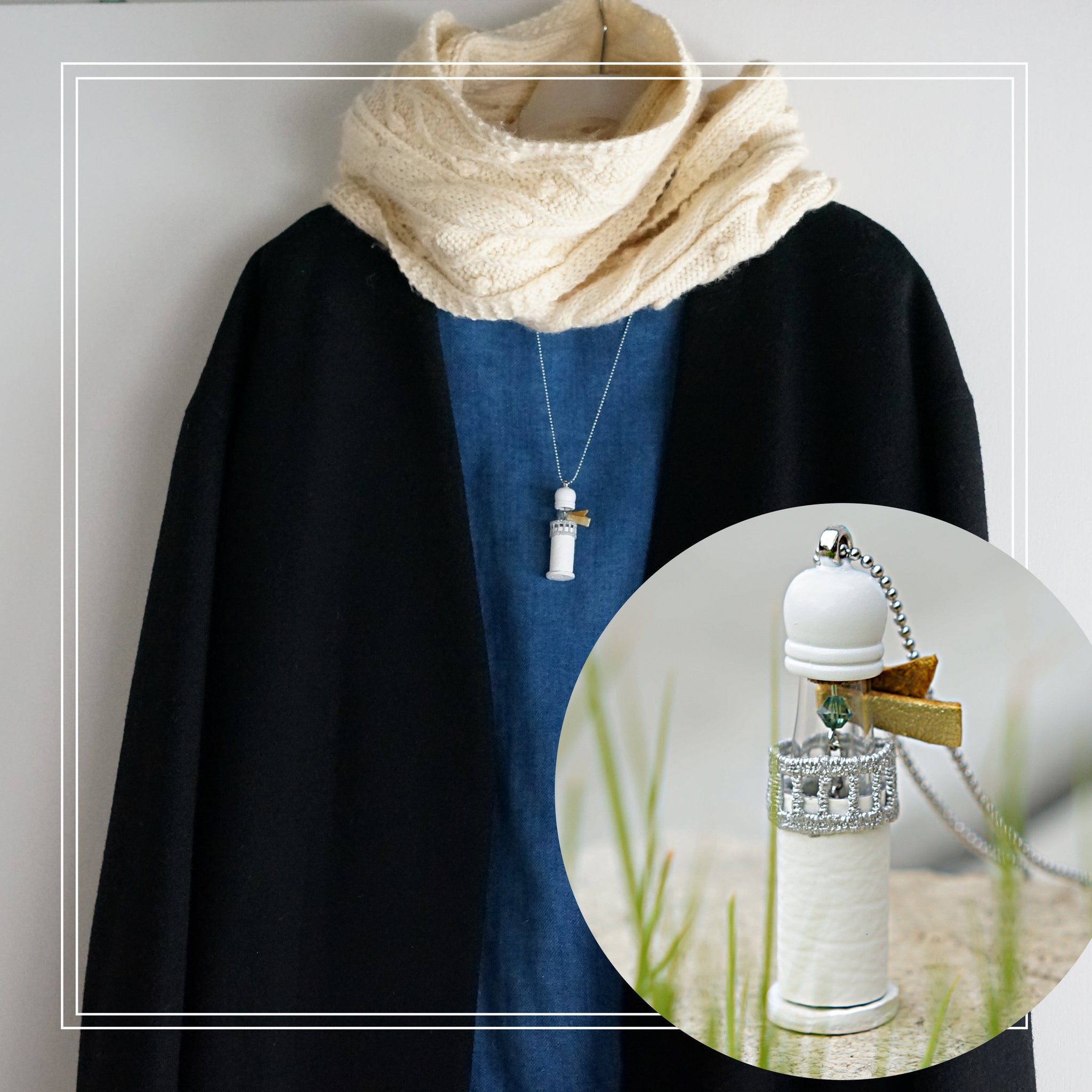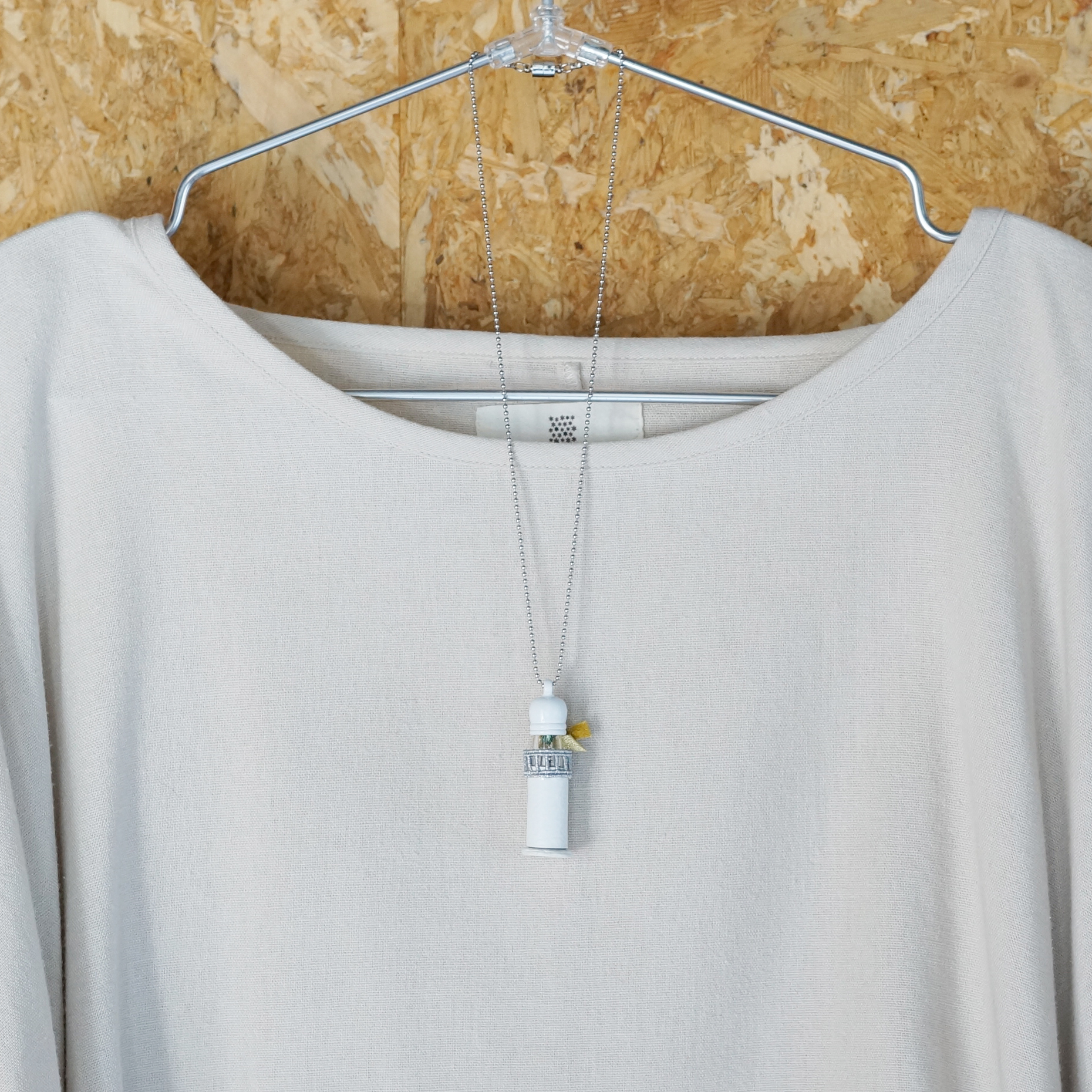 そんな灯台を、爽やかでカジュアルなアクセサリーに仕立てました。 大ぶりなペンダントは、シンプルなTシャツに合わせるだけでもマリンコーデが完成します。夏だけでなく、冬マリンにも。
