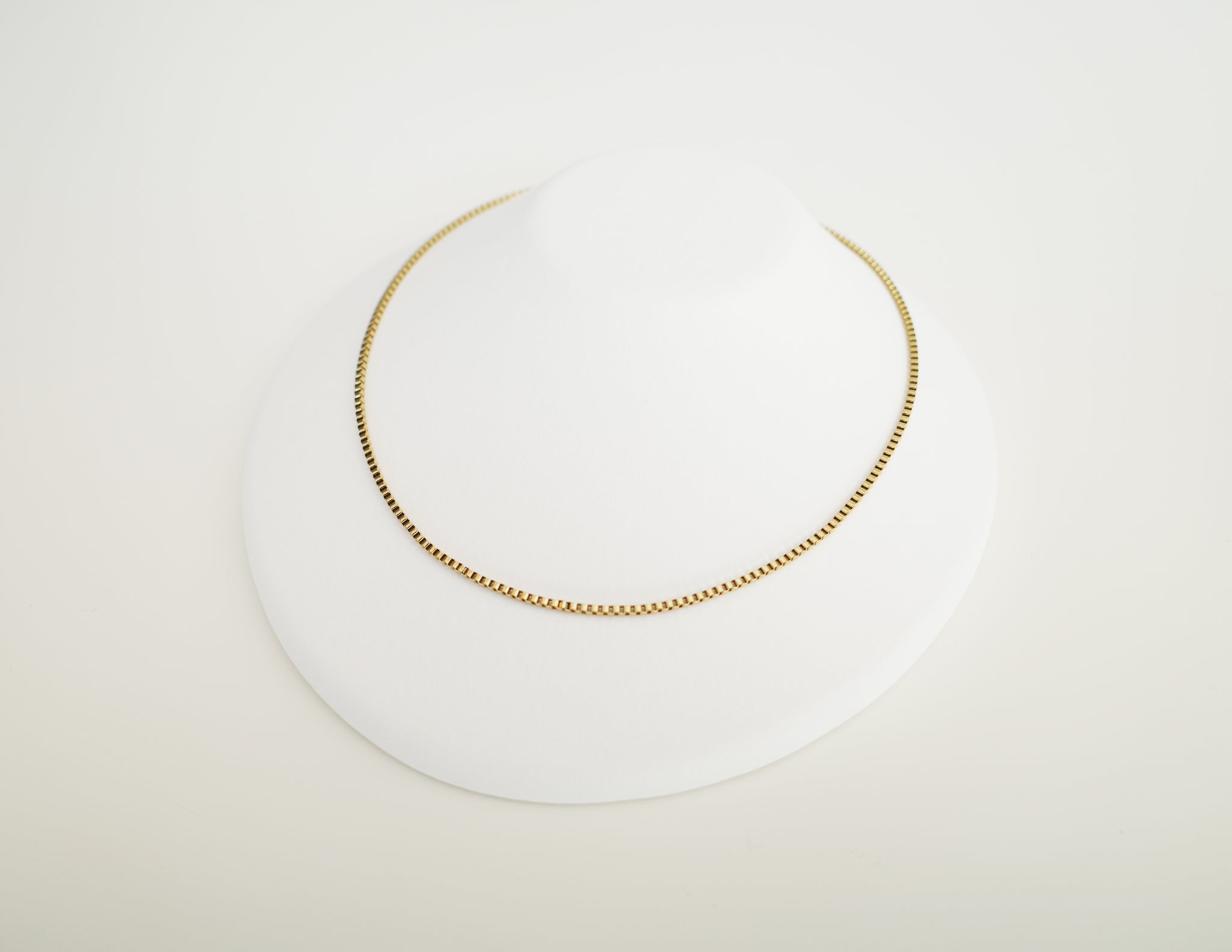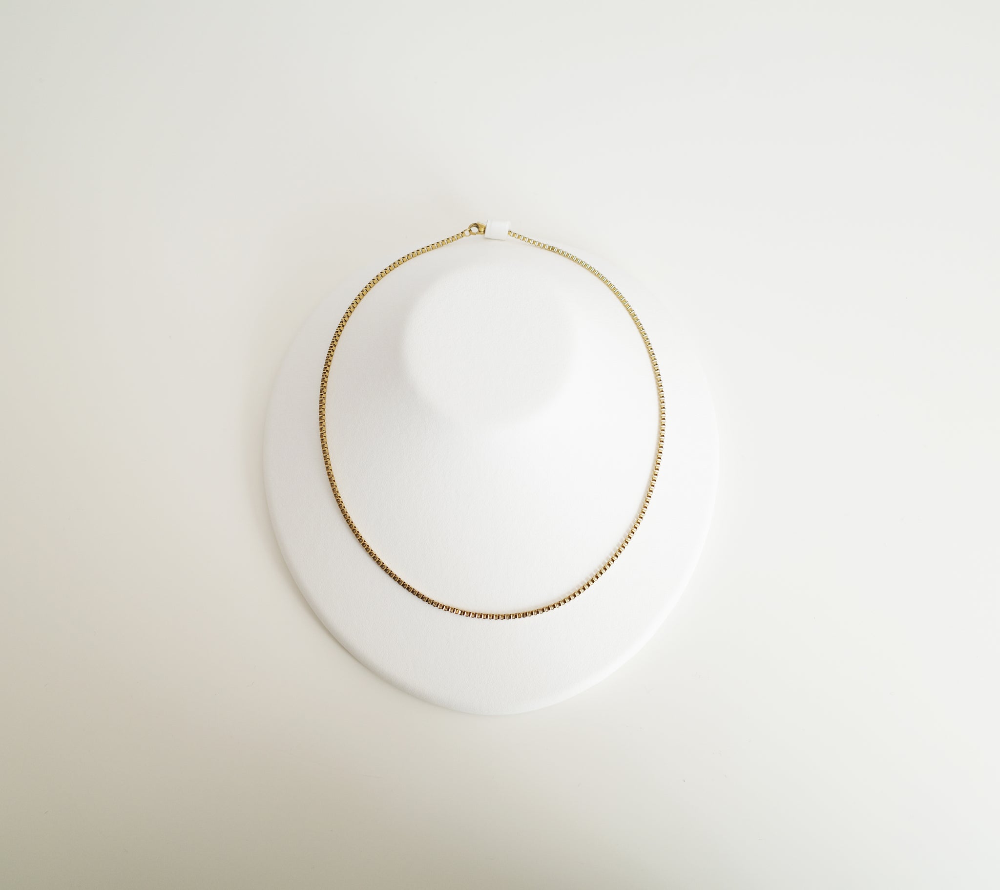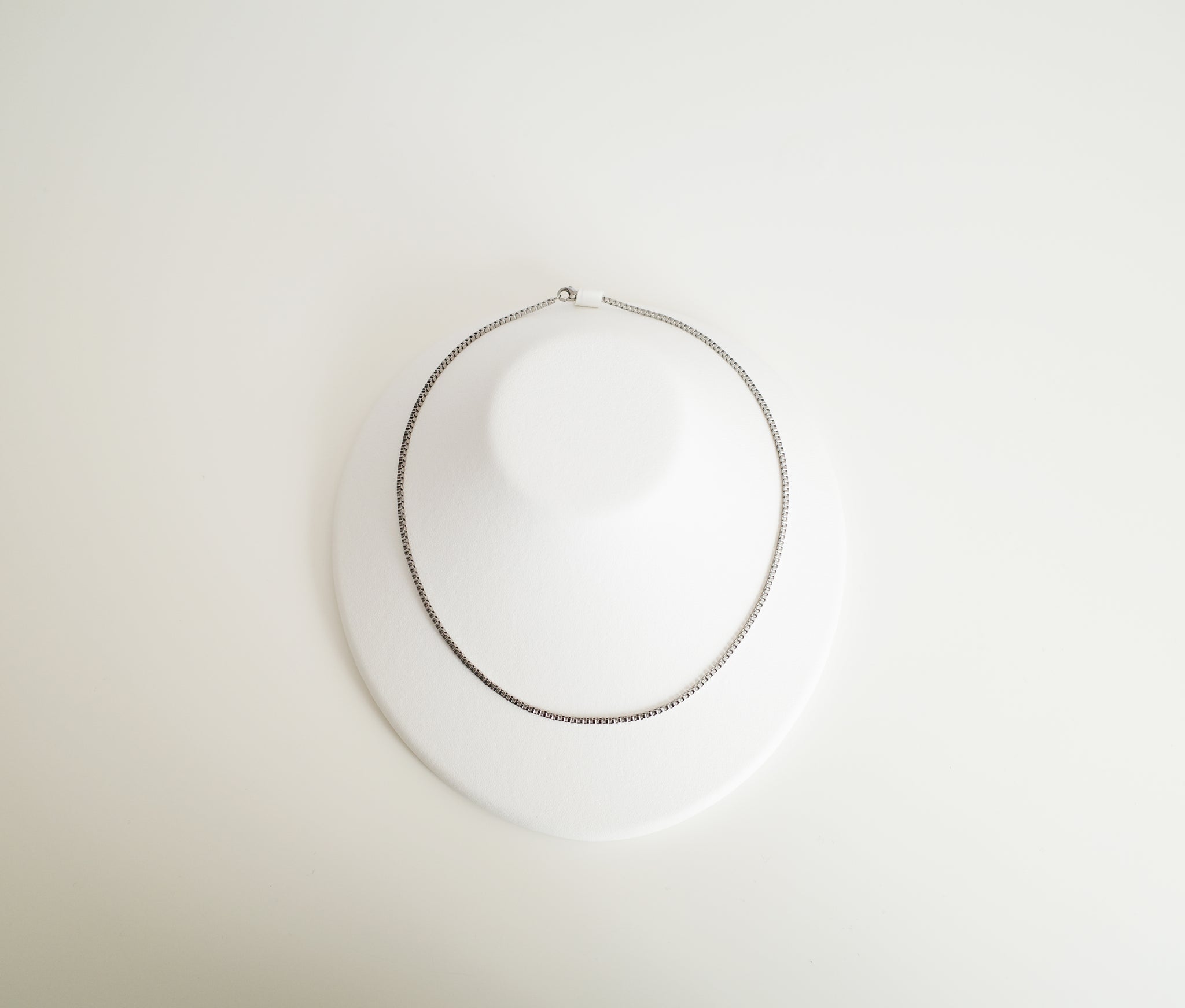 BOX型のパーツが連なっている定番のチェーンネックレス。