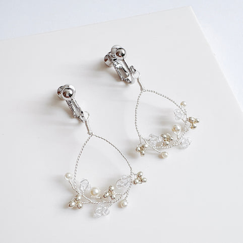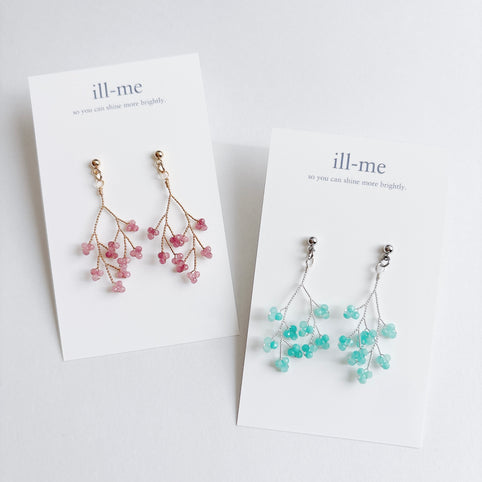 揺れるロングビーズフリンジピアス 夜空の一番星 ライトブルー 【シルバー925 ピアスポスト】 |Ahki Beadwork(アーキービーズワーク)
