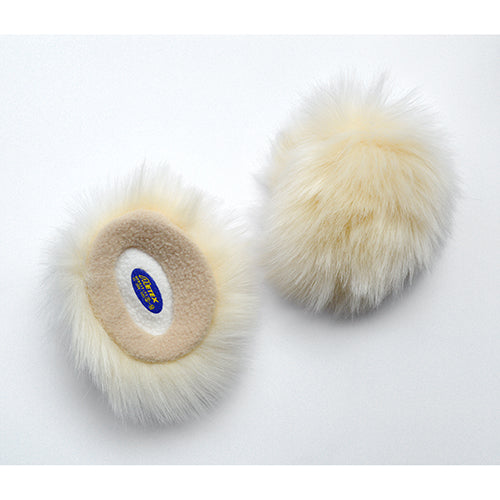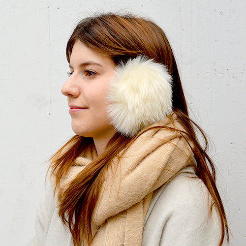 2.内側のつばの広い方を耳の後ろにあて、耳の後ろをつばの中に入れながら前にずらし、耳全体を包む。