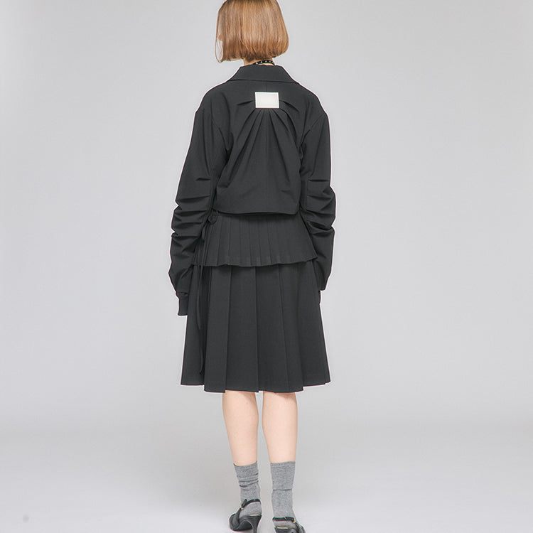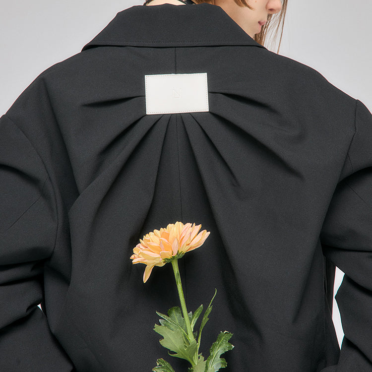 シルエットの美しさが際立つブラックは、モードな着こなしを引き立てる一枚。
