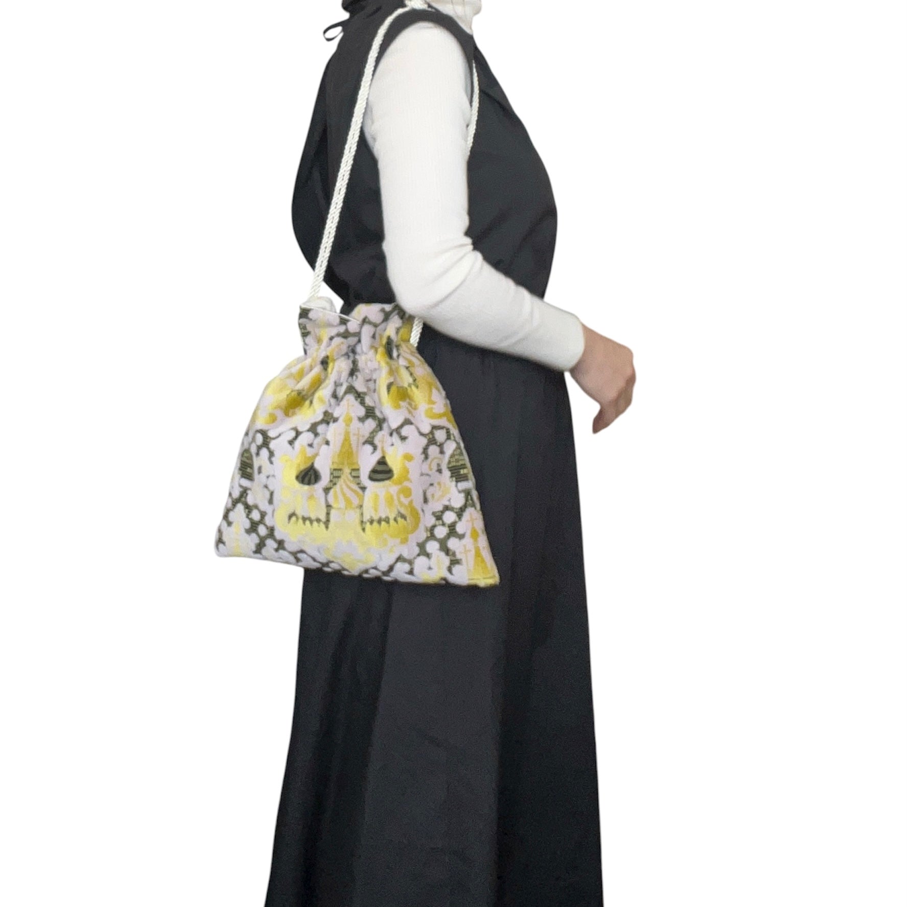紐を一つに結んでいただき、ワンショルダーとして肩掛けはもちろん!!手持ちでもお持ちいただけます