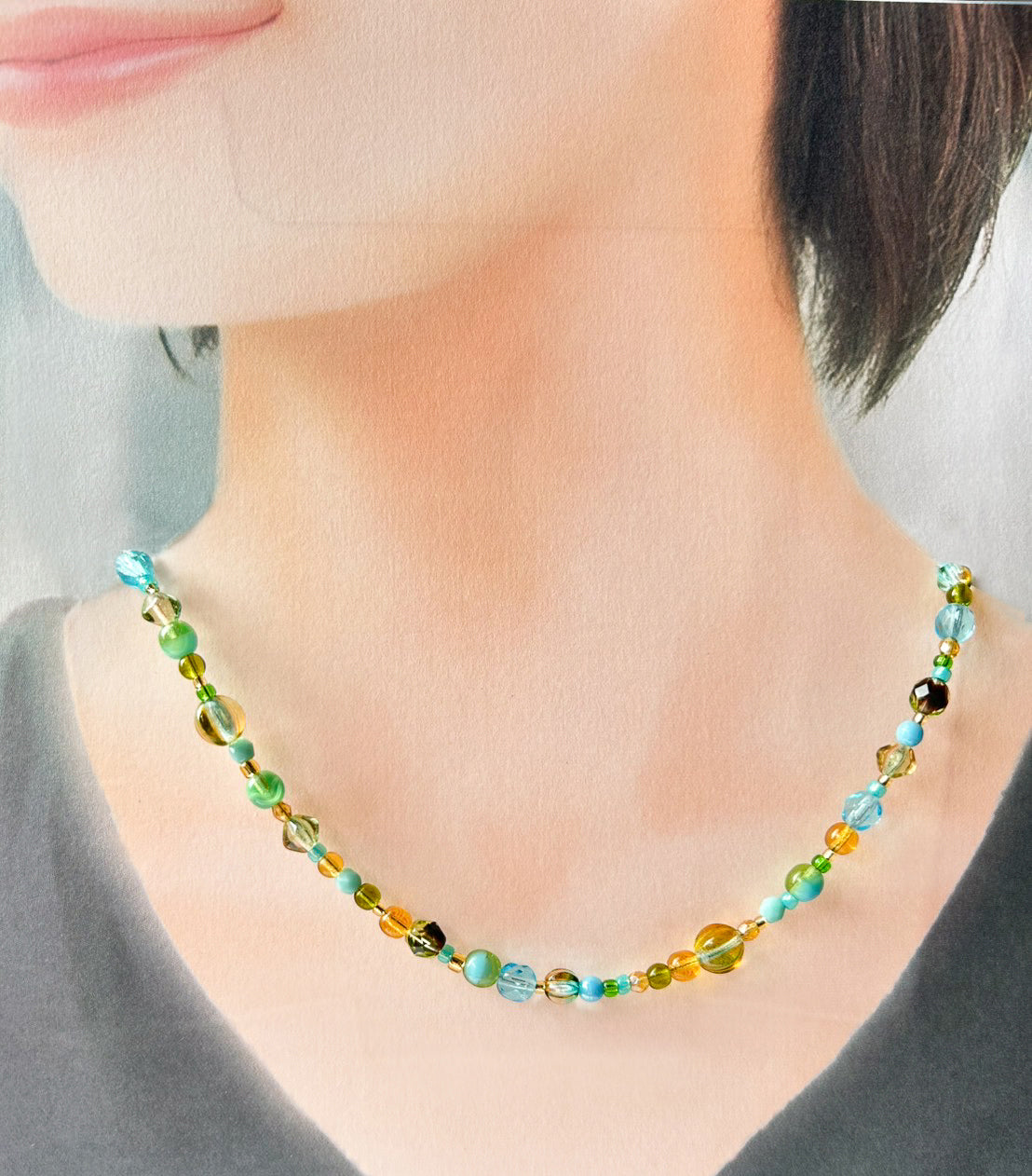 風景をそのままキャンディにしたような色味のアクセサリー。