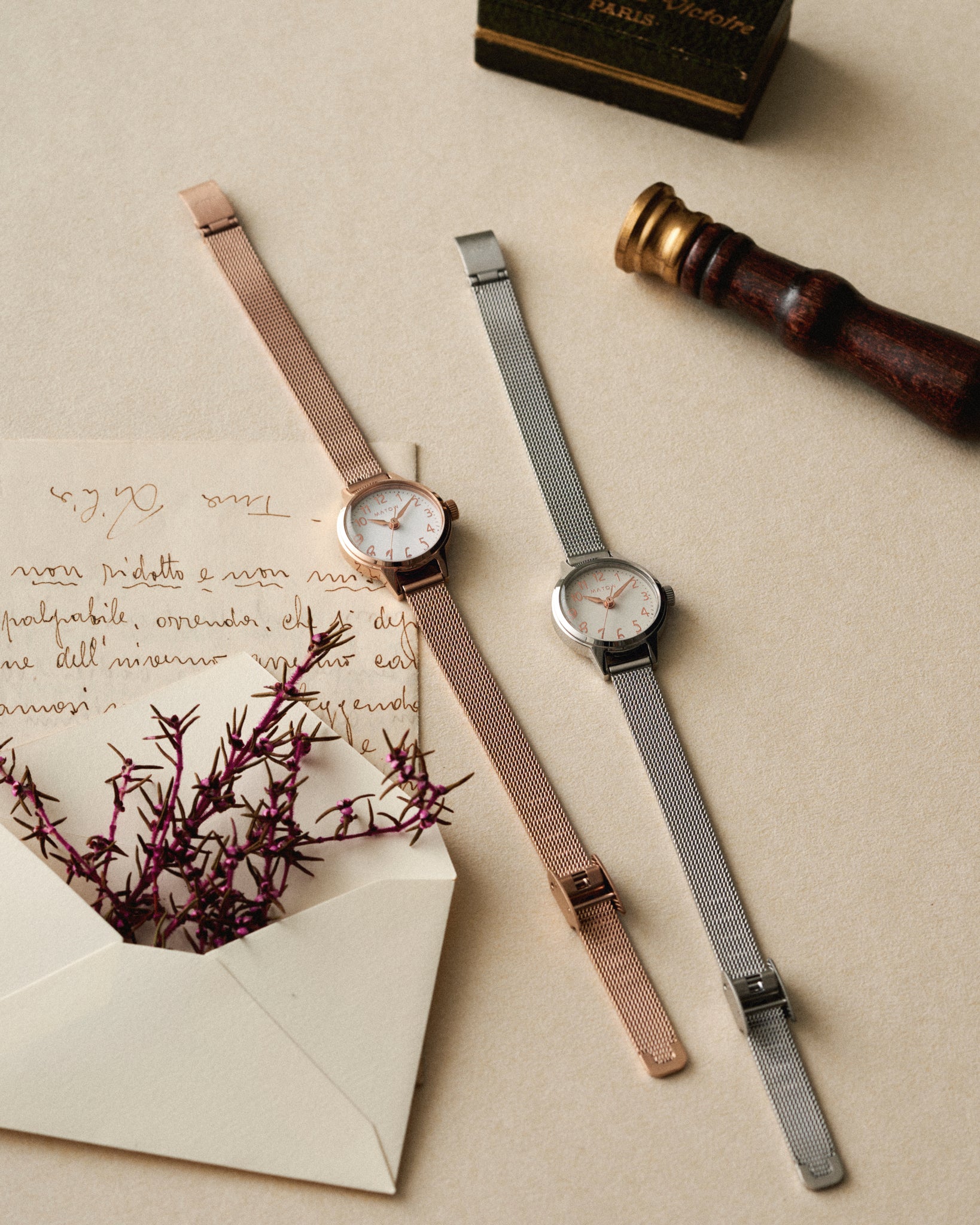 ⽇本⼈⼥性により丁寧につくられた⽇本製の時計たち。