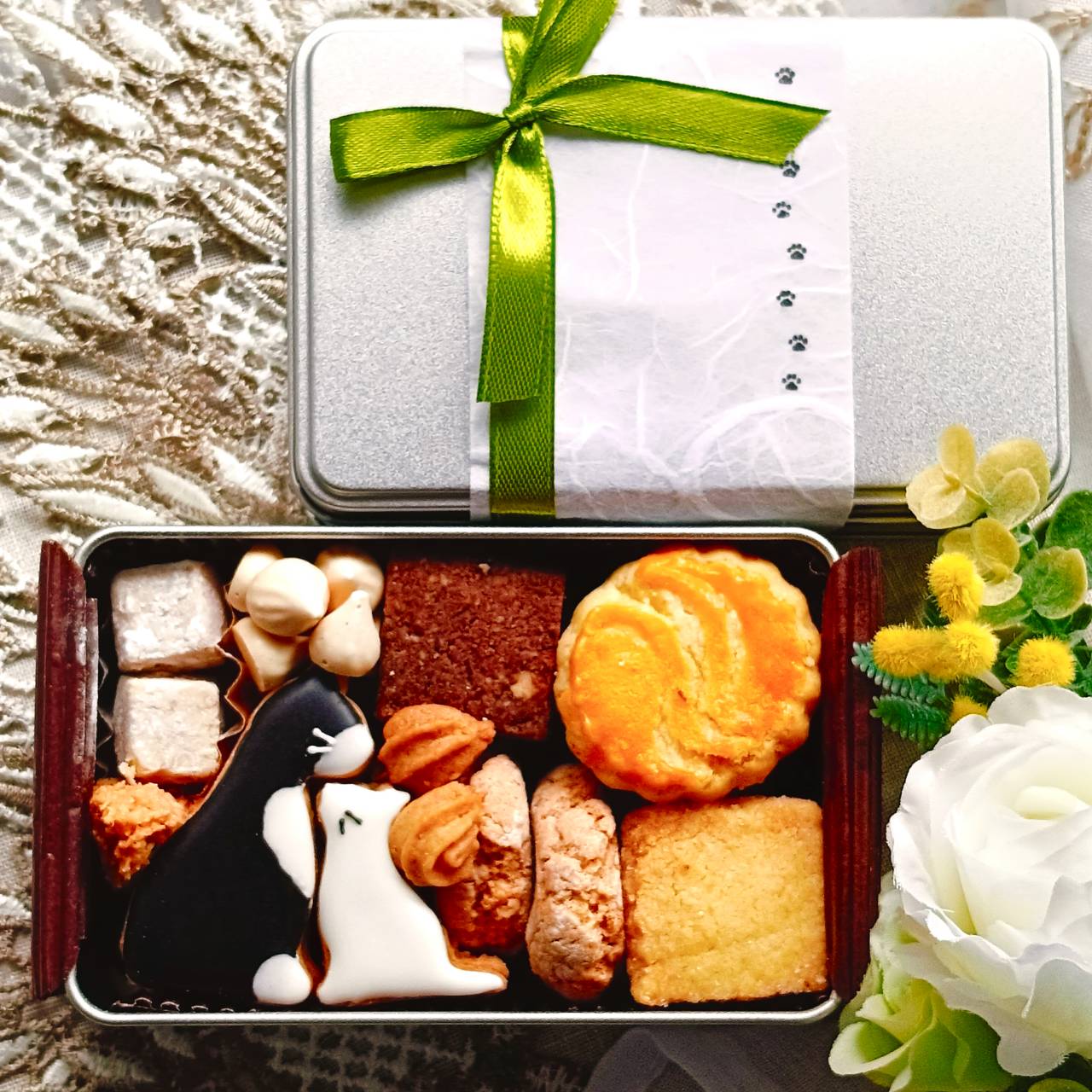 バターと小麦の豊かな風味と ひとつひとつ丁寧に作ったアイシングクッキー 小さな焼き菓子店だからこそ出来る、 こだわりの素材と手仕事 伝えたい気持ち と 美味しい がぎっしり詰まった、 くいしんぼうのクッキー缶です