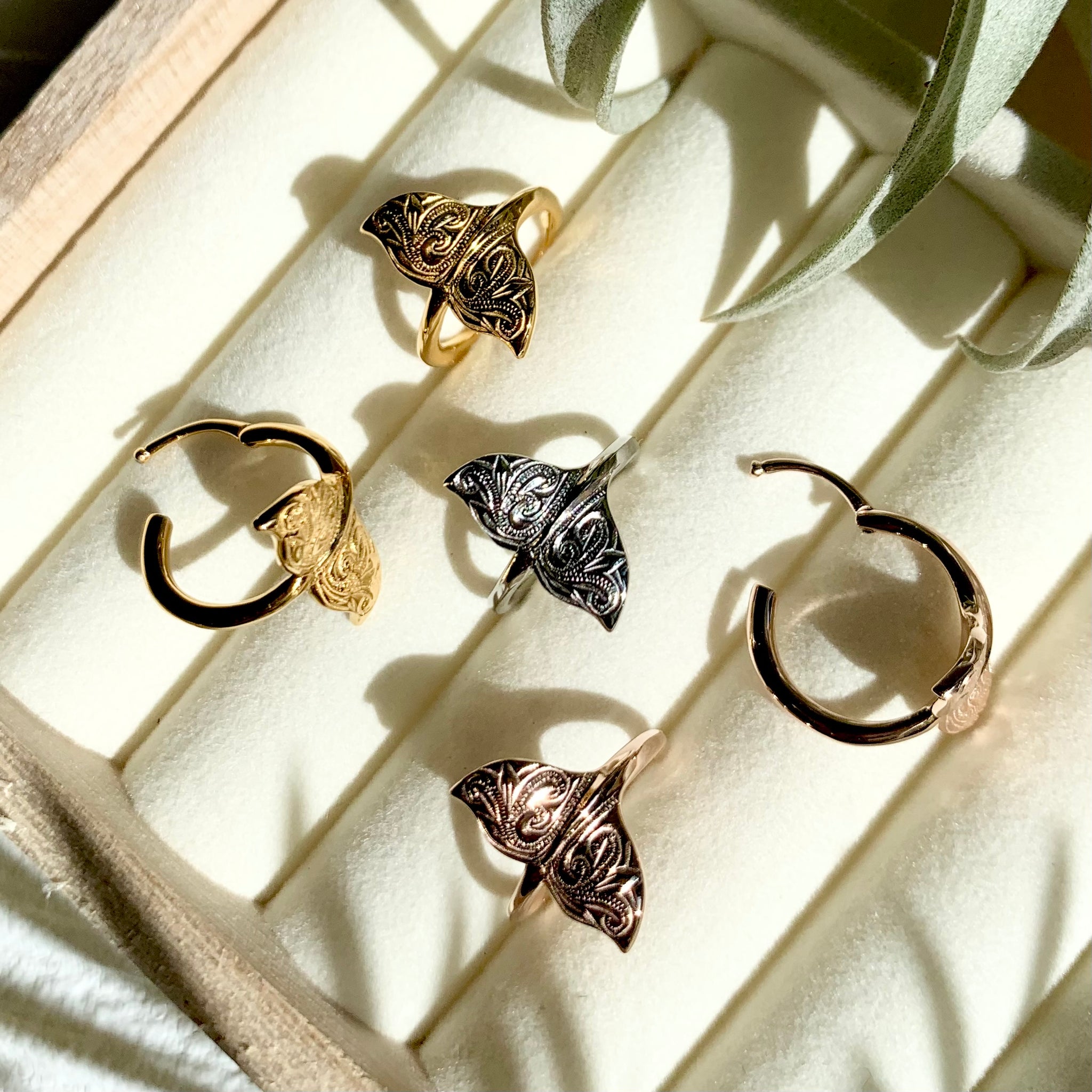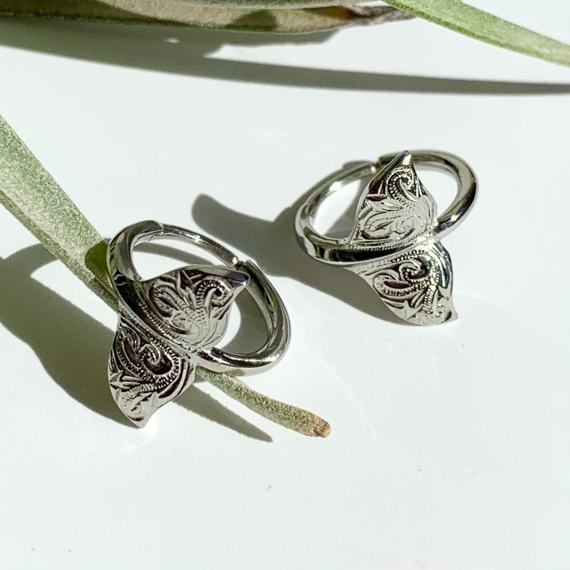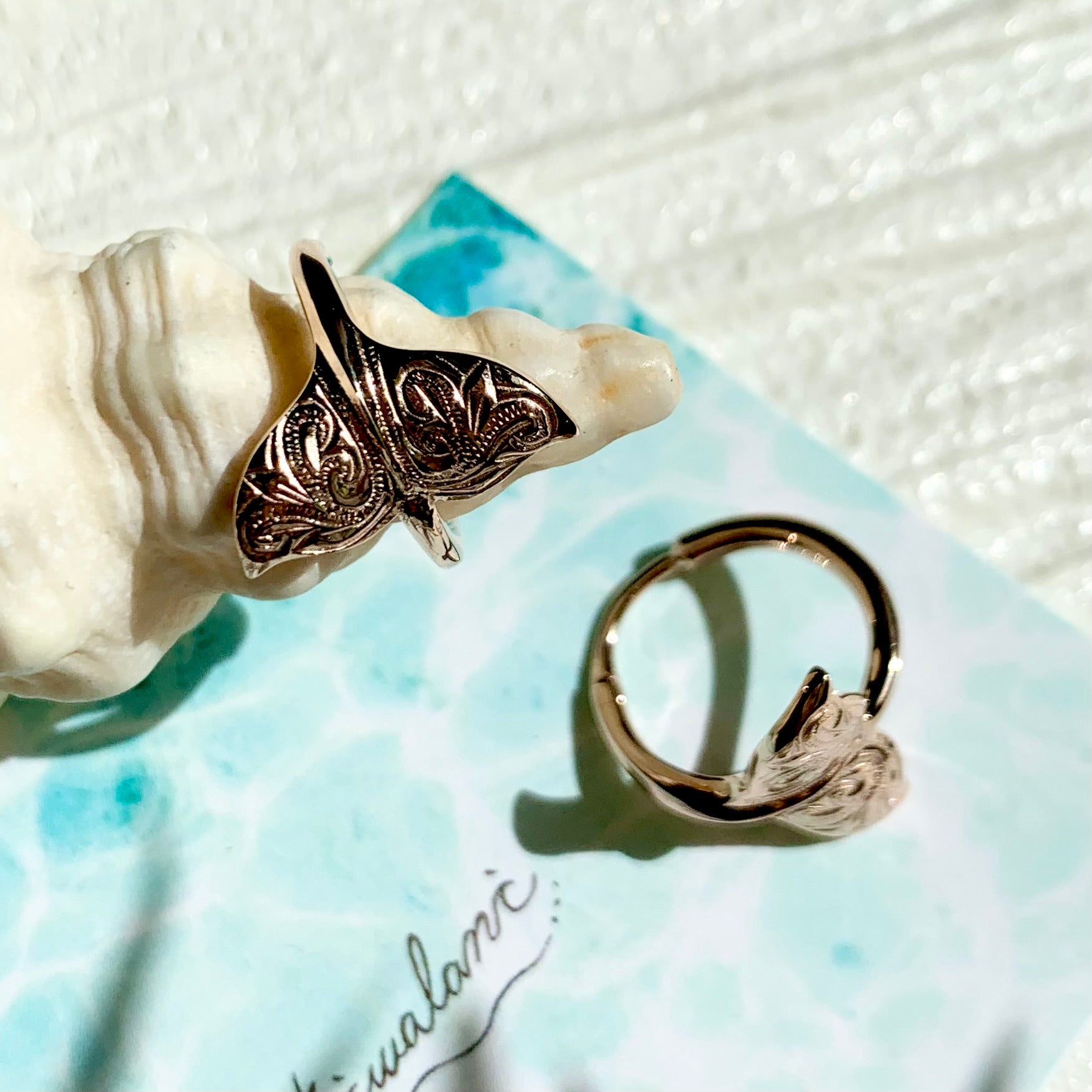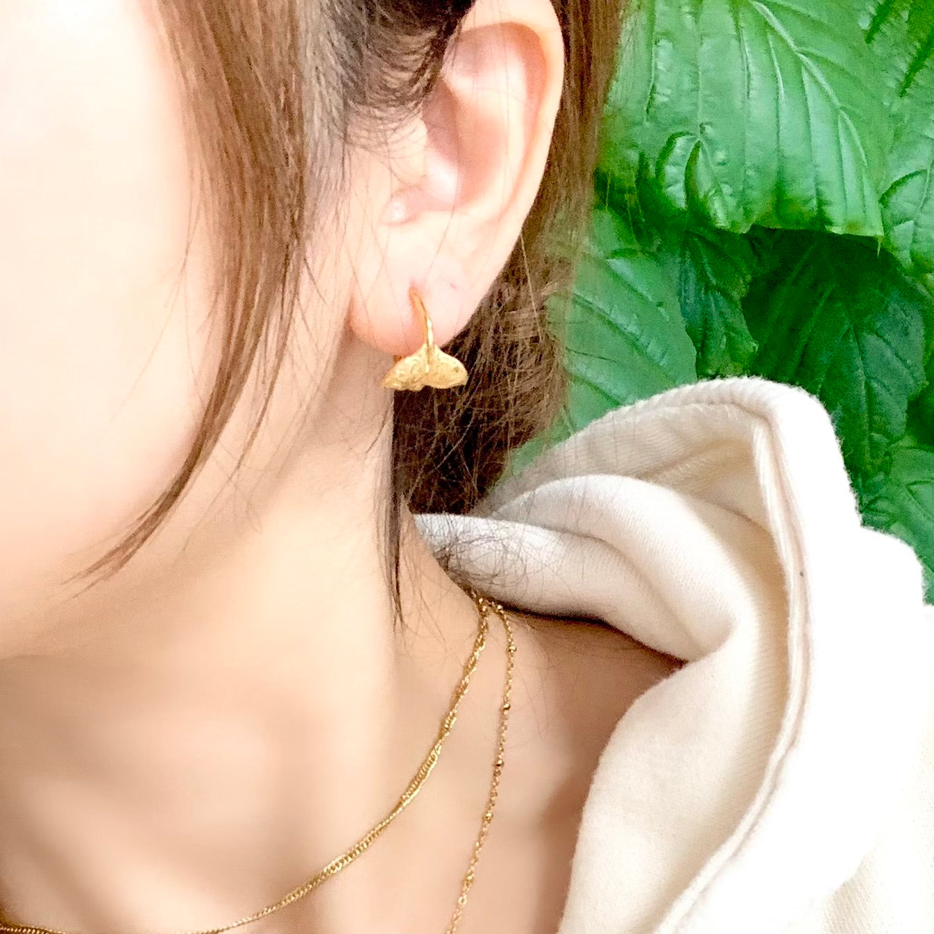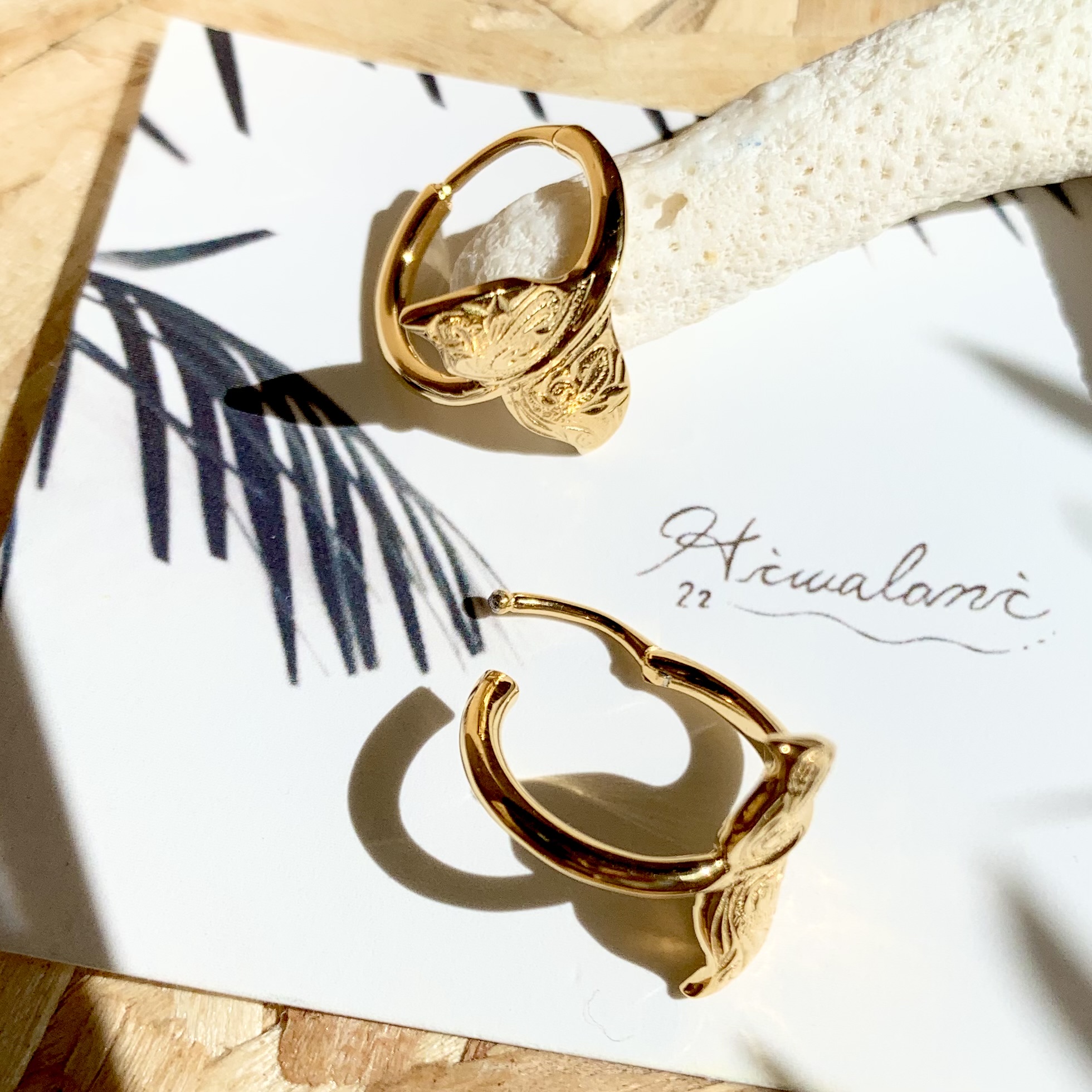 ホエールテール(クジラの尻尾)をフープ型にしたデザインピアス。