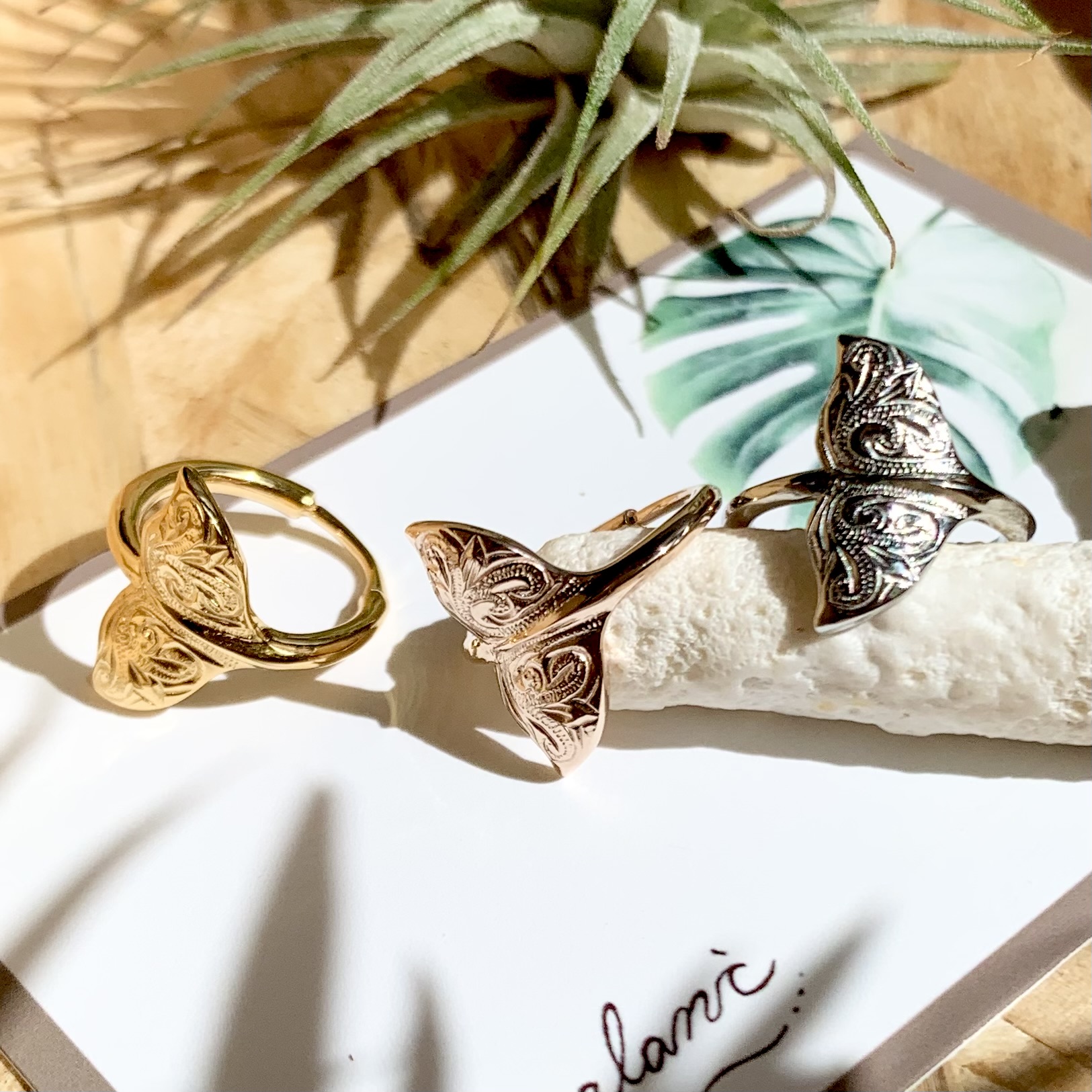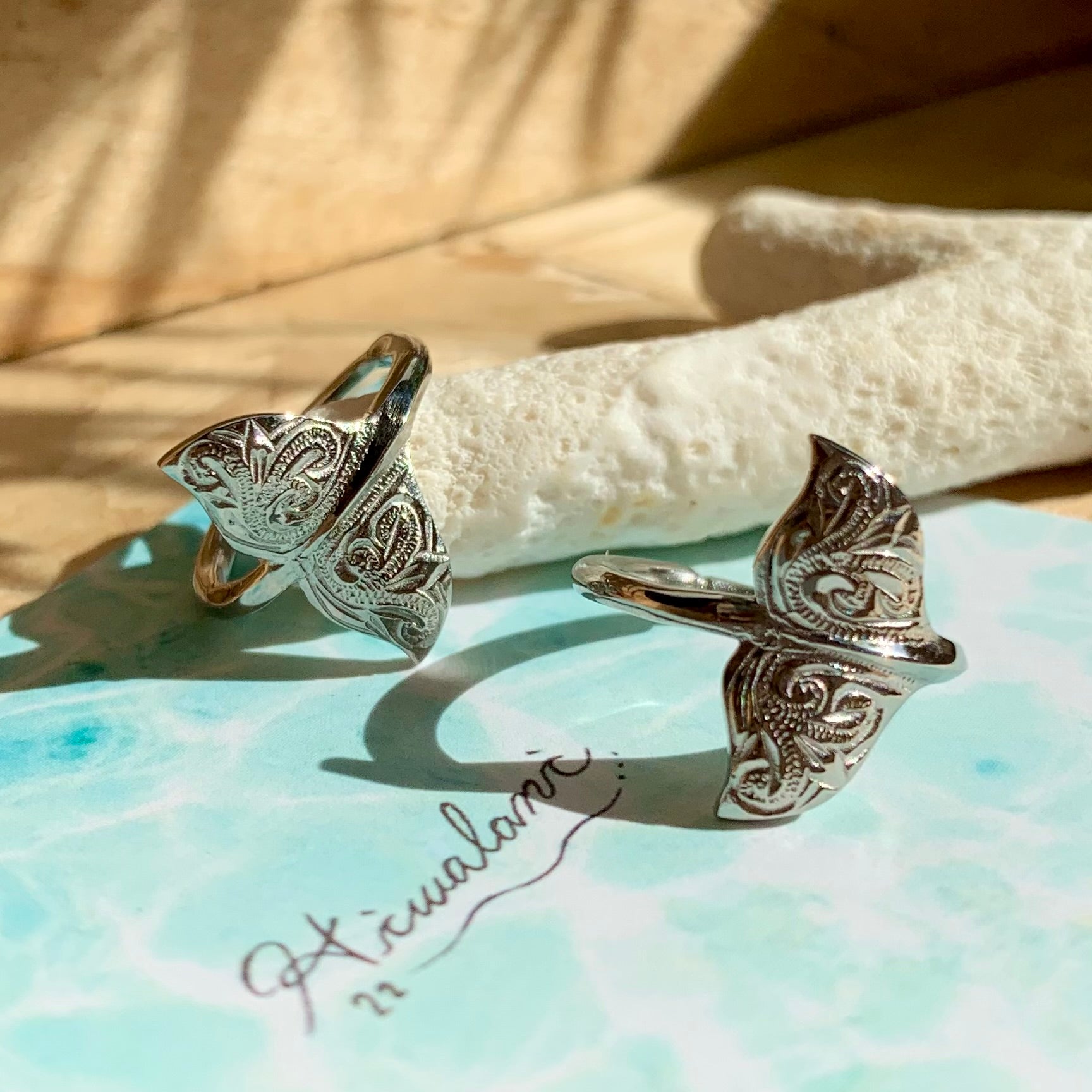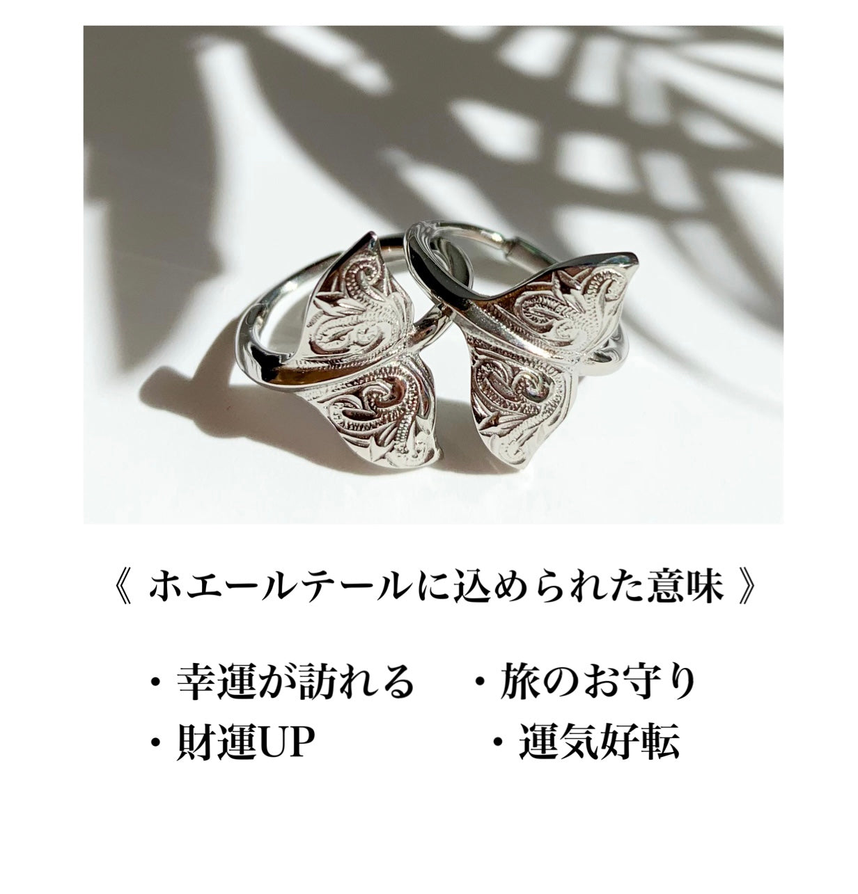 またザトウクジラは海から海へと大規模な回遊をすることから『海の旅人』とも言われており、その事からホエールテールは『旅のお守り』の意味も込められています。