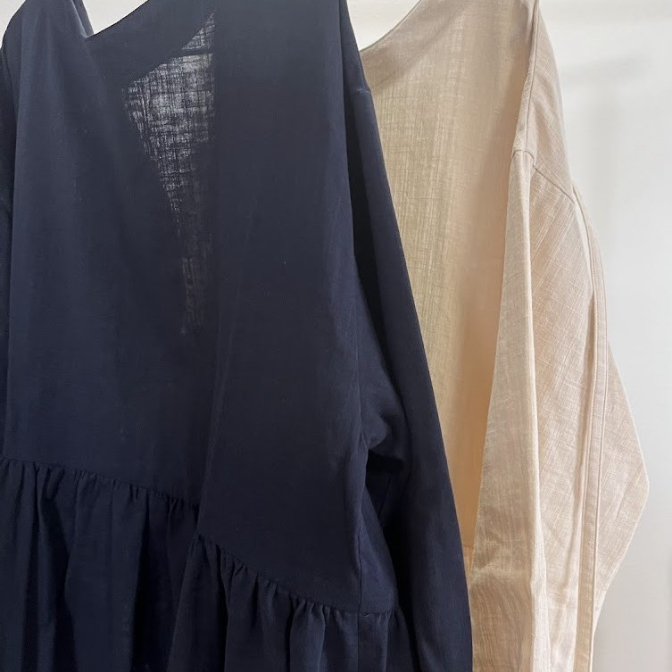 おしゃれを楽しむ割烹着ワンピース。 家事するときも、仕事するときも、 羽織やワンピースとして外出するときも。