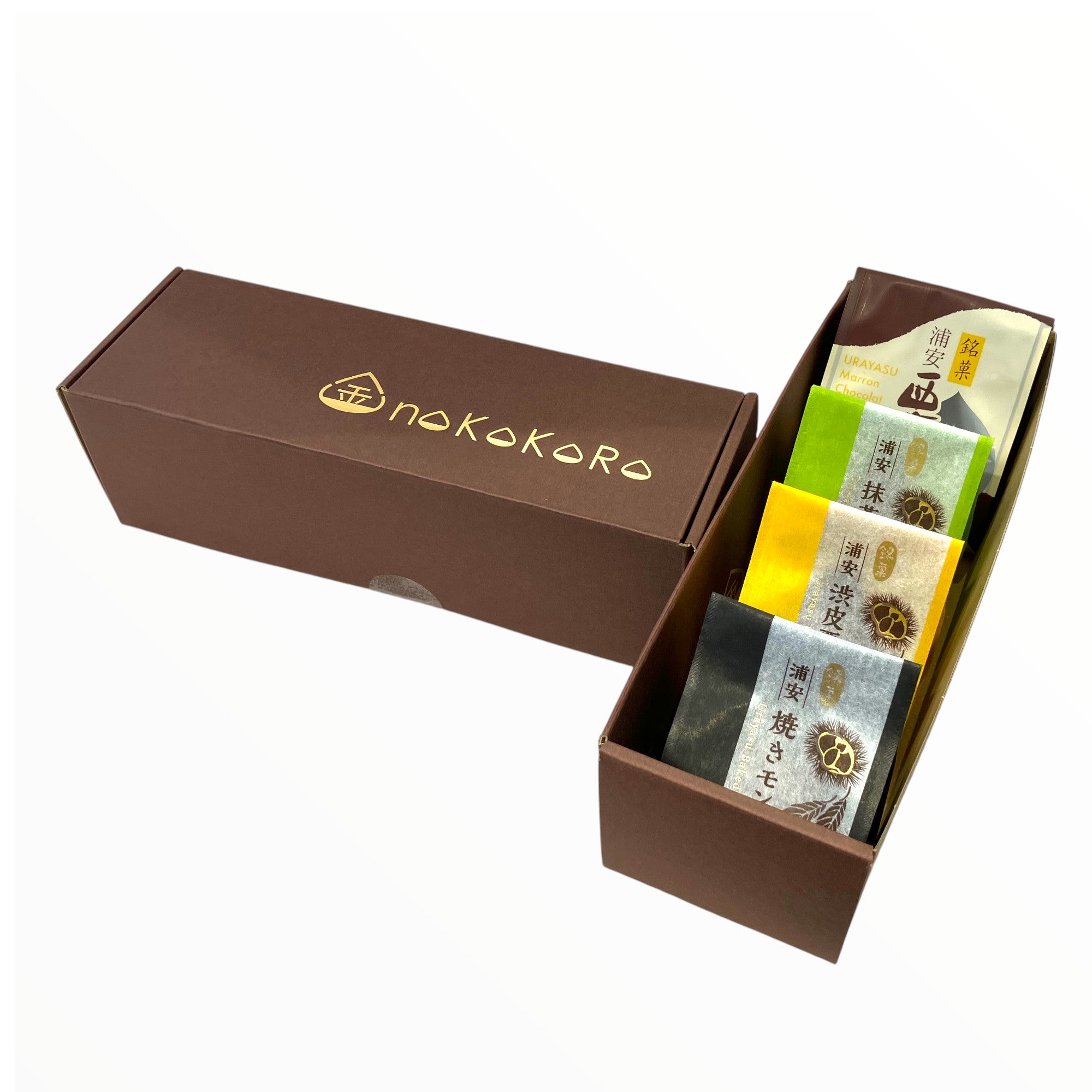 お土産・贈り物で悩んだら【銘菓浦安焼きモンブラン】、お味も4種類取り揃えております。
