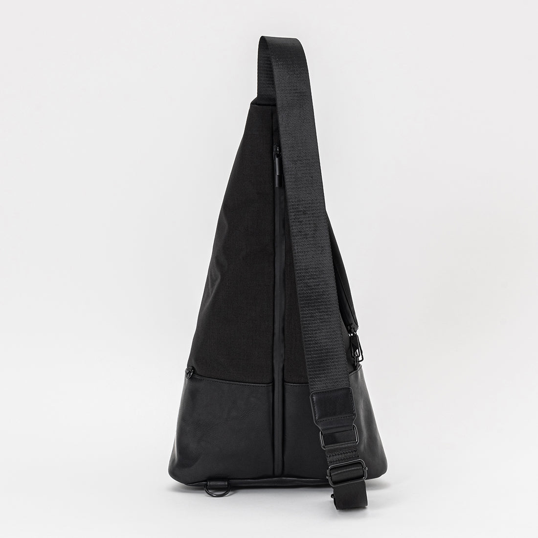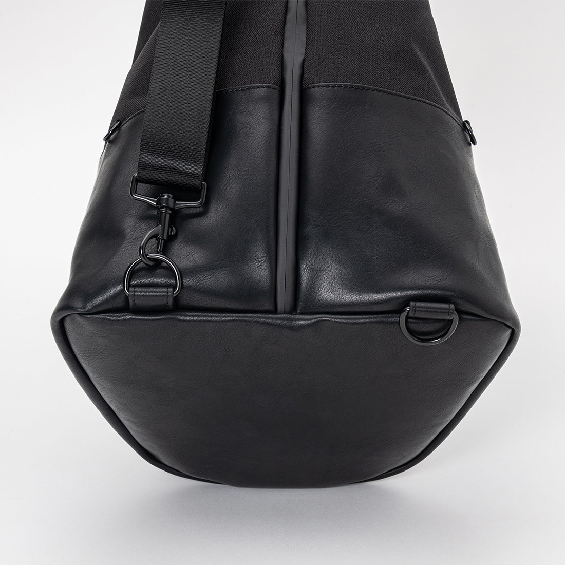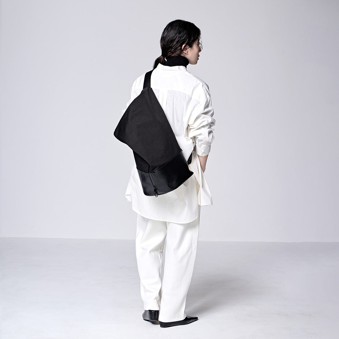 ナチュラルな質感のキャンバスにヴィーガンレザーの艶感をプラスした異素材のコントラストが、上品さと抜け感を同時に叶えます。