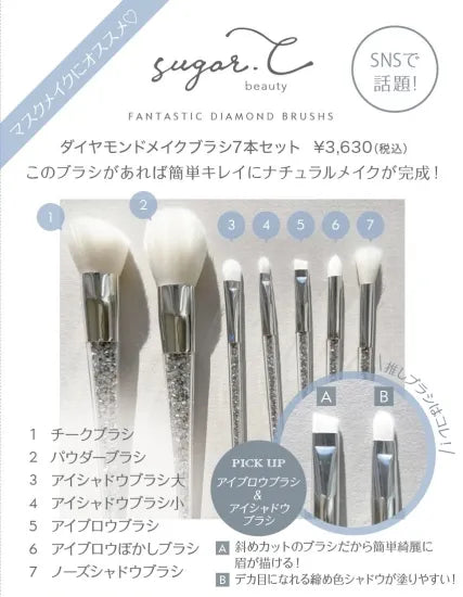 キラキラと輝くダイアモンドモチーフのビーズがぎっしりと詰まったメイクブラシ7本セット。
