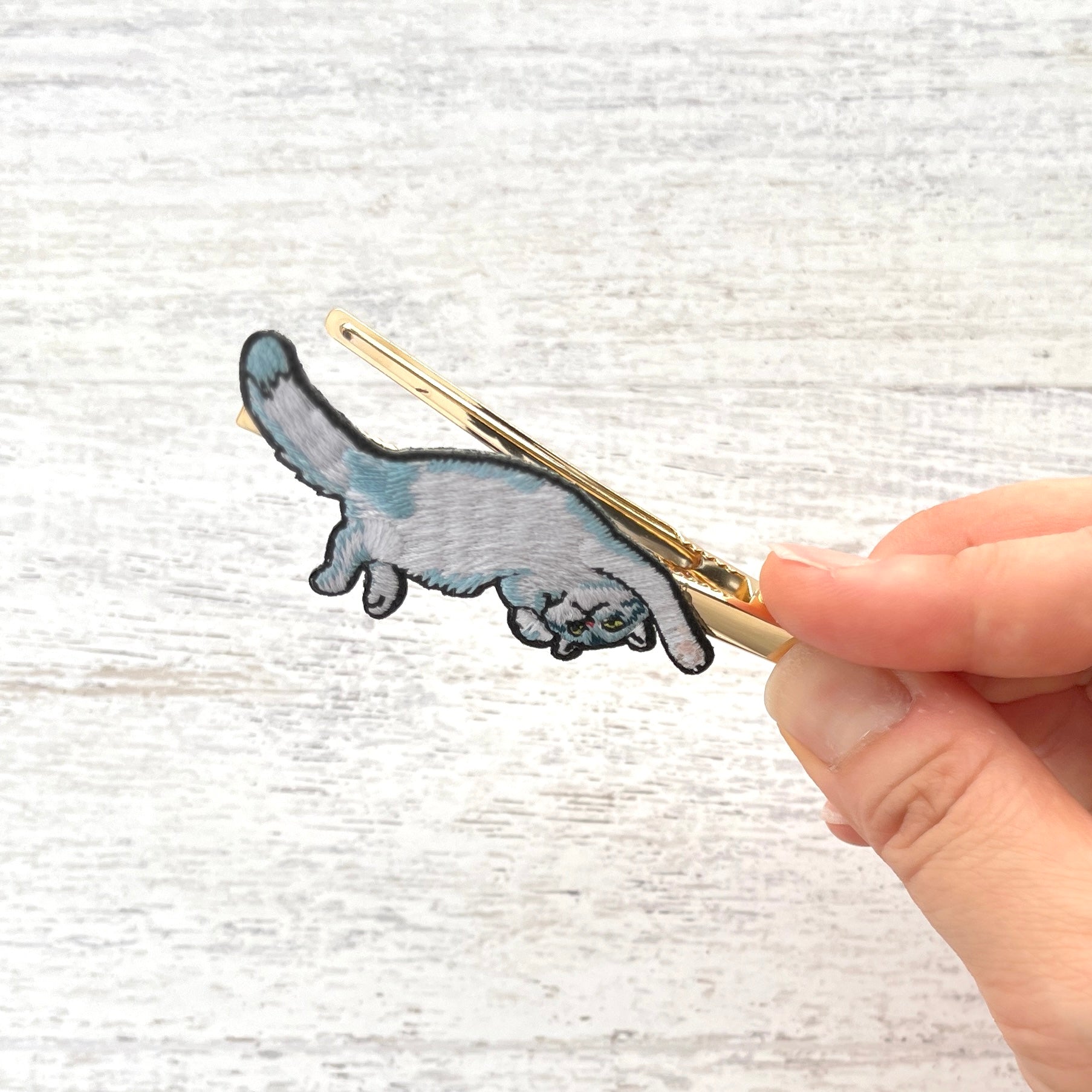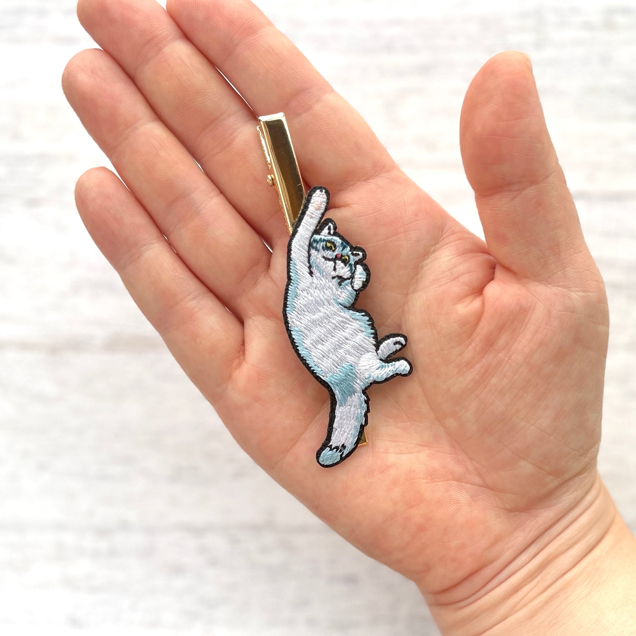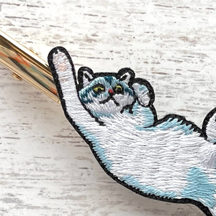 刺繍で作られたネコちゃんのヘアクリップです。
