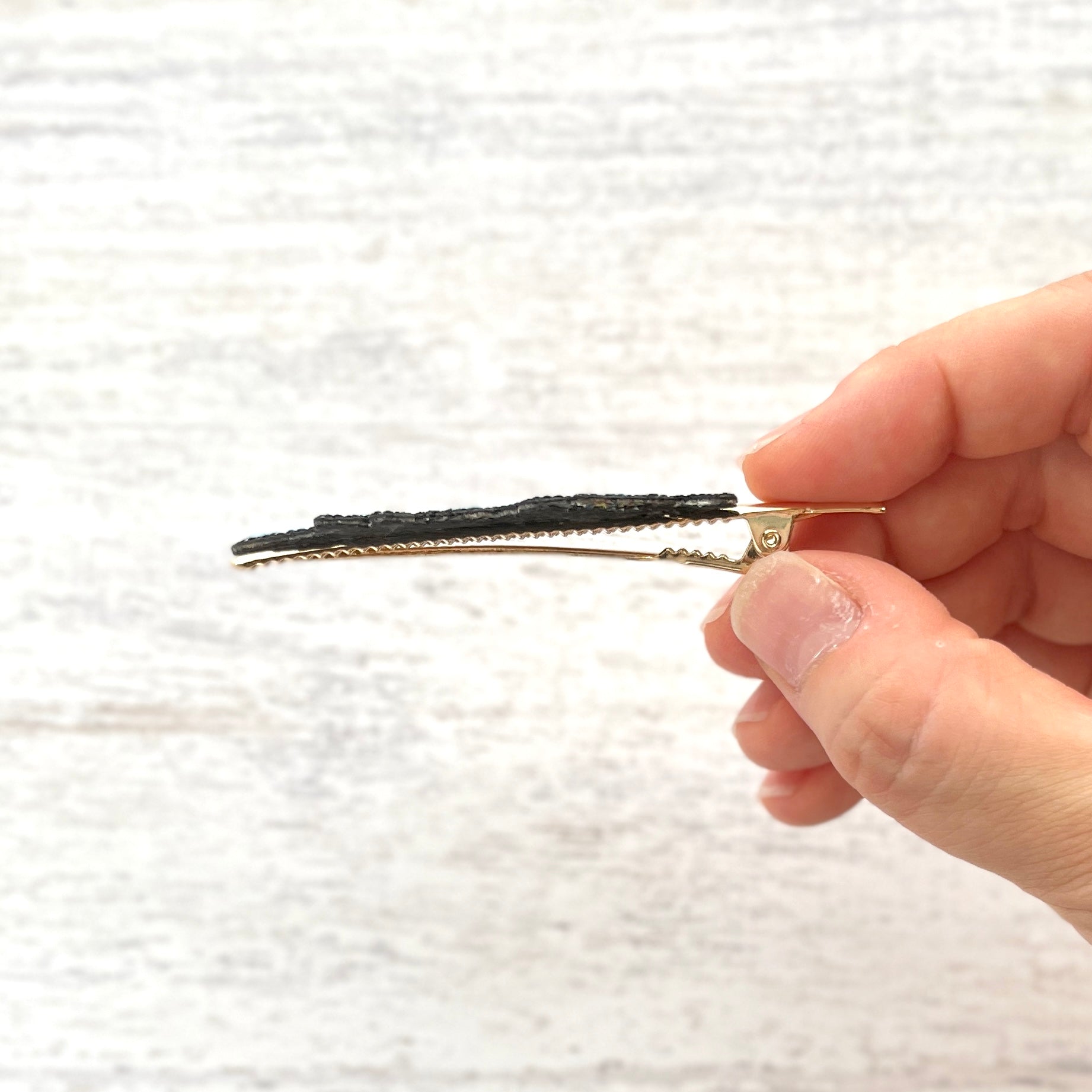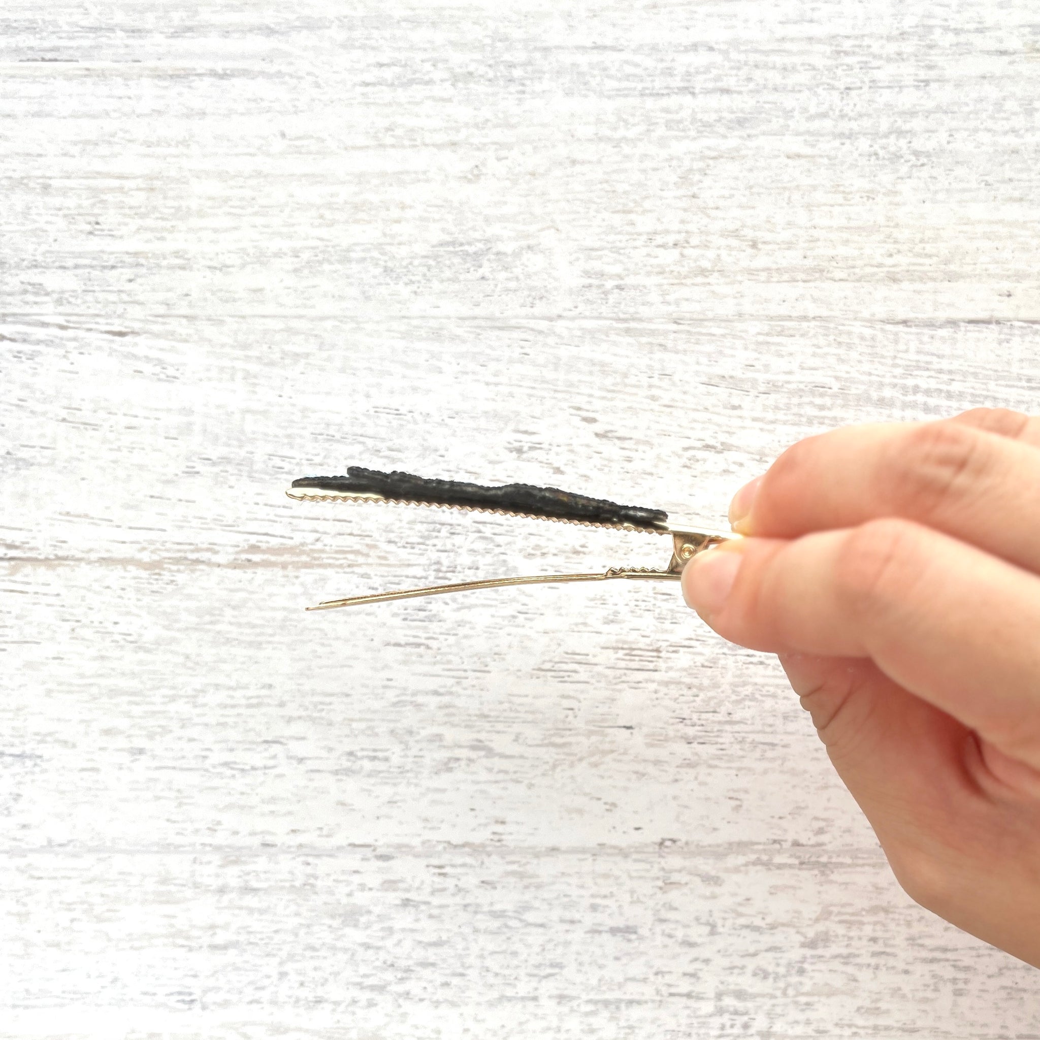 刺繍自体が非常に軽いので、ほとんどヘアクリップのみの重さです。