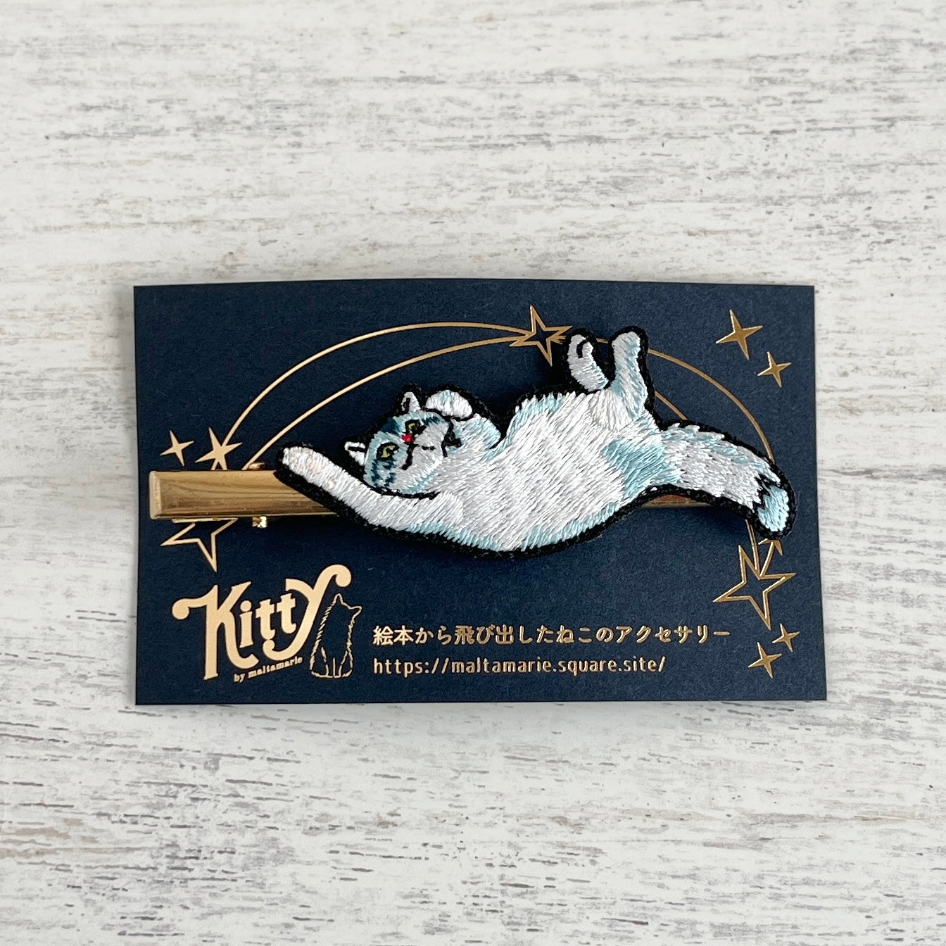 へそ天で眠るネコ・マフィンの髪飾り|maltamarie(マルタマリエ)