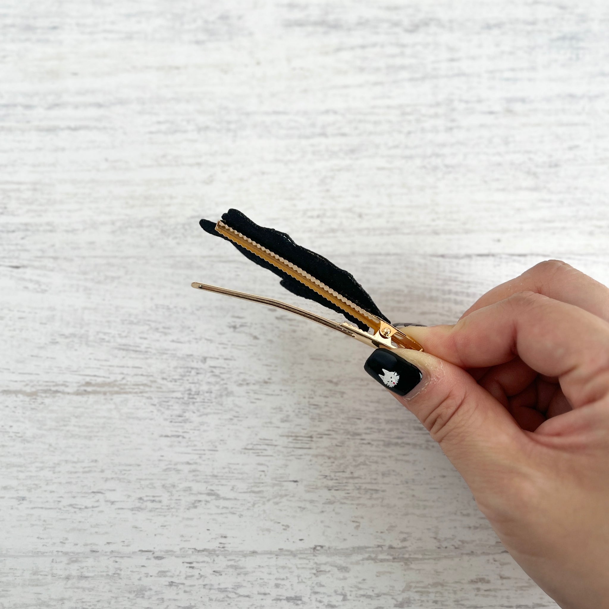 刺繍自体が非常に軽いので、ほとんどヘアクリップのみの重さです。
