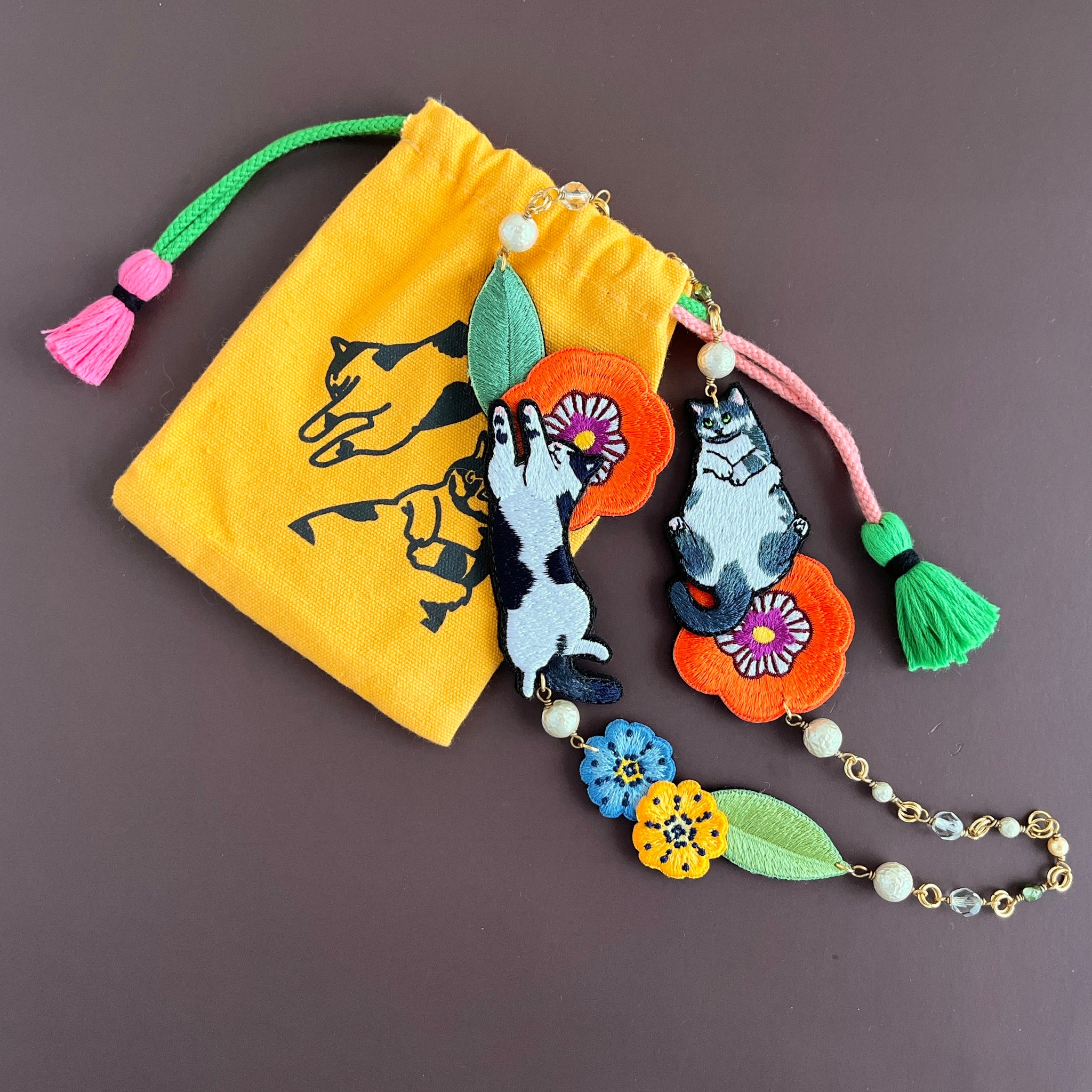 絵本から飛び出した猫のアクセサリー。