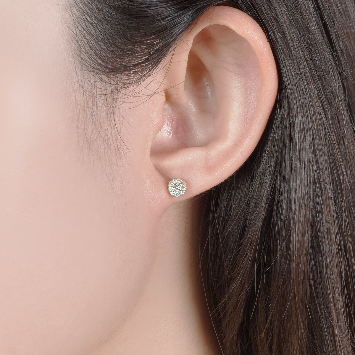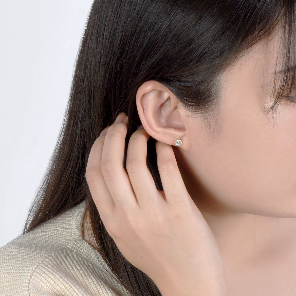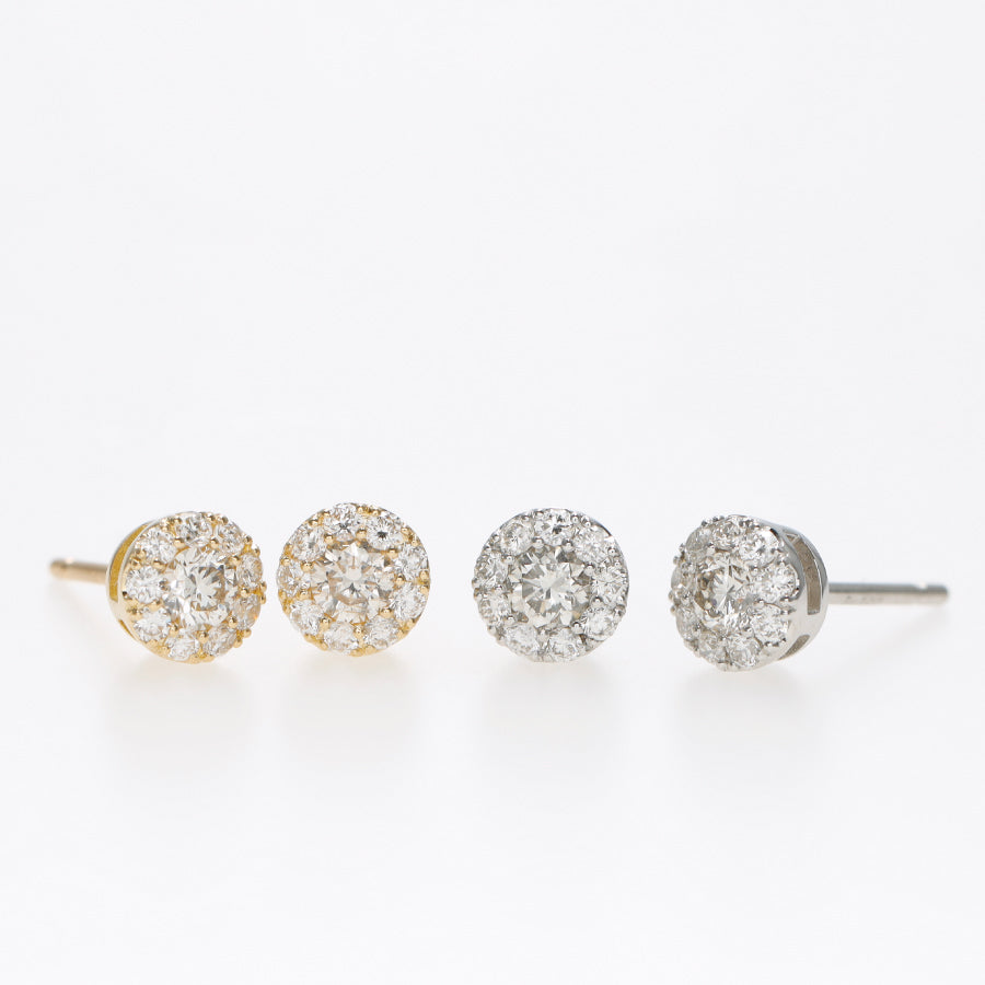 0.08ctの真ん中のダイヤモンドを小さなダイヤモンドで囲うことで、一粒に見える美しいピアス。