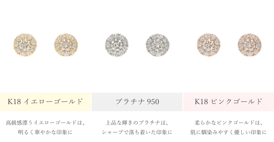 輝きや色味をそろえたダイヤモンドを使用することで、それぞれの輝きが調和し、まるでひとつの輝きにも見えるようなデザイン。