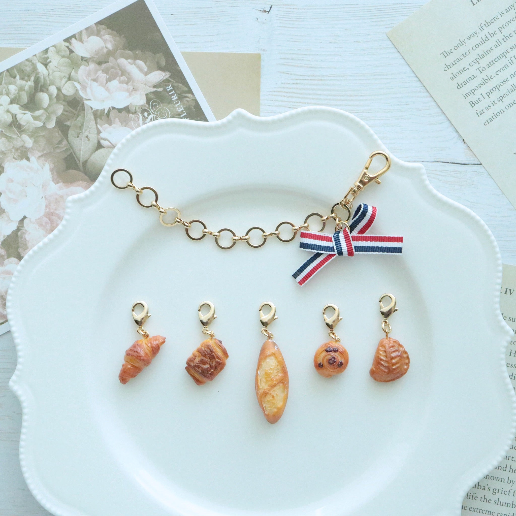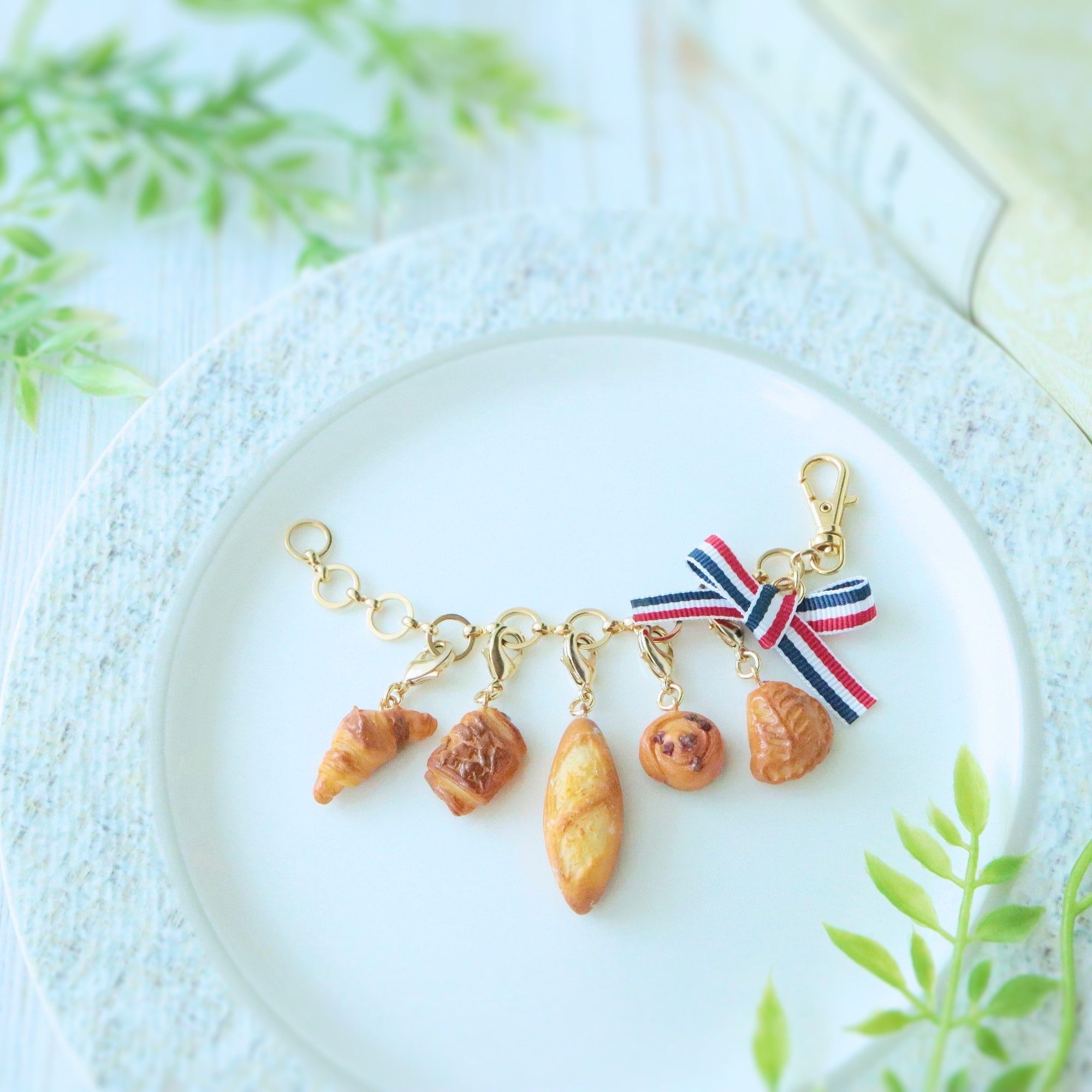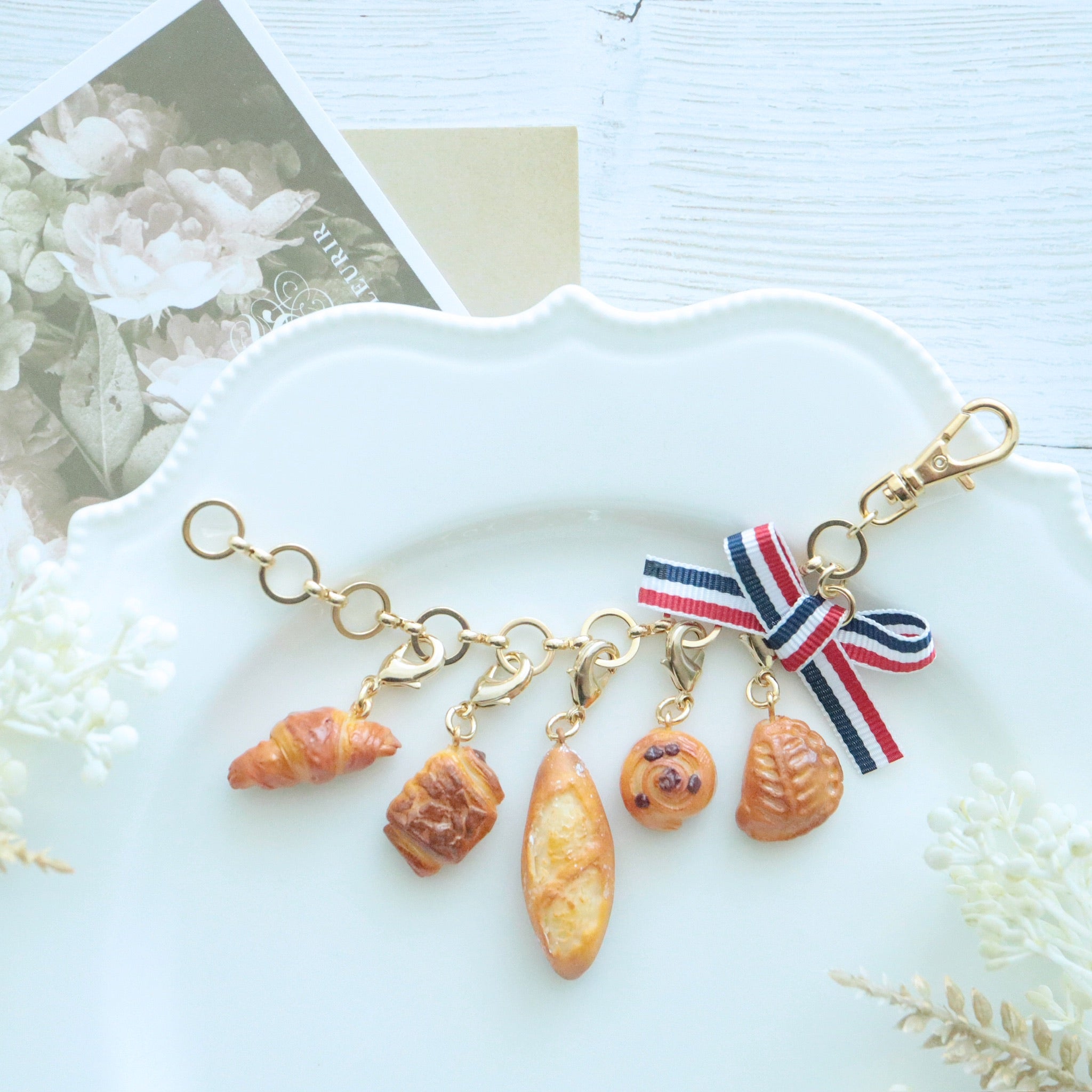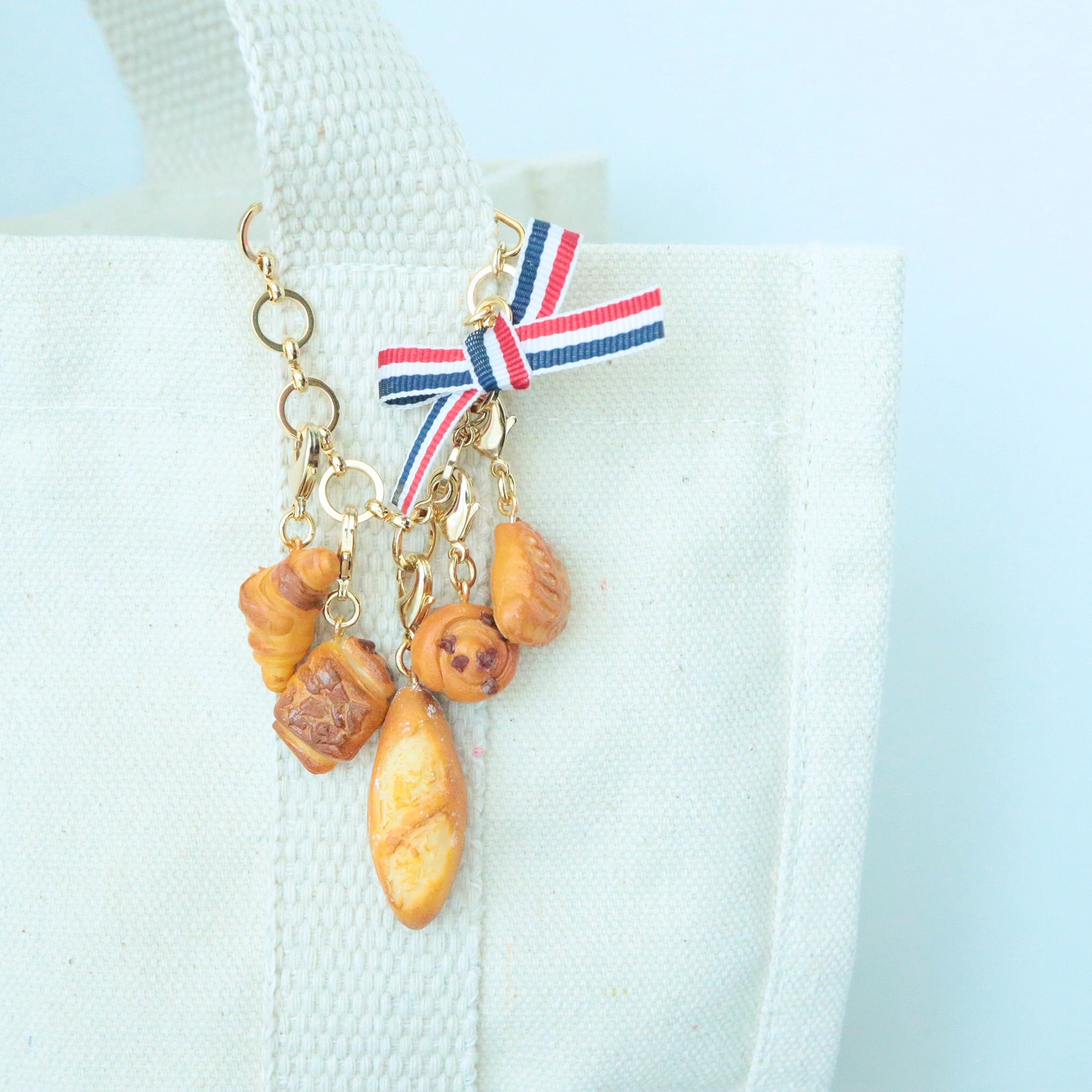 フランスの定番パンを集めた、取り外しできるバックチャームです。
