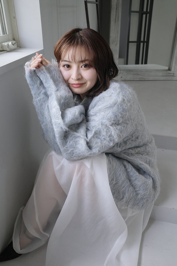 ふわふわの毛足が愛らしい、シャギーカーディガン。