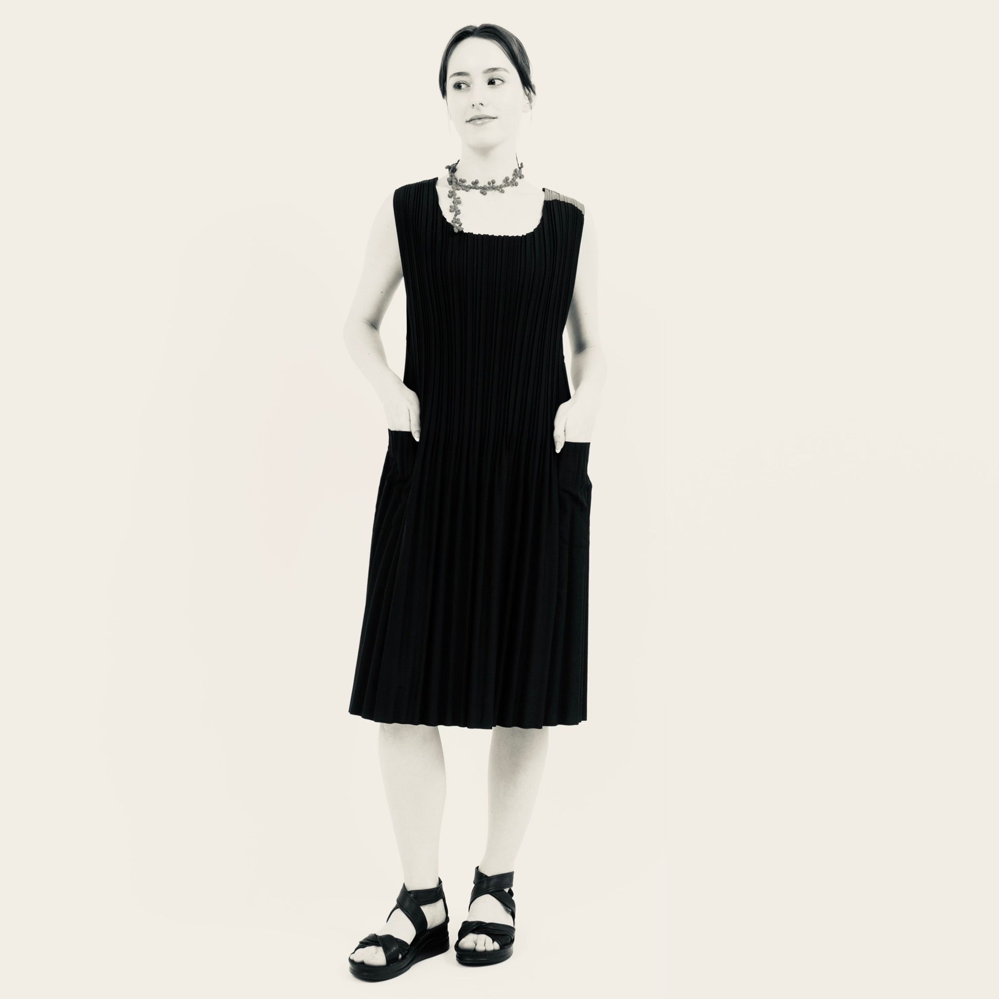 When storing the Pratique Dress in the " Itsu demo soba ni " pouch, we recommend rolling it up vertically along the pleats, folding it twice and then placing it in the pouch.