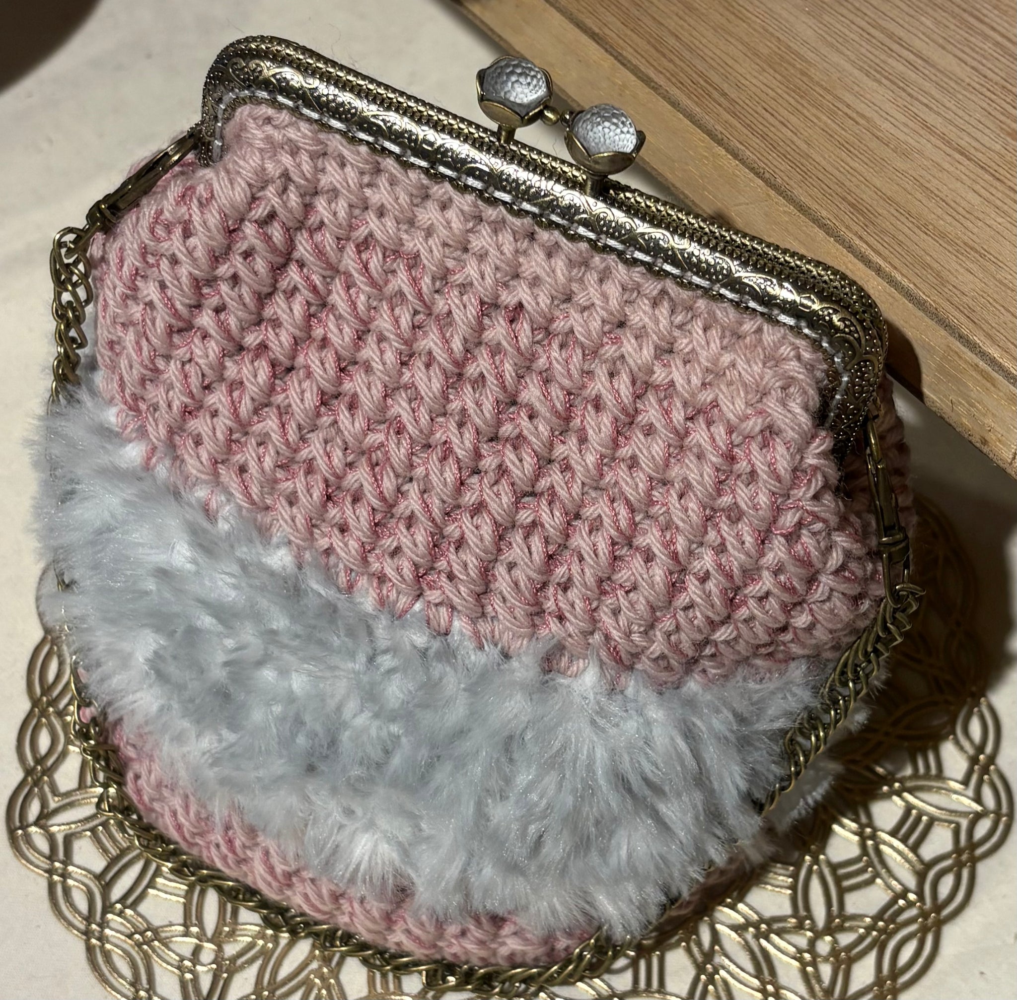 ピンクにグレイのファーでアクセントをつけたミニバッグです。