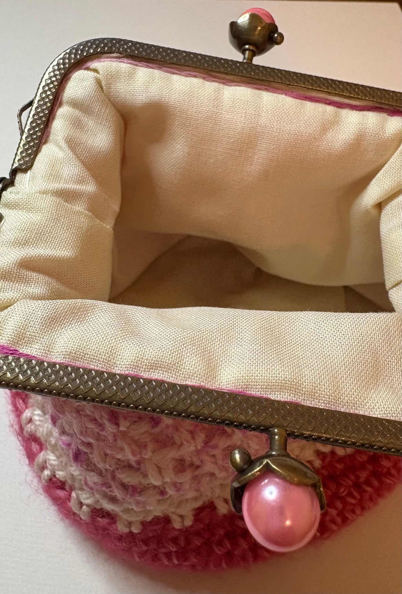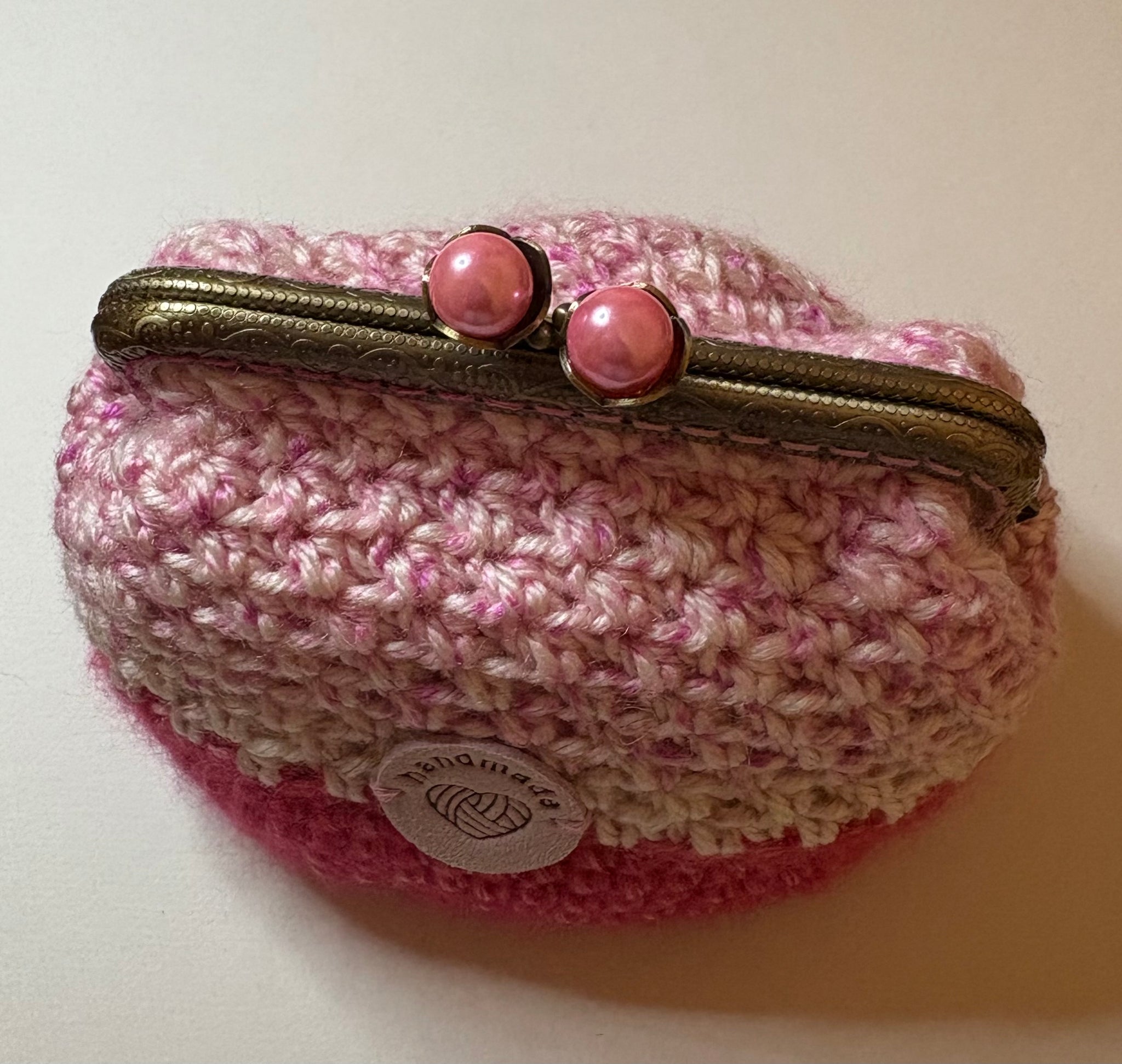 ピンクパールが可愛いがま口ポーチ|M'S  CROCHET(エムズクロシェット)