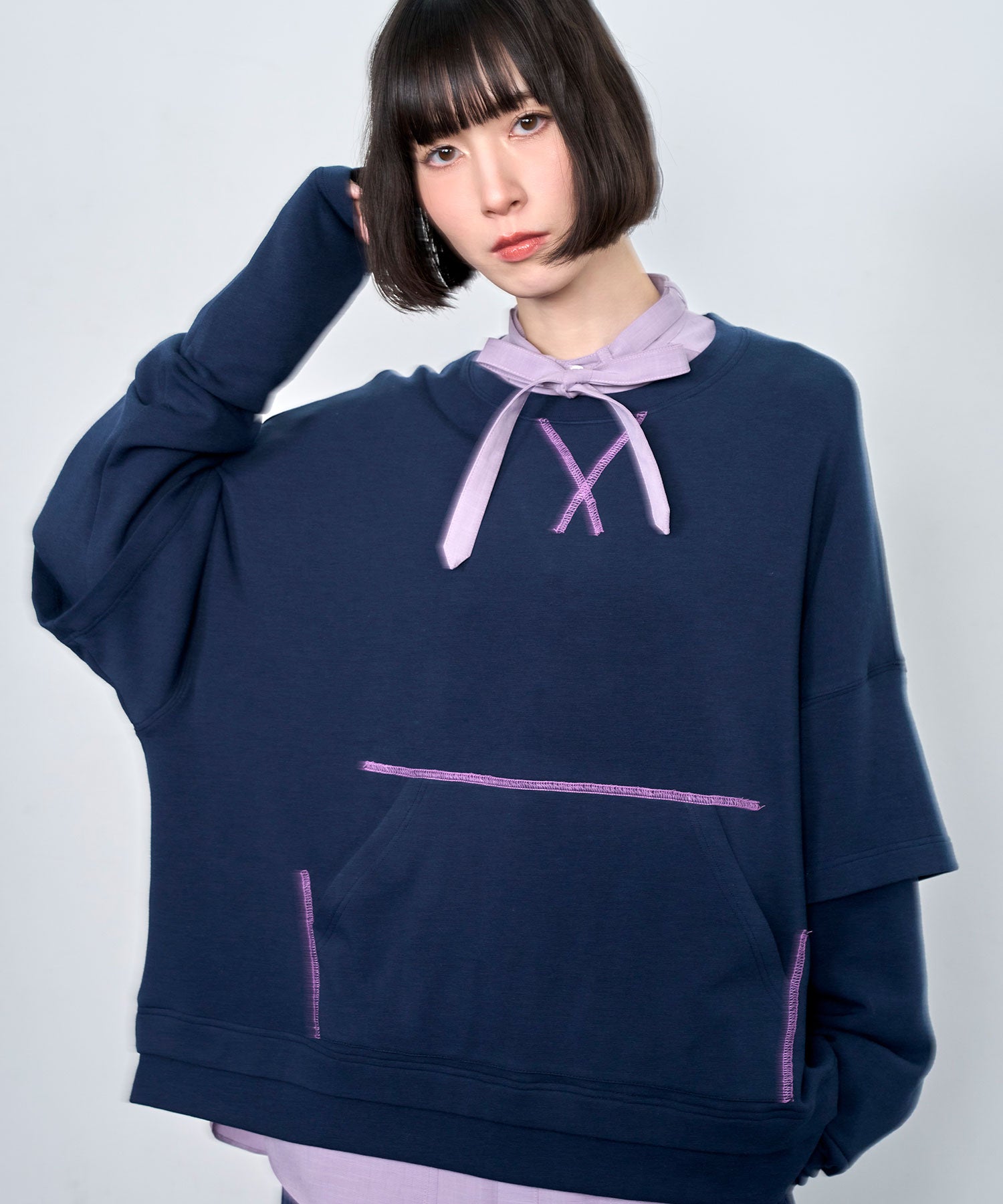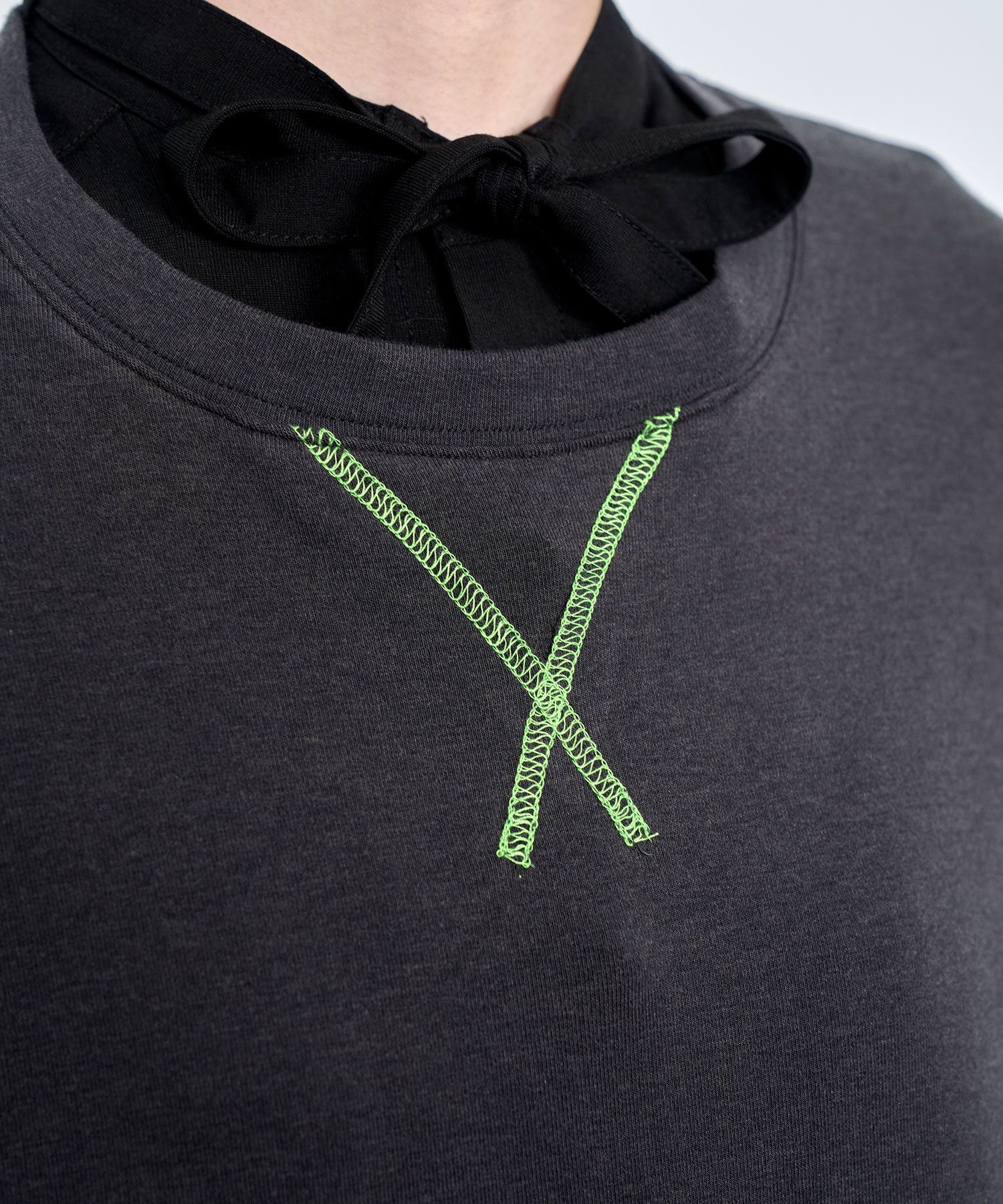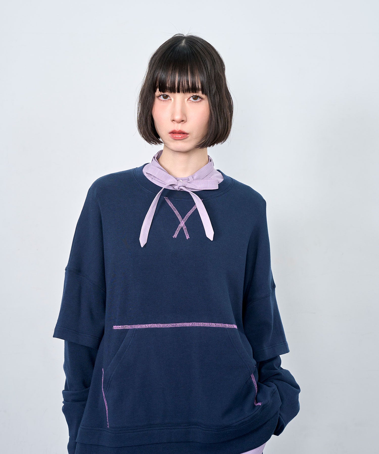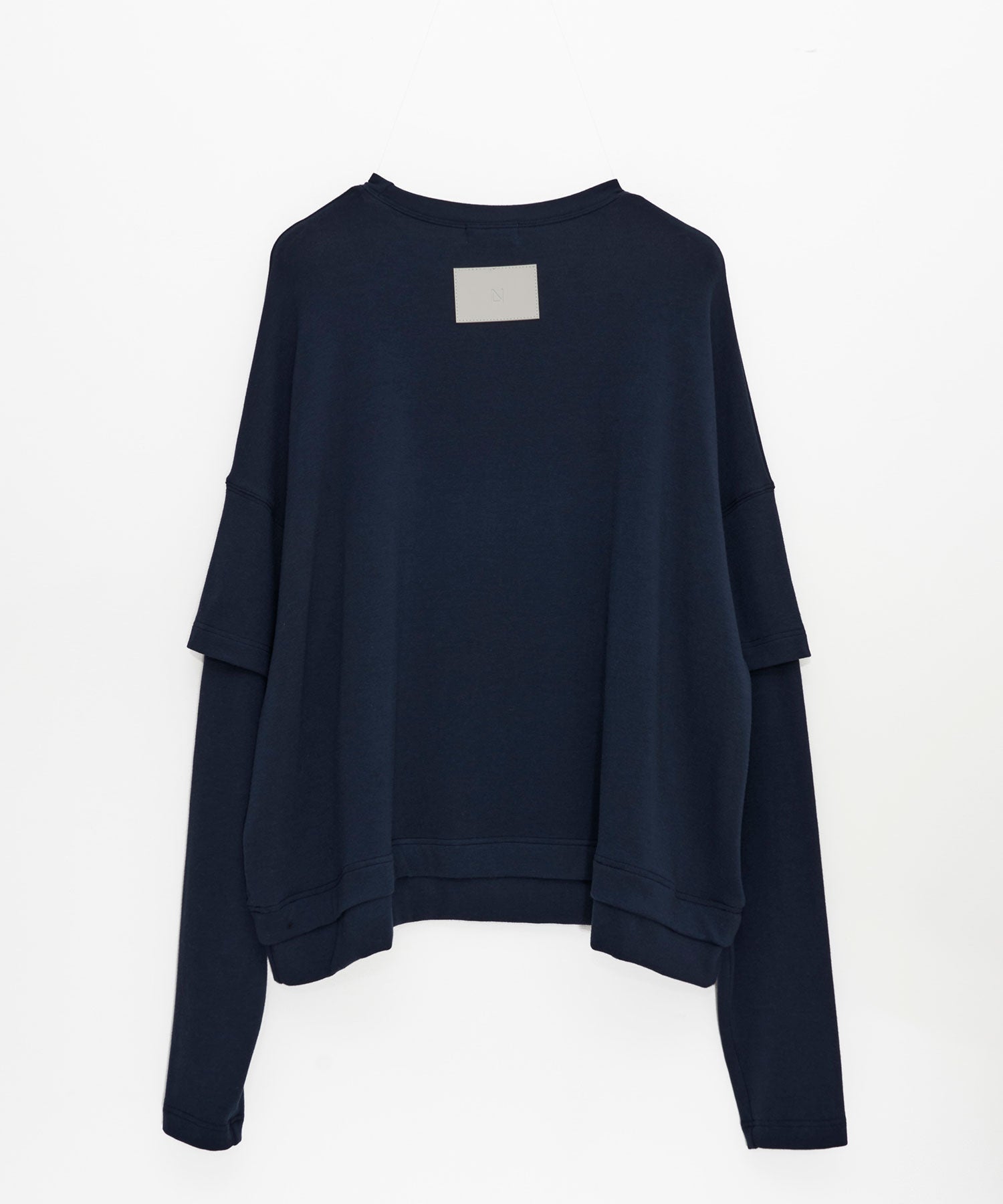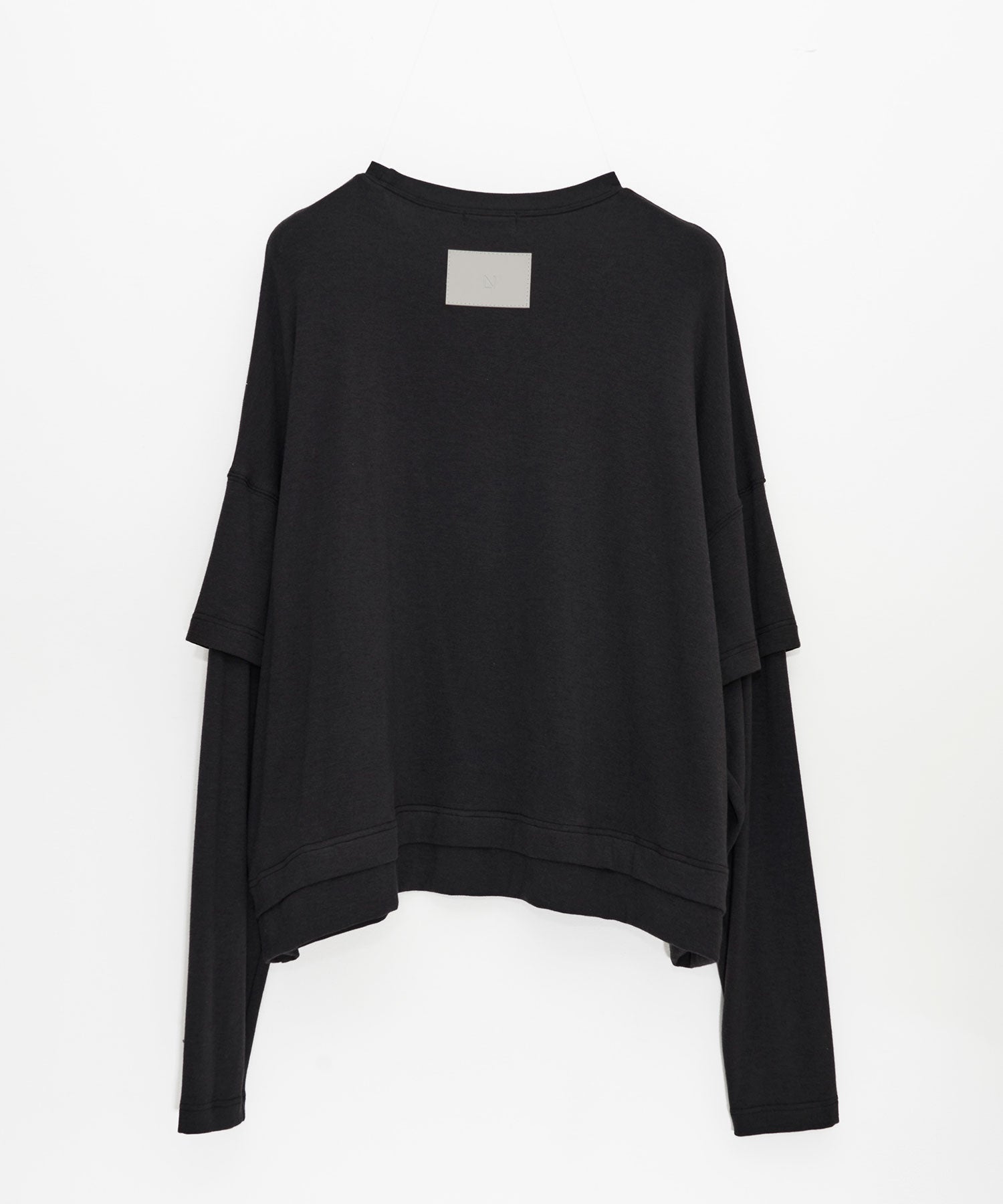 配色ステッチがアクセントになった、レイヤード風デザインのロングスリーブTシャツ。