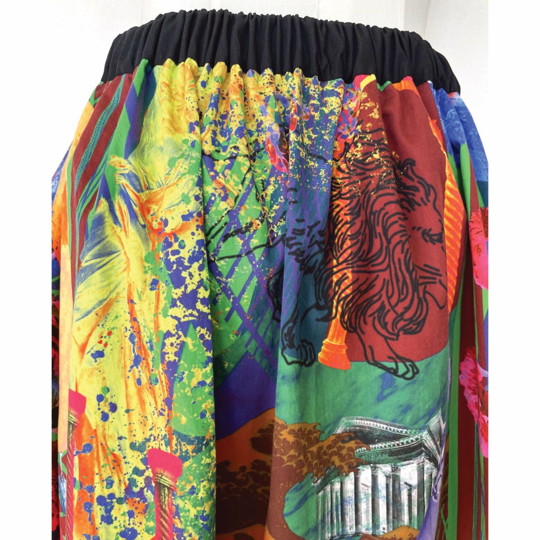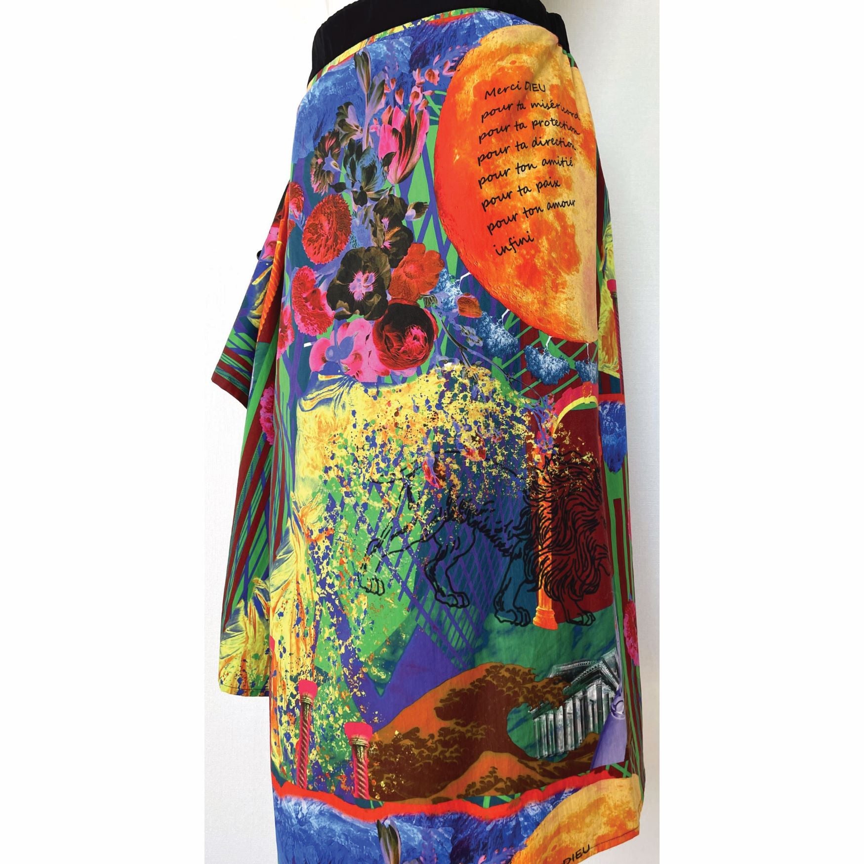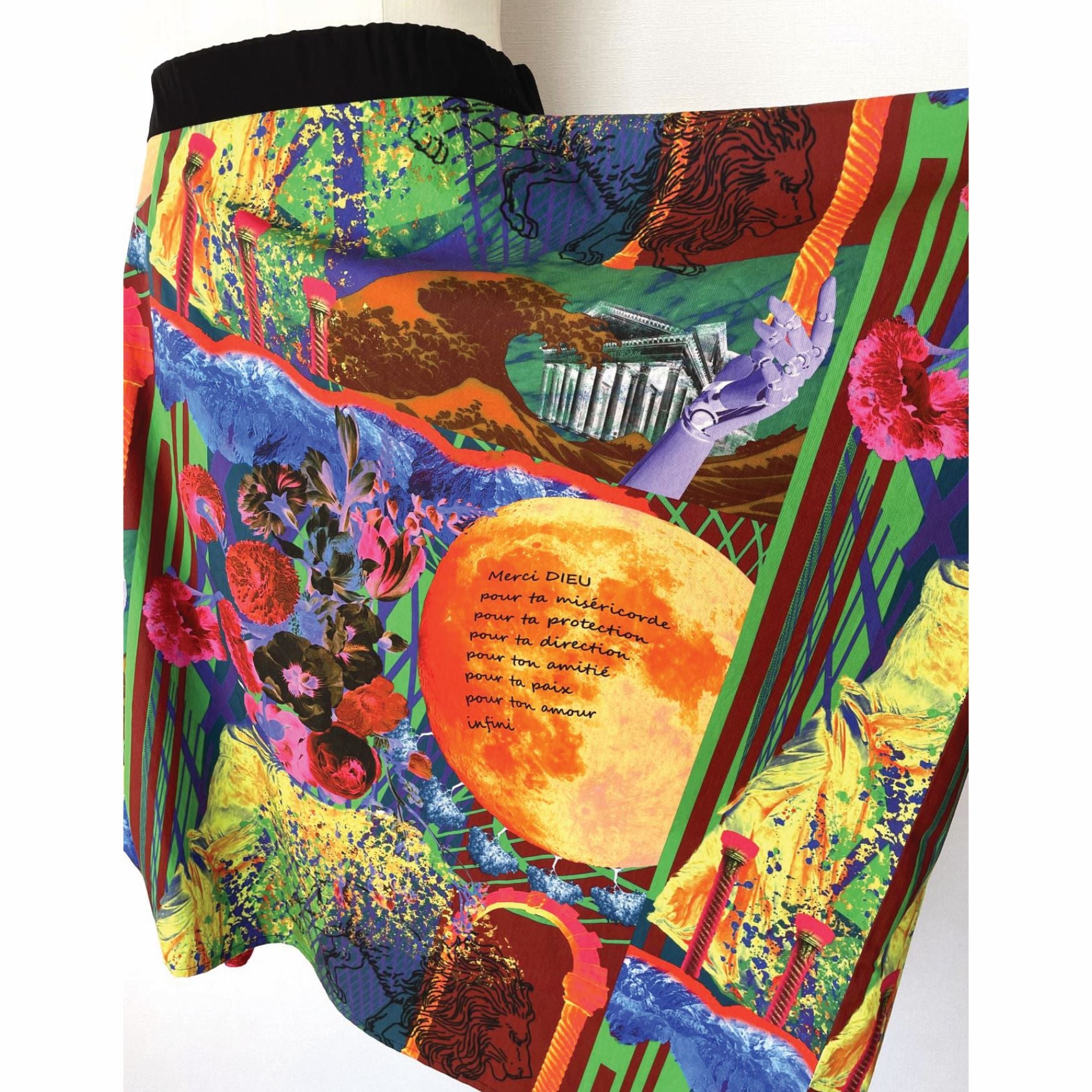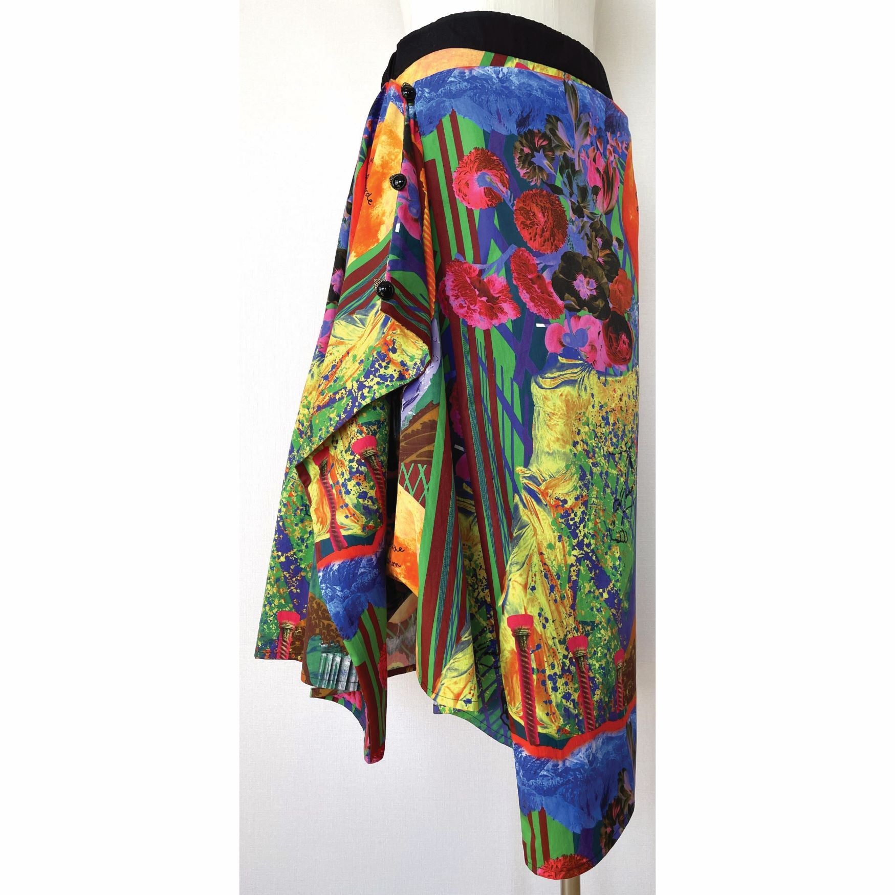 オリジナルのデジタルアートをプリントした生地で、デザイン、型紙、縫製まですべての工程をデザイナー自身が行いました。