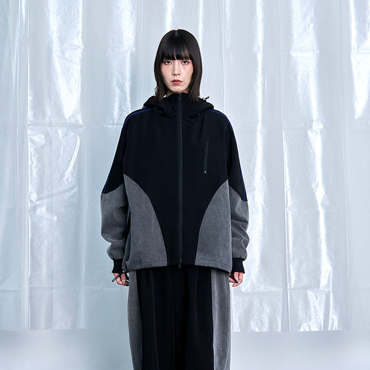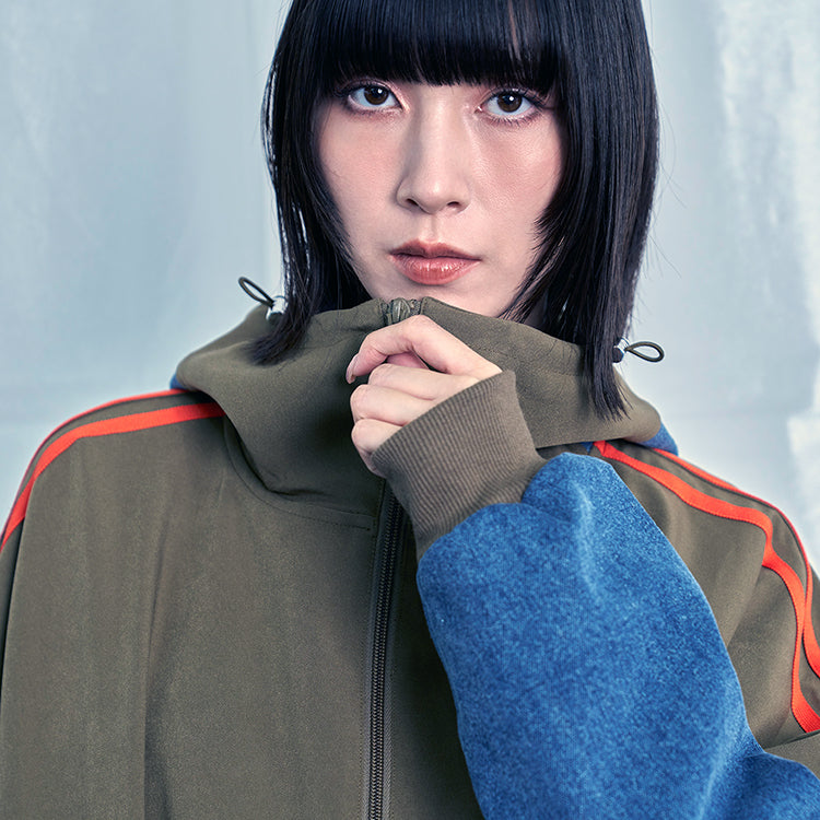 胸元のZIPポケットや裾のドローコードなど、実用性も兼ね備えたディテールがポイント。
