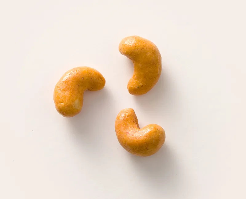 カシューナッツ(インド産)、小麦粉、寒梅粉ミックス(もち米(国産、タイ産)、トウモロコシでん粉)、うるち粉、砂糖、食塩、粉末しょうゆ、でん粉分解物、でん粉、一味唐辛子/加工でん粉、香辛料、膨張剤、調味料(アミノ酸等)