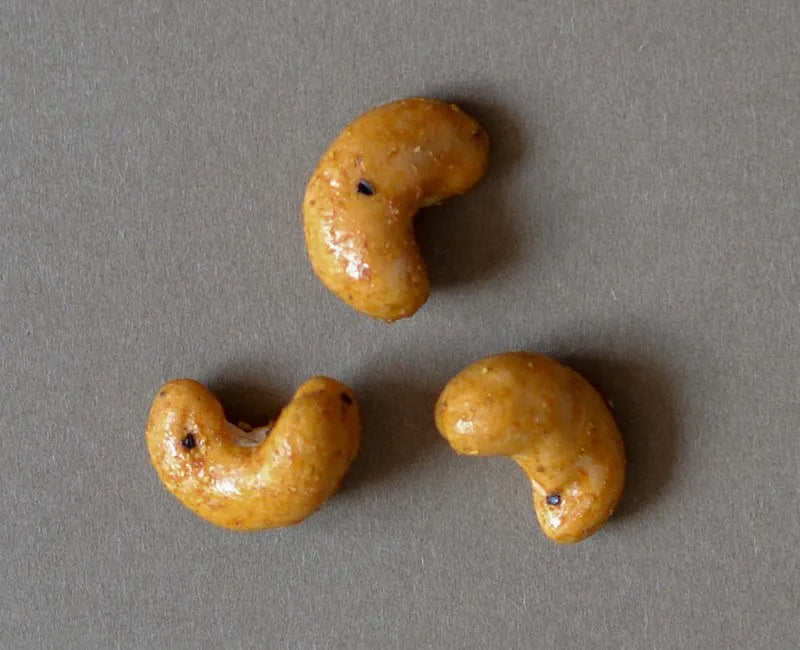 カシューナッツ(インド産)、小麦粉、寒梅粉ミックス、うるち粉、砂糖、食塩、粉末しょうゆ、でん粉分解物、でん粉、ガラムマサラ、コリアンダー、ブラックペッパー、レッドチリ、クミン、ターメリック/加工でん粉、膨張剤、