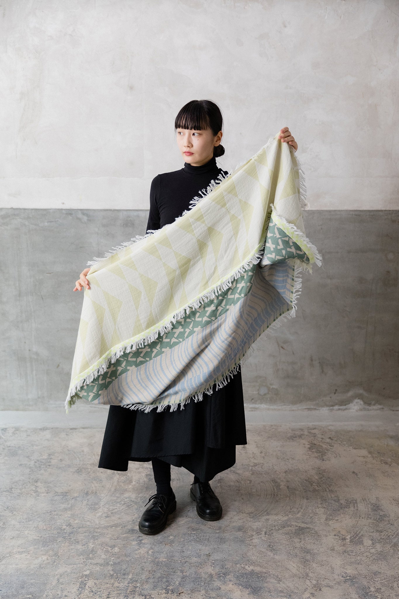 まるでブランケットのように、首元だけではなく体全体も暖かく包み込みます。
