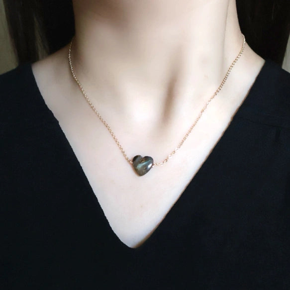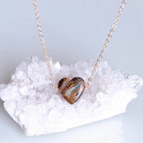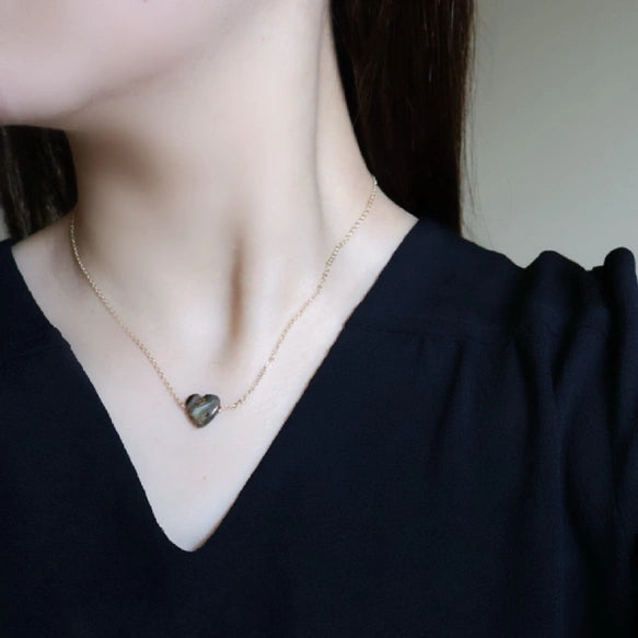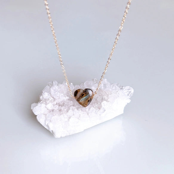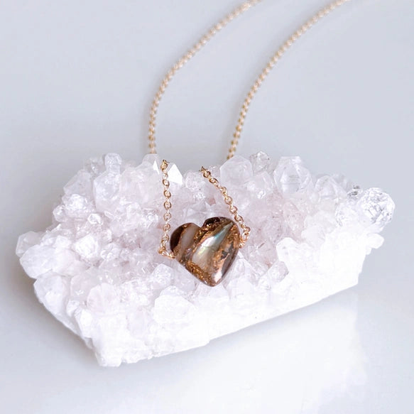 大人ハートネックレス(コッパーカルサイトオブシディアン× シェル)|SAKURA jewelry(サクラジュエリー)