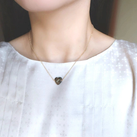 • 画像をギャラリービューアに読み込む, 大人ハートネックレス(コッパーカルサイトオブシディアン× シェル)|SAKURA jewelry(サクラジュエリー)