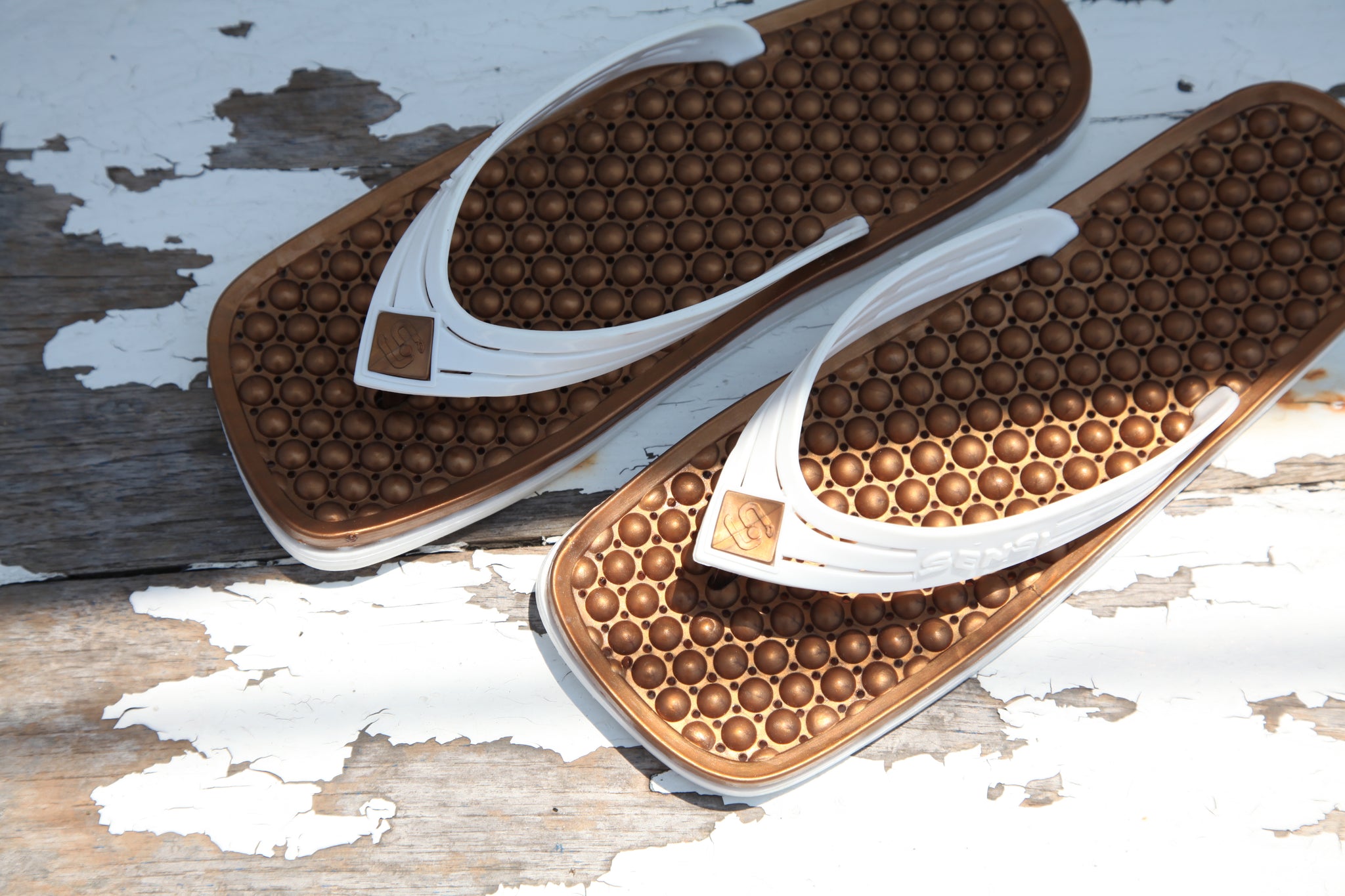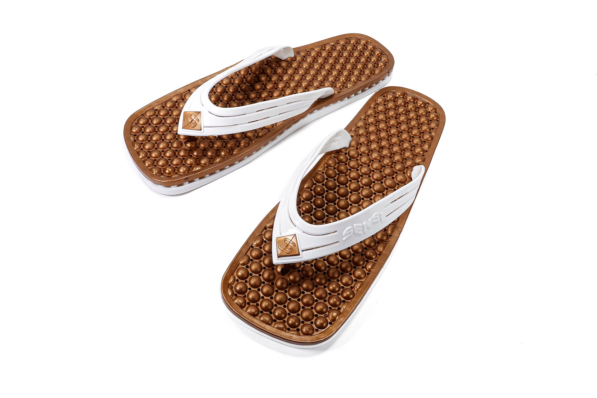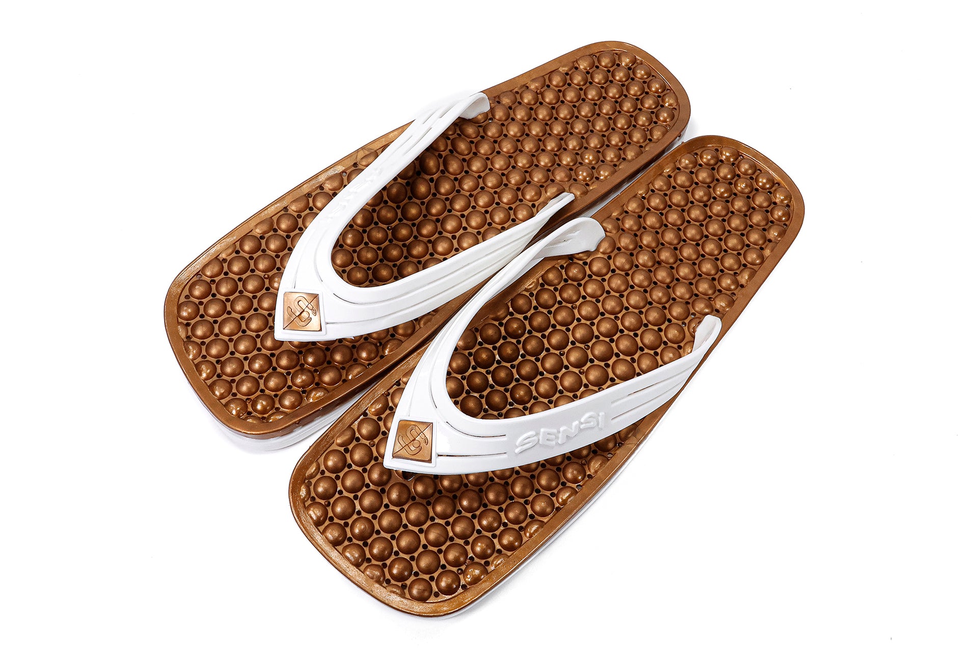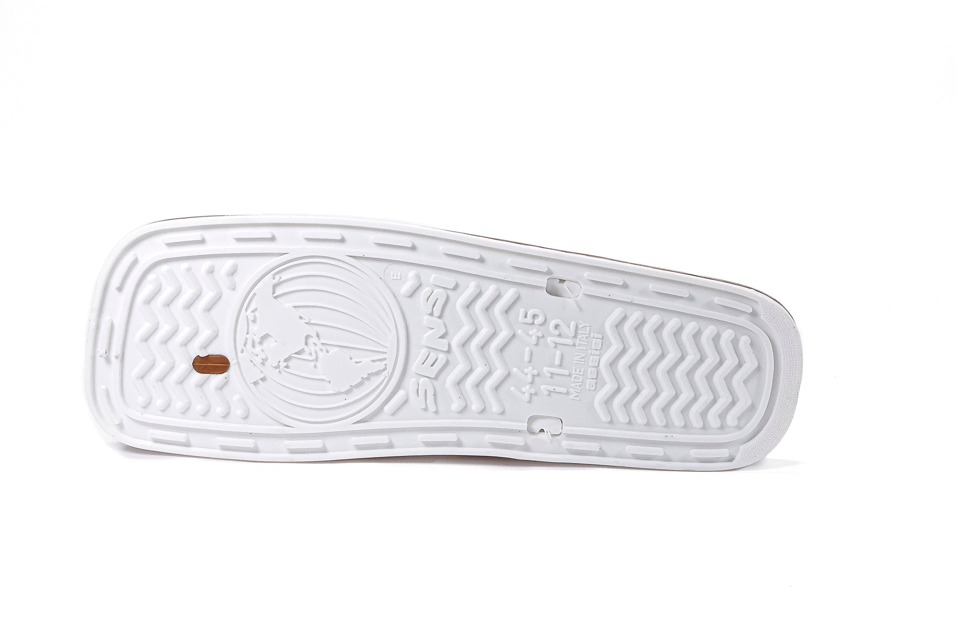 創業者でありイタリアSENSI&C srl社のオーナー Lorenzo Sensi(ロレンツォ・センシ)さん。半世紀以上前にこの商品をデザインしました。鋳型(いがた)の設計士でもあったLorenzoさん。技術者として機能だけではなく特徴的なスタイルを追求。ヒントを得たのは日本の雪駄(せった)でした。日本伝統の雪駄をイタリアン・アートにした他には無い一足です。