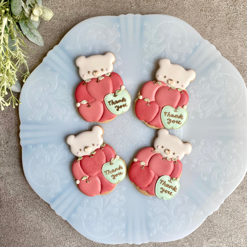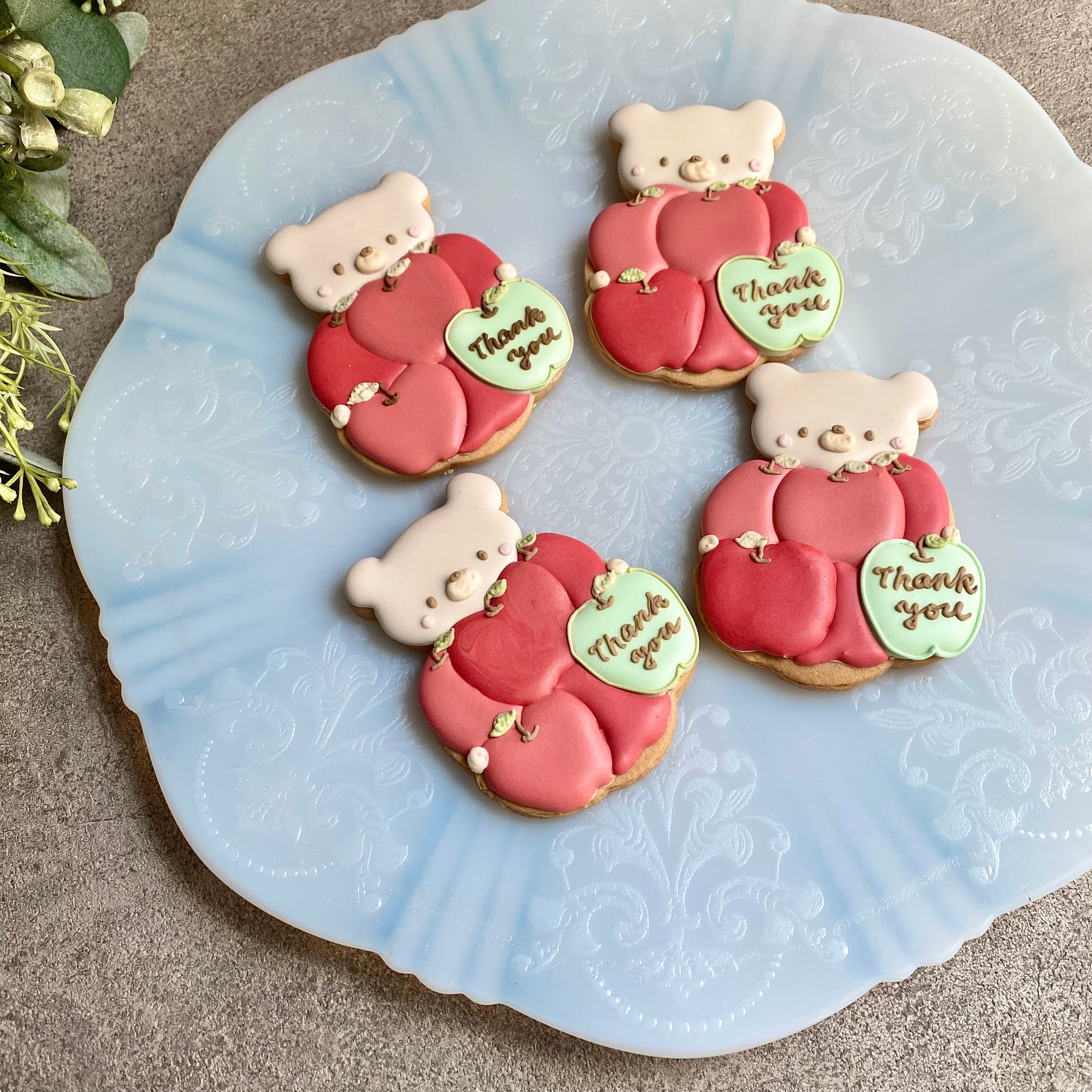 りんごを抱えたくまちゃんアイシングクッキー|sumirecookies(スミレクッキーズ)