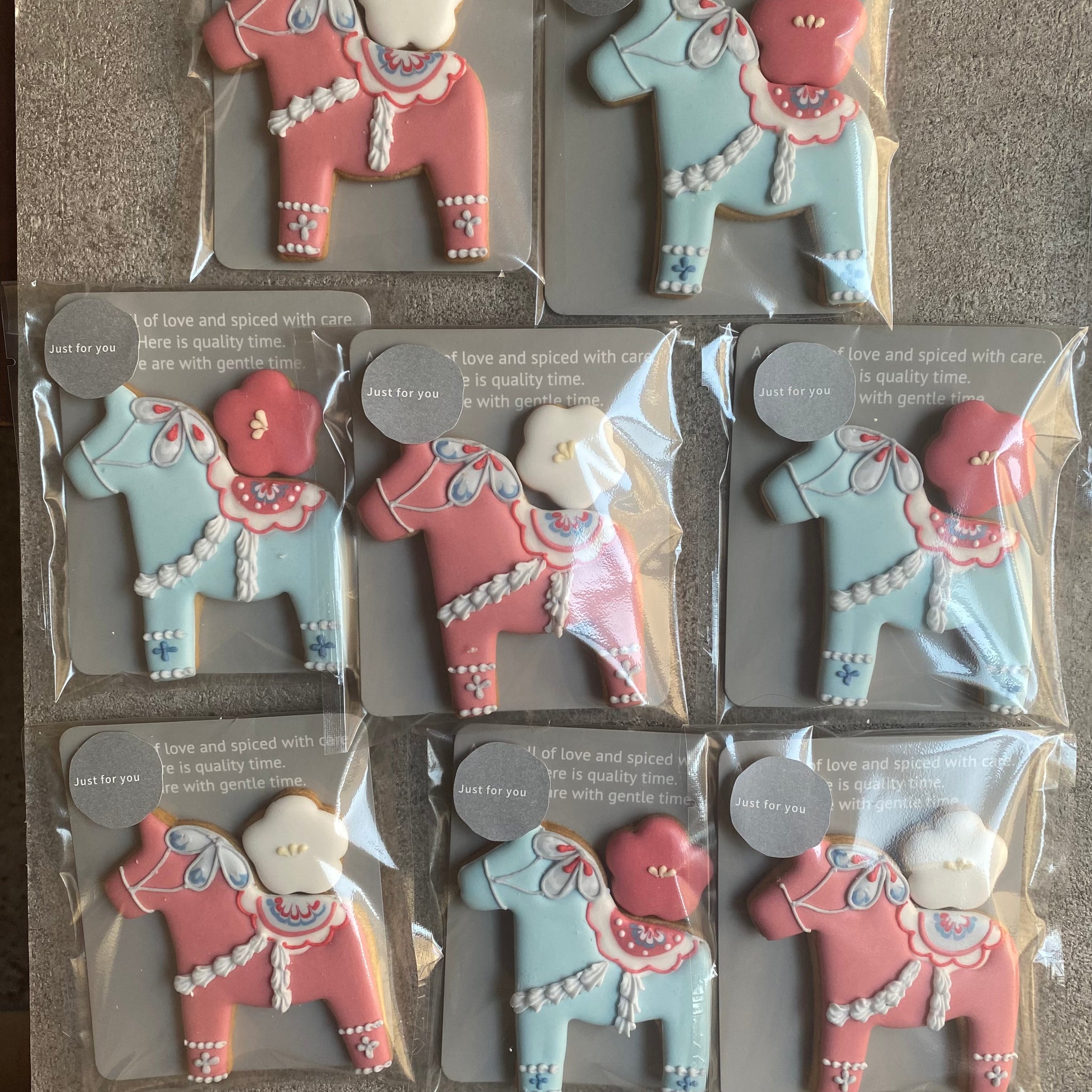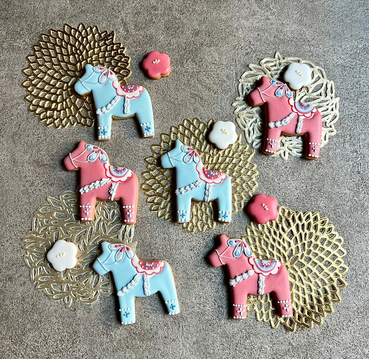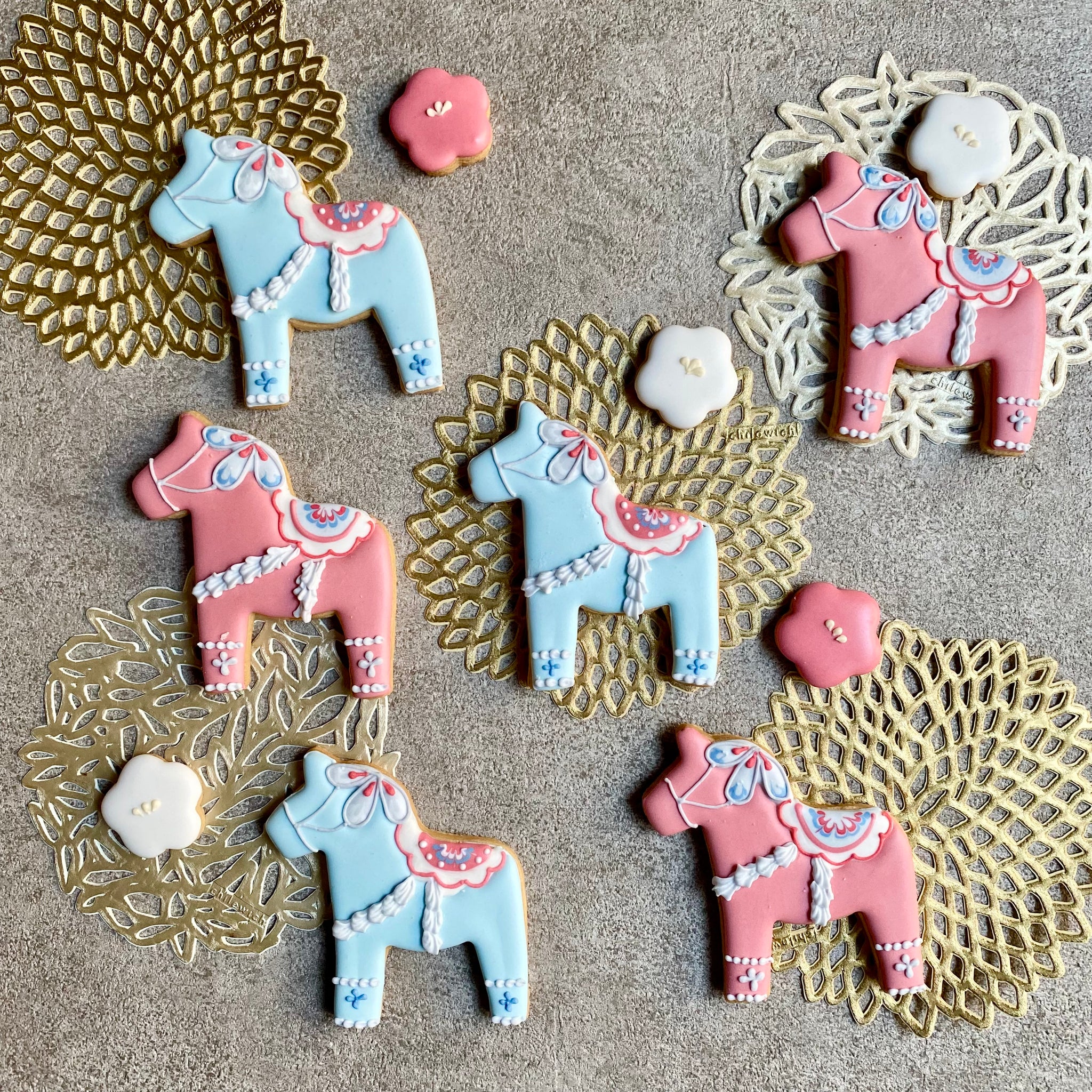 北欧の幸せを運ぶ馬「ダーナラホース」をモチーフにした、アイシングクッキーのセットです。
