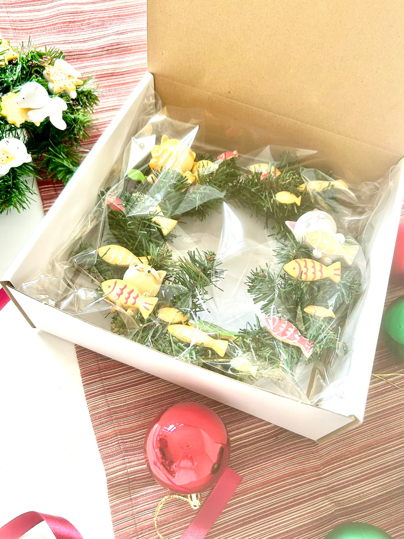 • 画像をギャラリービューアに読み込む, 猫さんとお魚クッキークリスマスリース|手ノヒラ堂(テノヒラドウ)