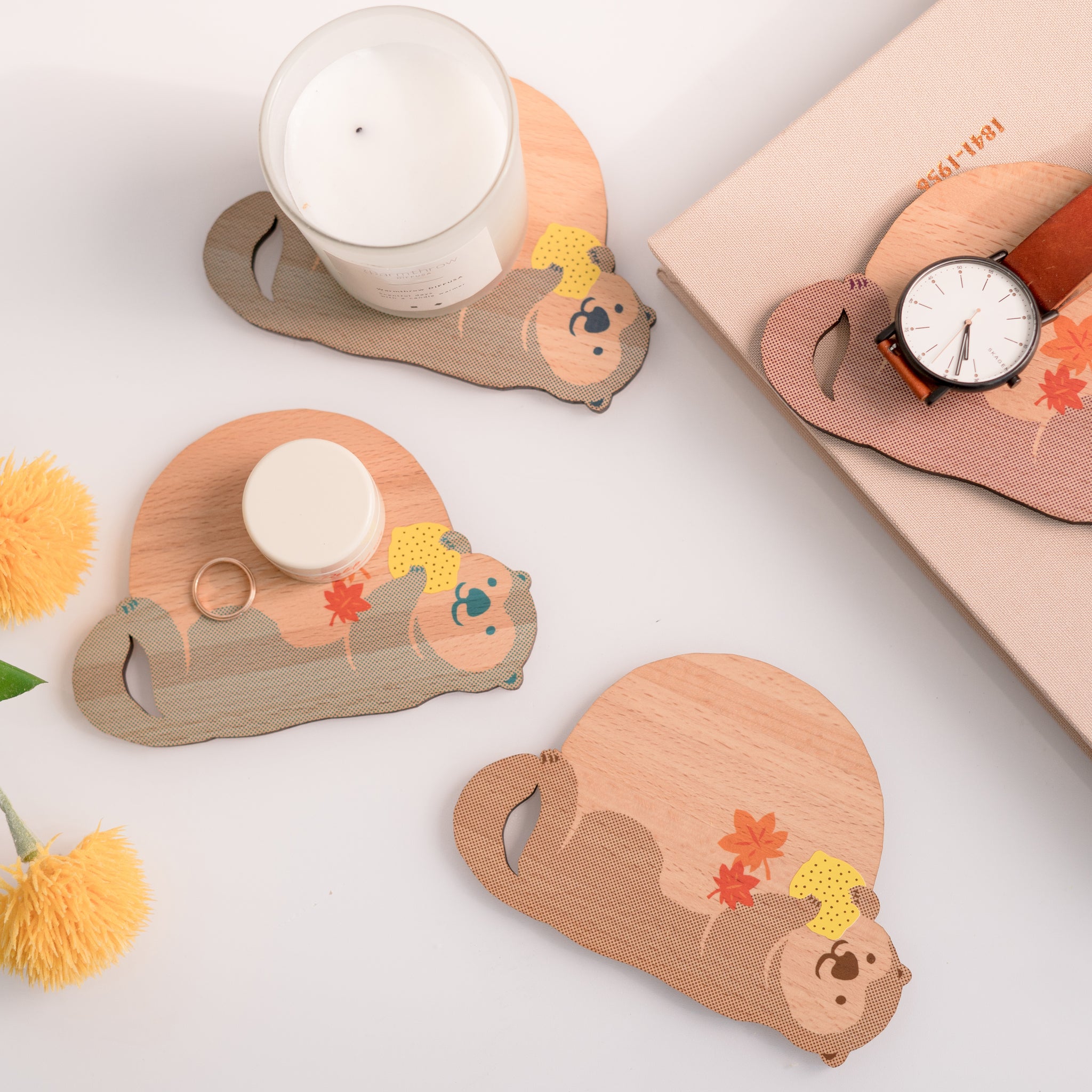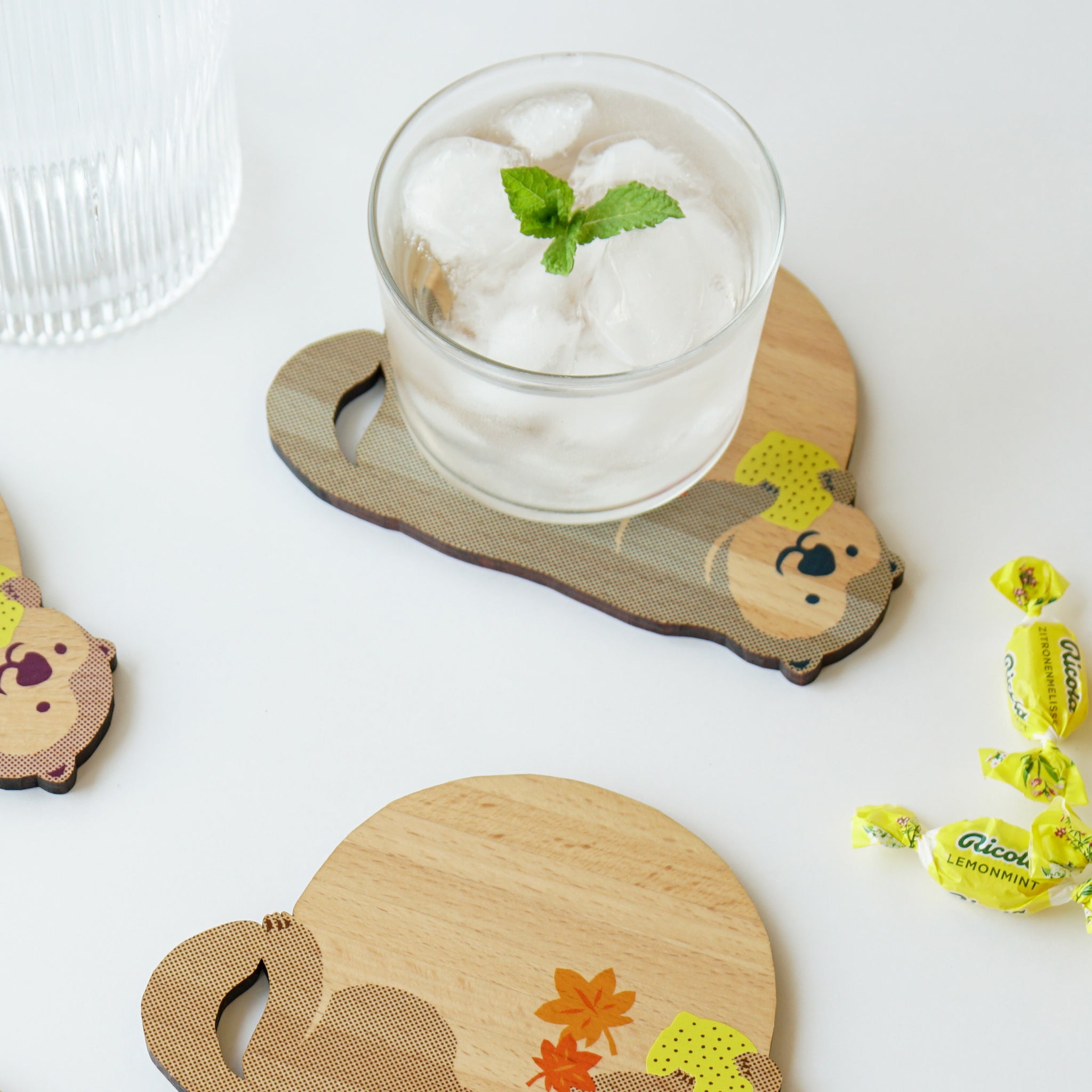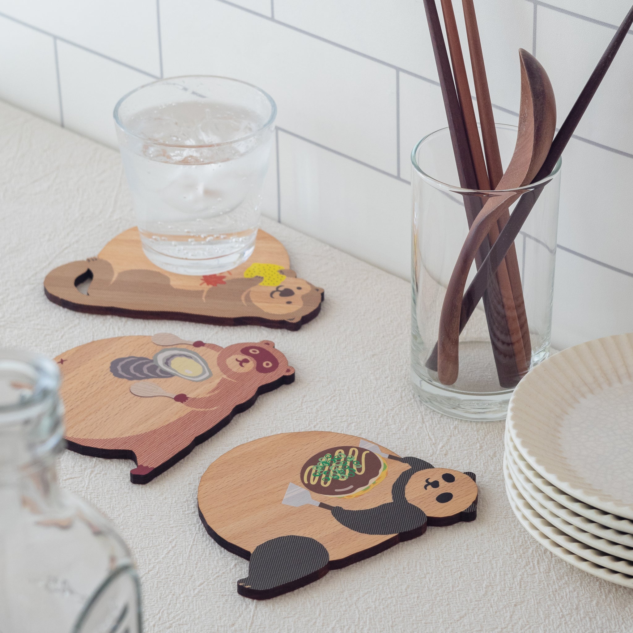 Ten&O Art+Craft ウッドプレートは再利用された端材から作られたコレクションです。可愛らしい動物を描いたデザインのプレートは、コースターやディスプレイプレート、小物置きなど、使い方は自由。天然木の端材を使用しているため、木目も一つひとつ異なります。