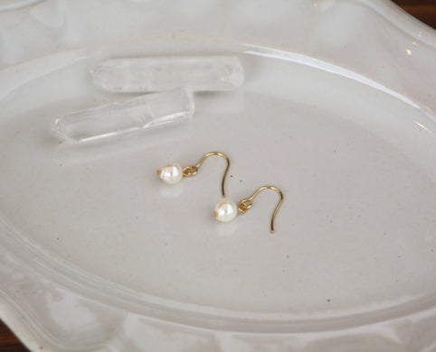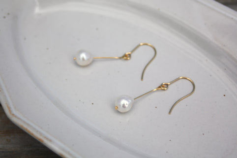 「月の雫珠」国産あこや真珠バロックパール*サージカルステンレス・イヤリング(ロング)ゴールド|ツバメ舎(ツバメシャ)