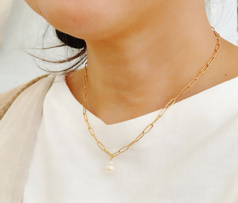 「月の雫珠」国産あこや真珠バロックパール*サージカルステンレス・ベビーパールネックレス「あずきチェーン」|ツバメ舎(ツバメシャ)